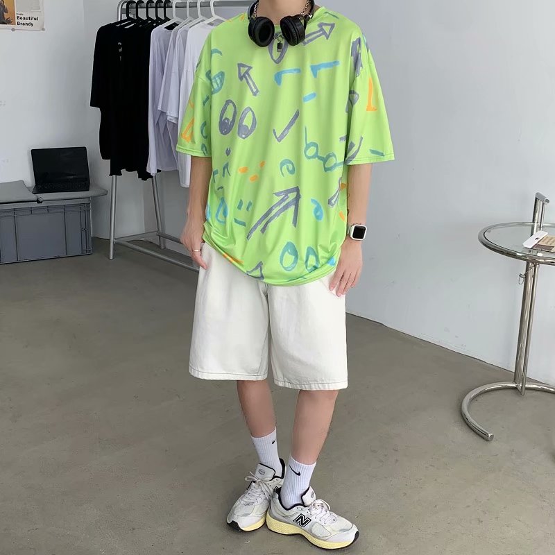 短裤男夏季潮流宽松休闲直筒运动裤韩版港风扎染迷彩男装五分裤子