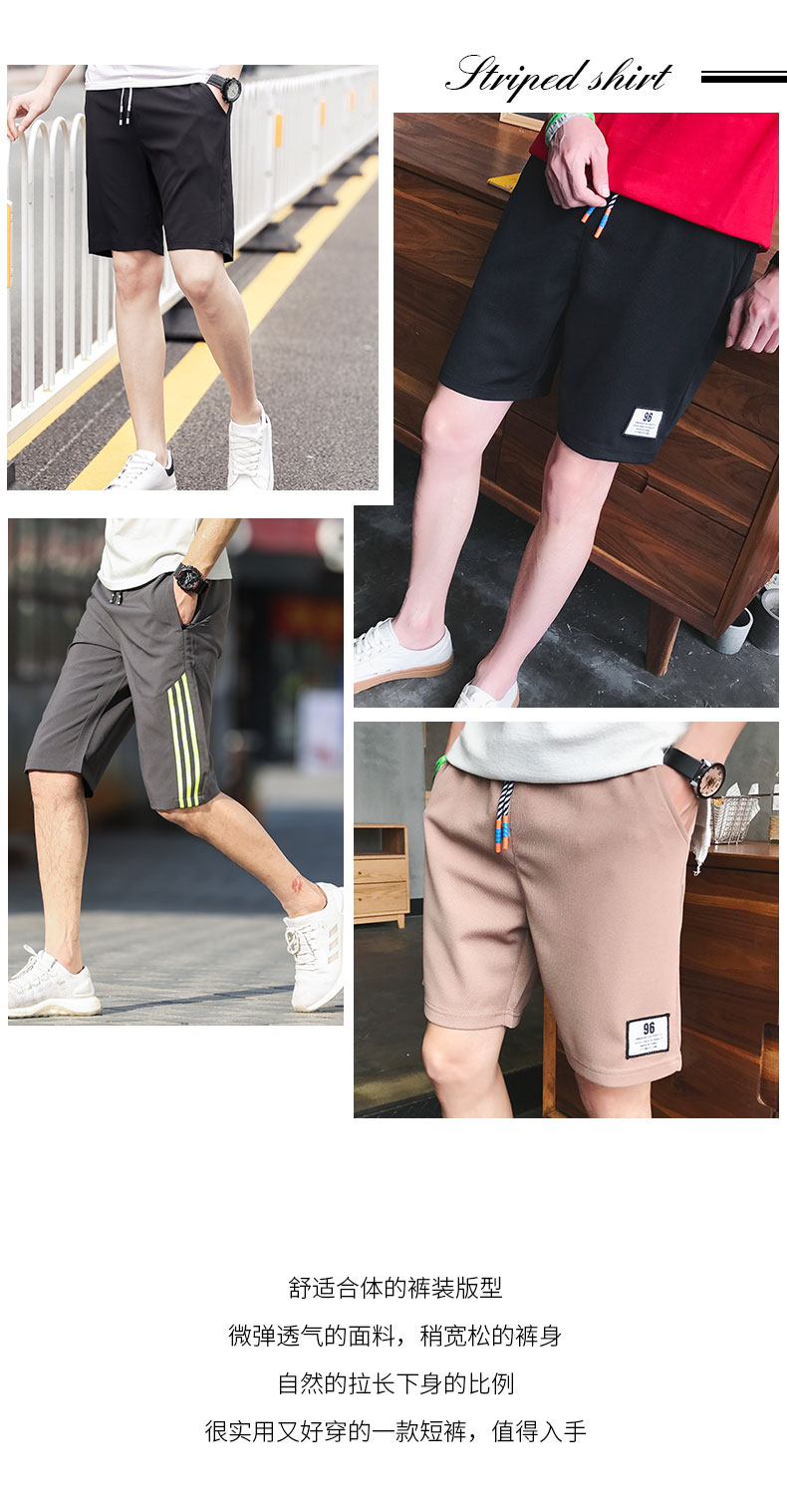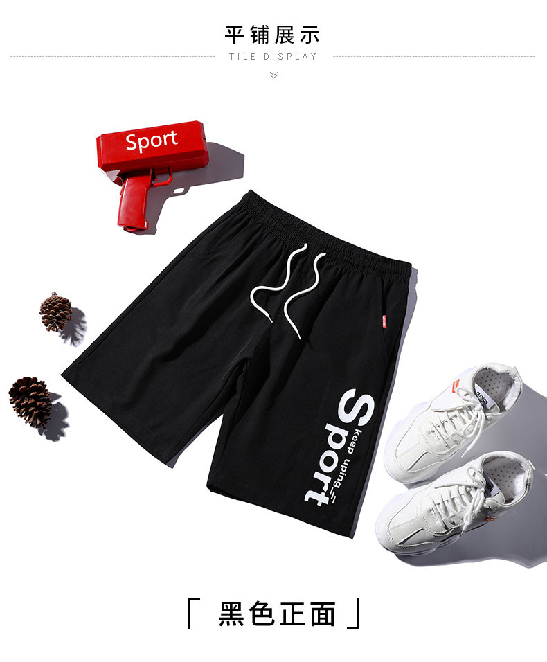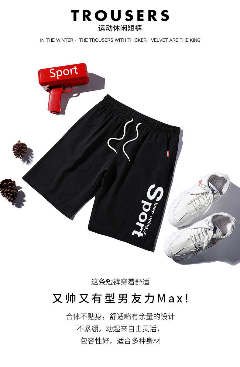 2021男式柔软布料中腰休闲现货青少年黑色字母弹力裤休闲裤五分裤