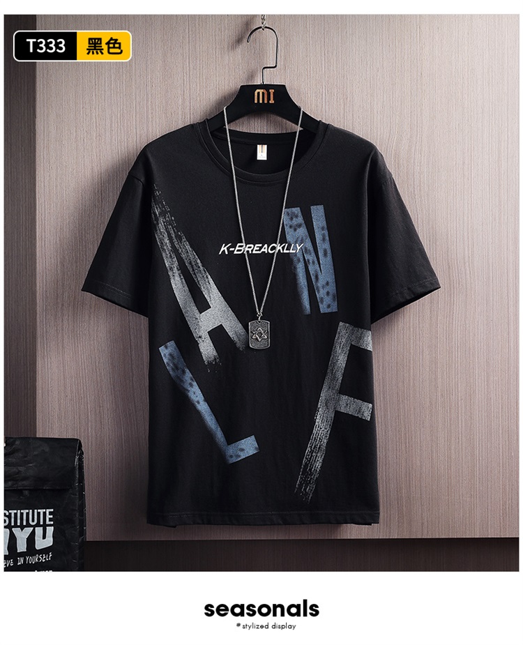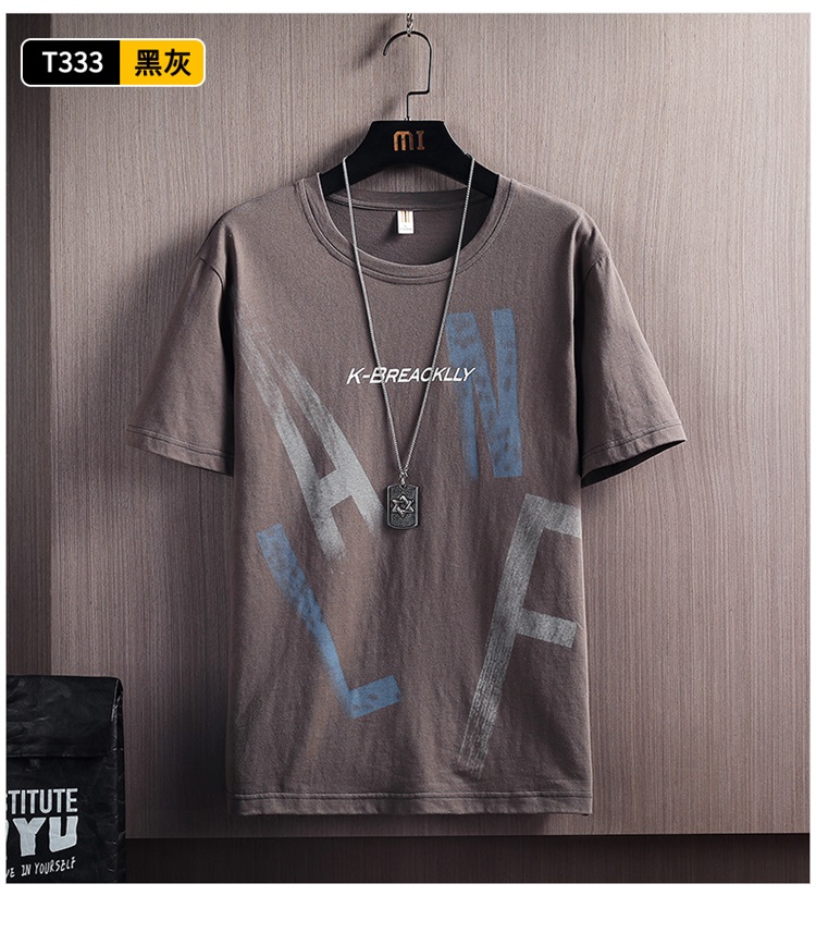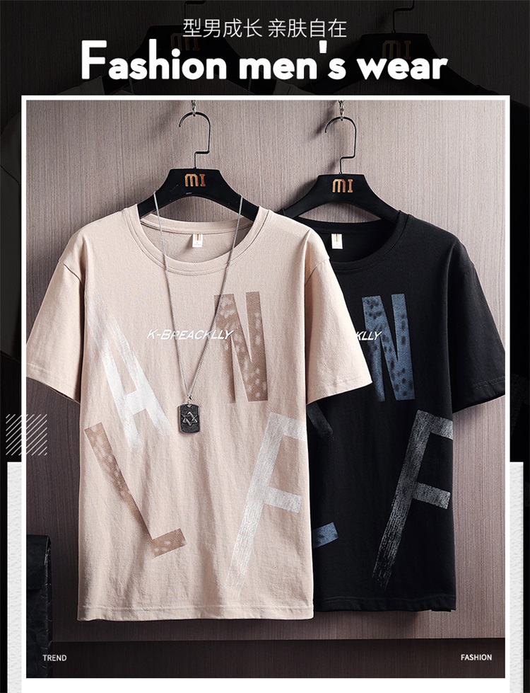 夏季2021新款短袖t恤男士潮牌韩版潮流宽松圆领棉布料好搭衣服