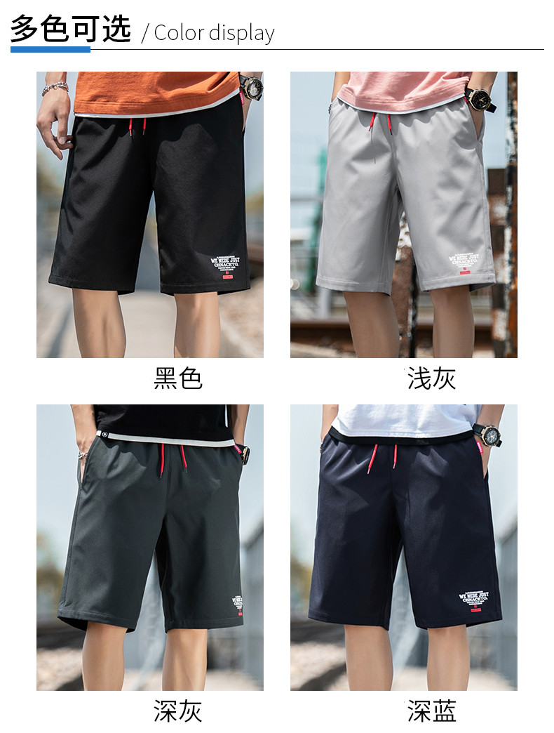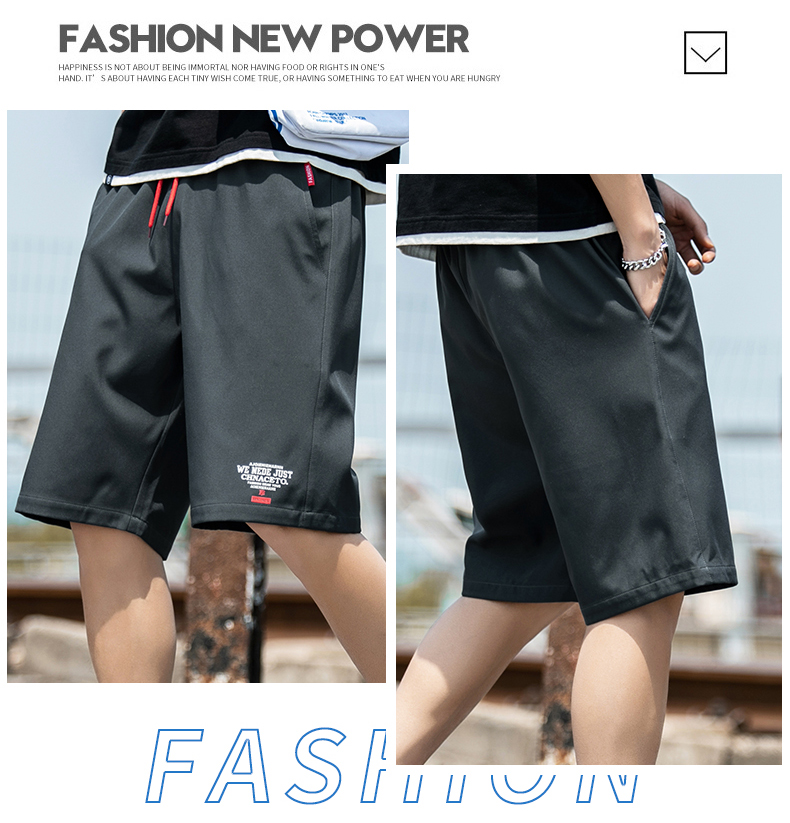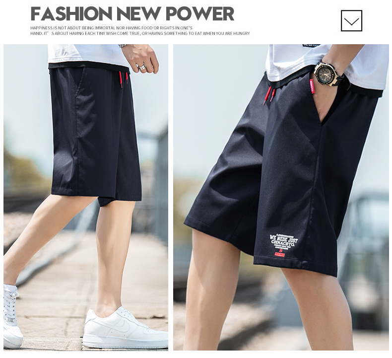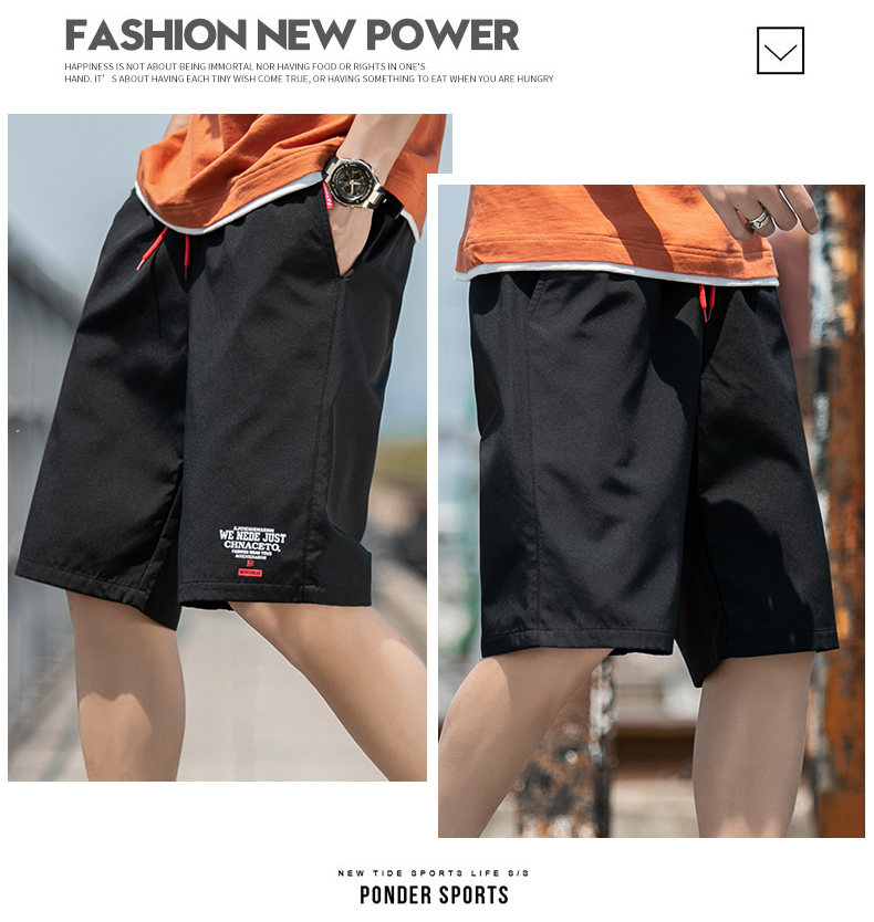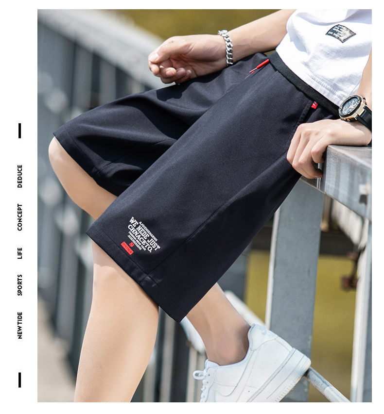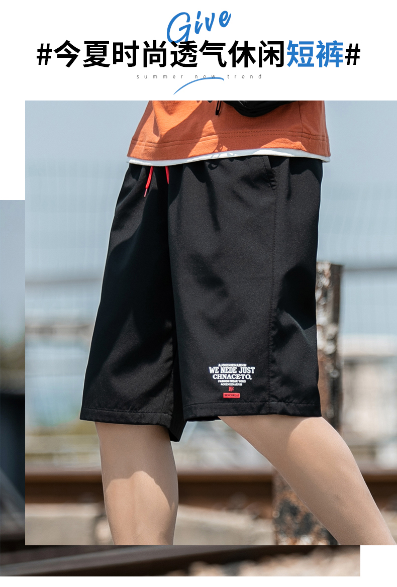 2021男式柔软布料中腰休闲现货青少年黑色字母弹力裤休闲裤五分裤