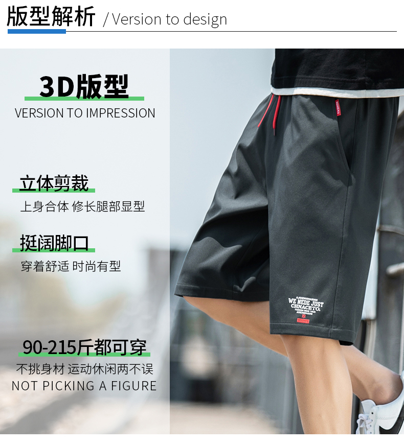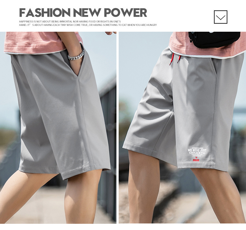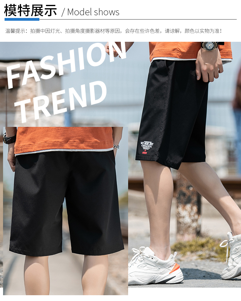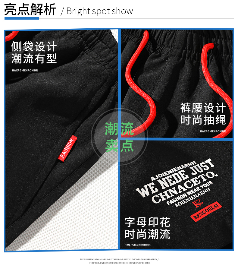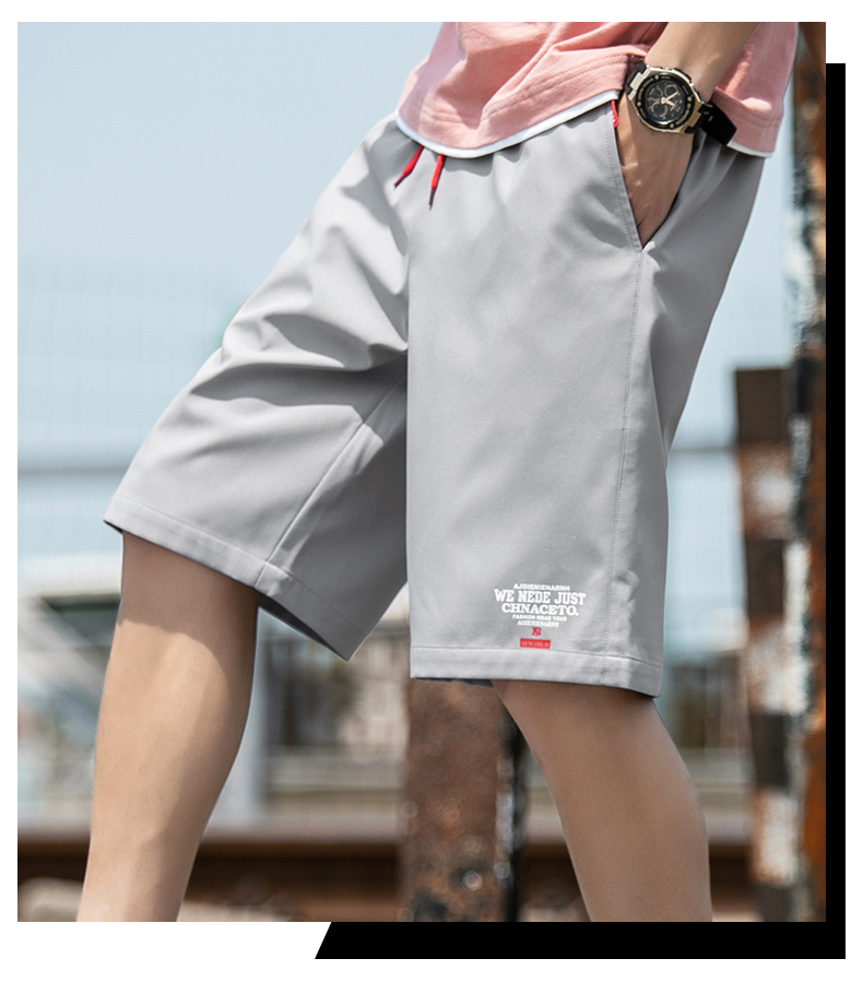 2021男式柔软布料中腰休闲现货青少年黑色字母弹力裤休闲裤五分裤