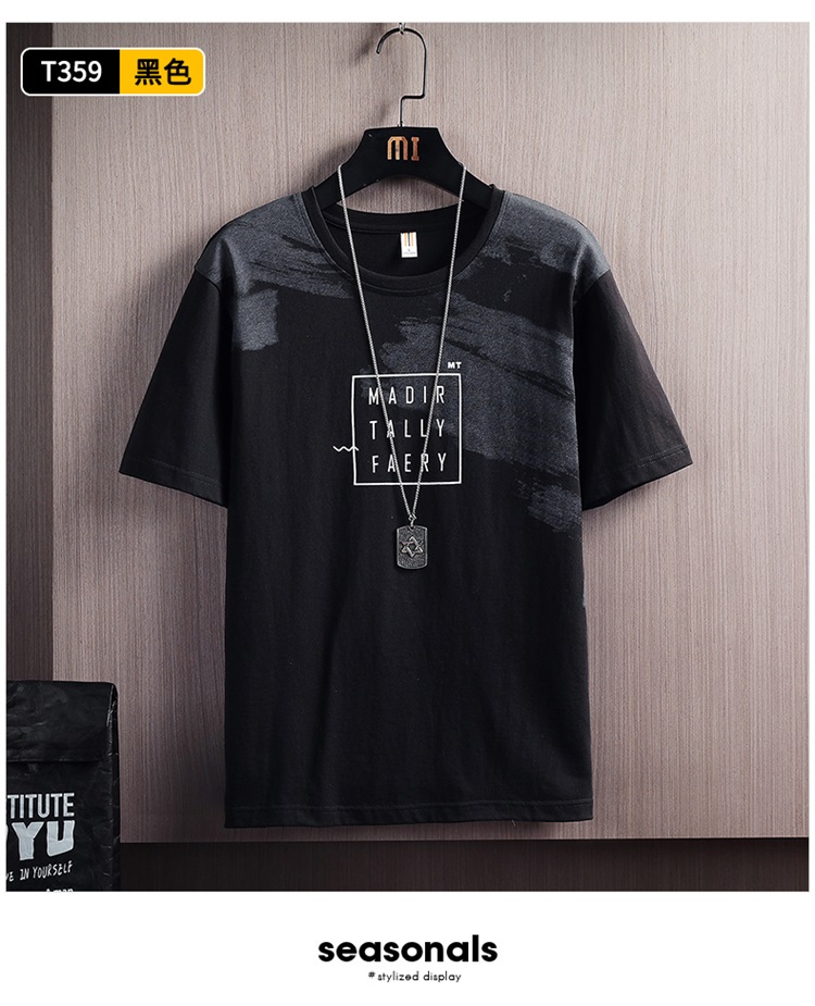夏季2021新款短袖t恤男士潮牌韩版潮流宽松圆领棉布料好搭衣服