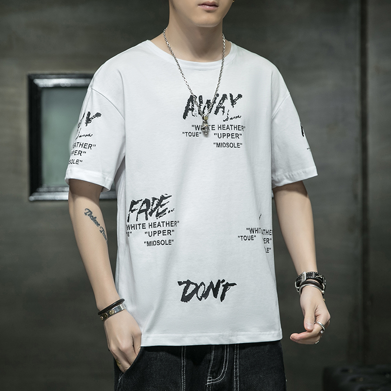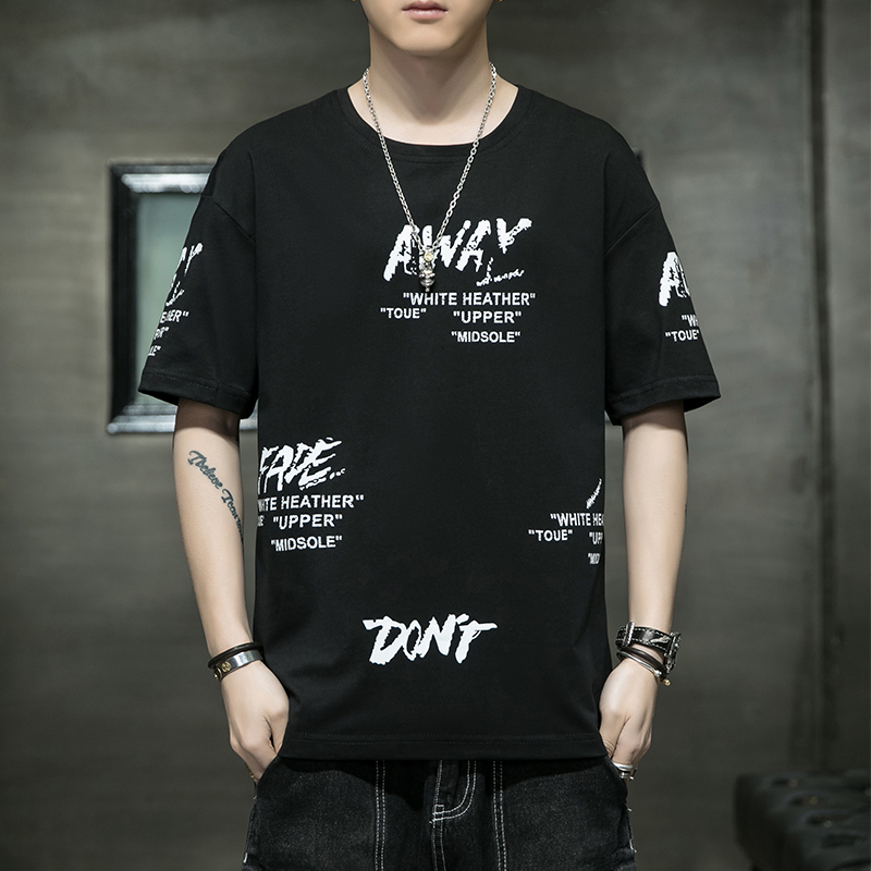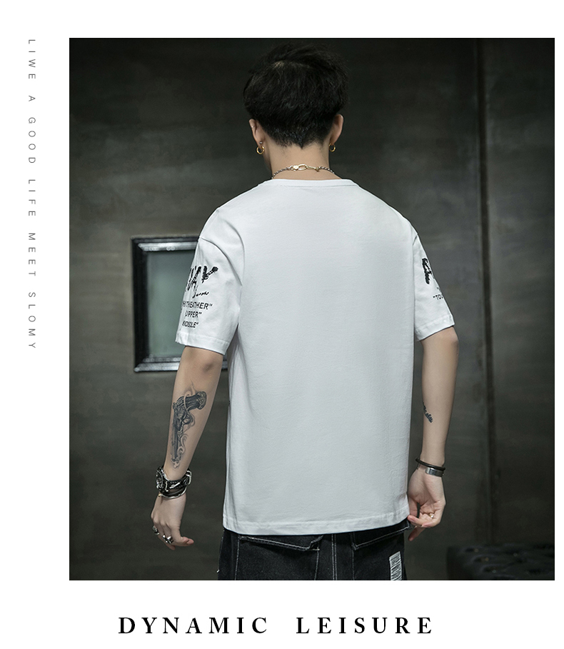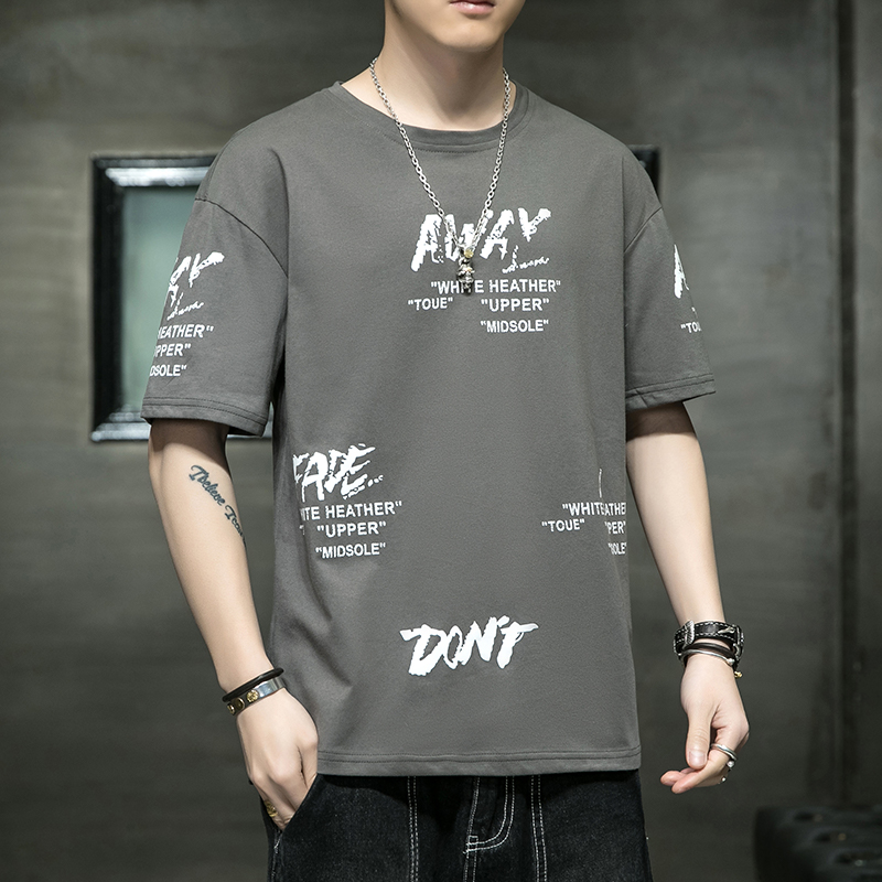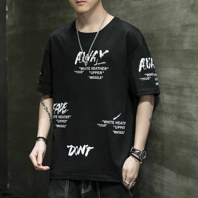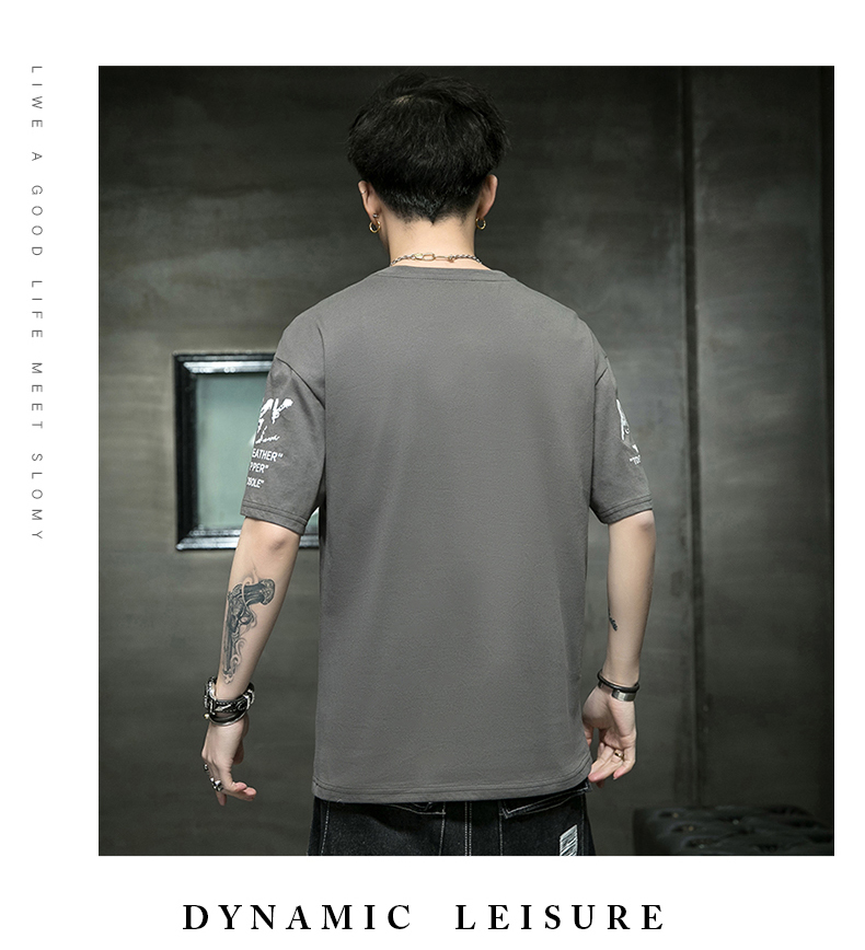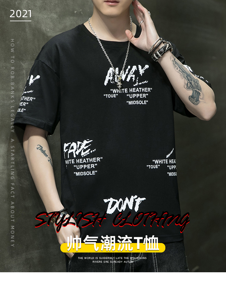 夏季2021新款短袖t恤男士潮牌韩版潮流宽松圆领棉布料好搭衣服