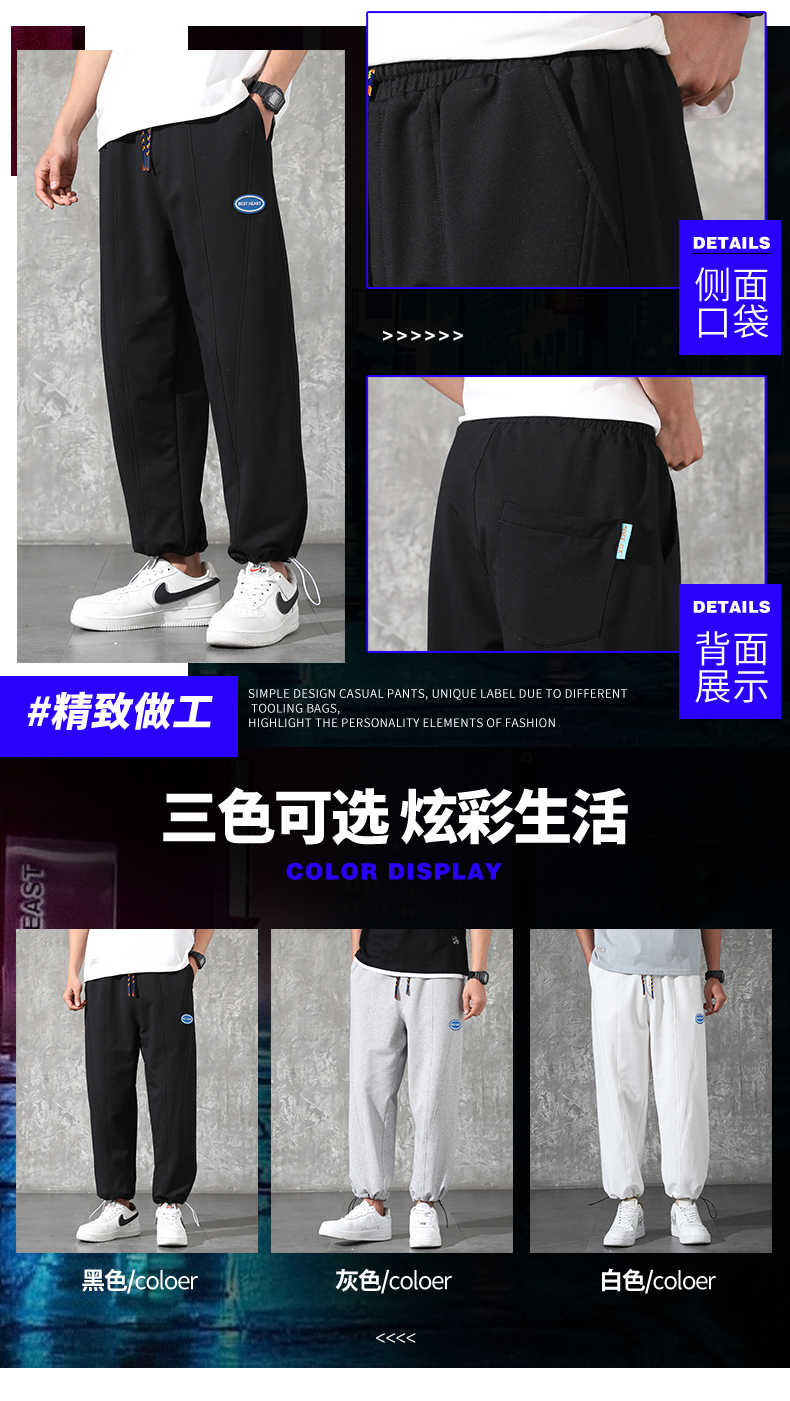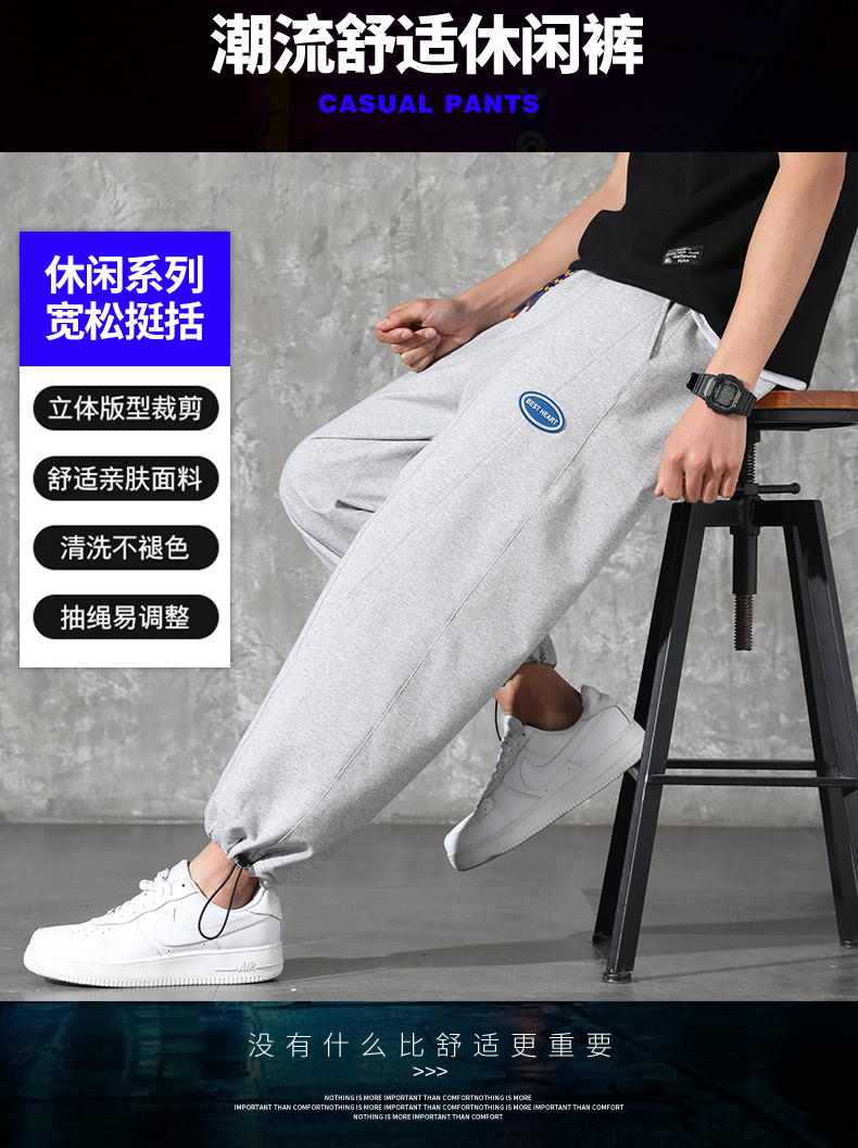 新款男士宽松休闲运动裤60s兰精莫代尔面料双侧口袋弹力收脚裤