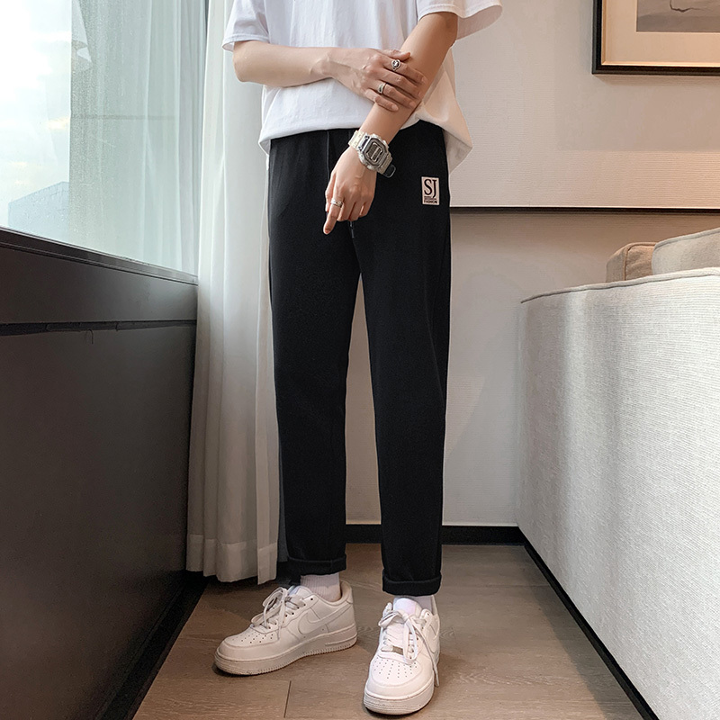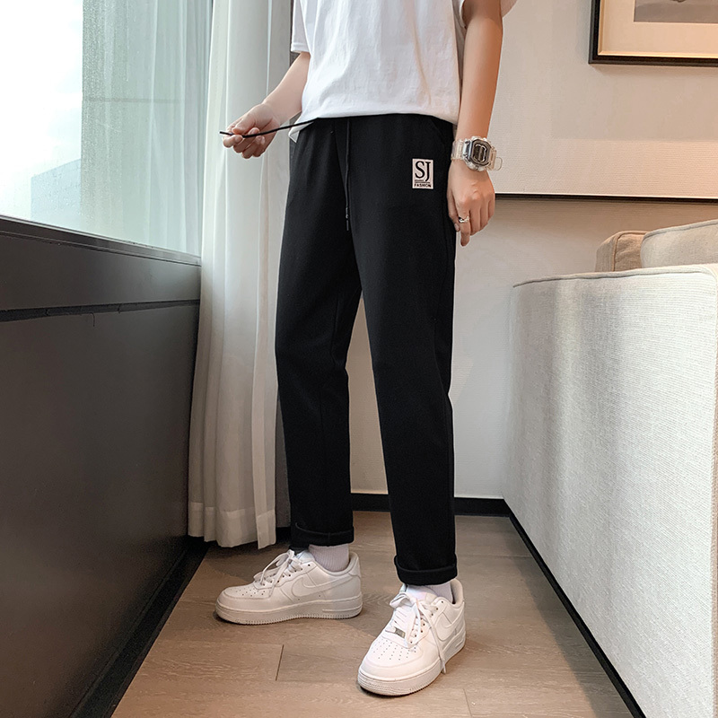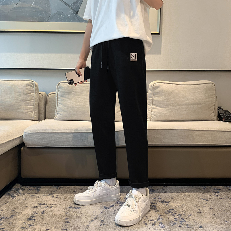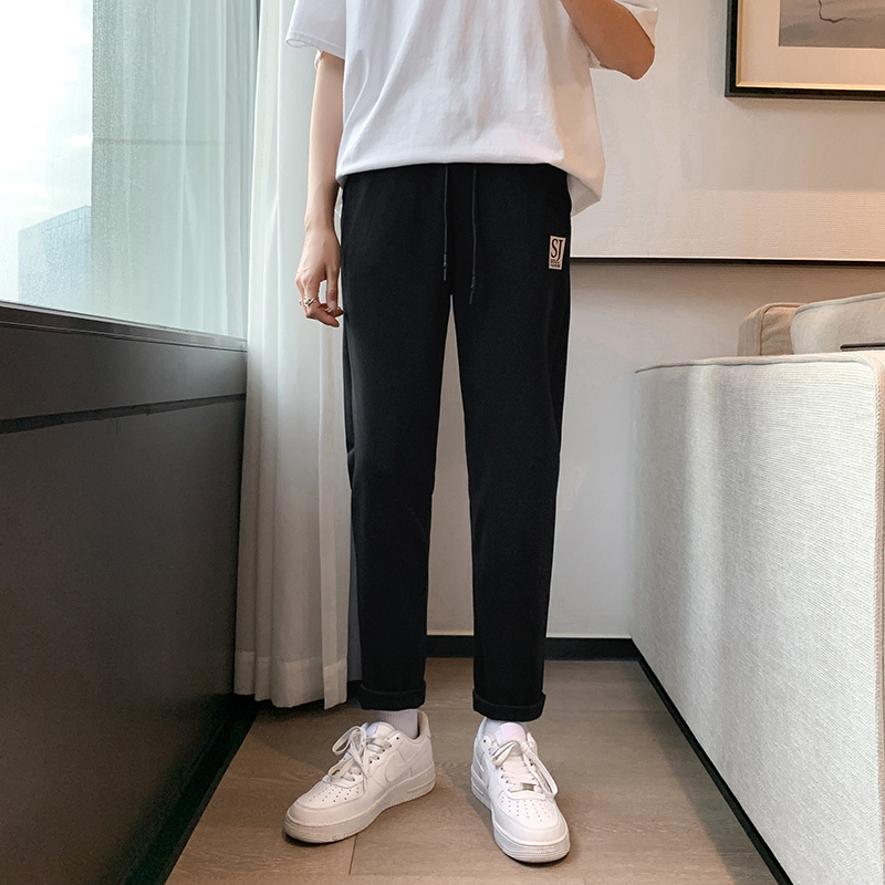 2021男式柔软布料中腰休闲现货青少年黑色字母弹力裤休闲裤五分裤