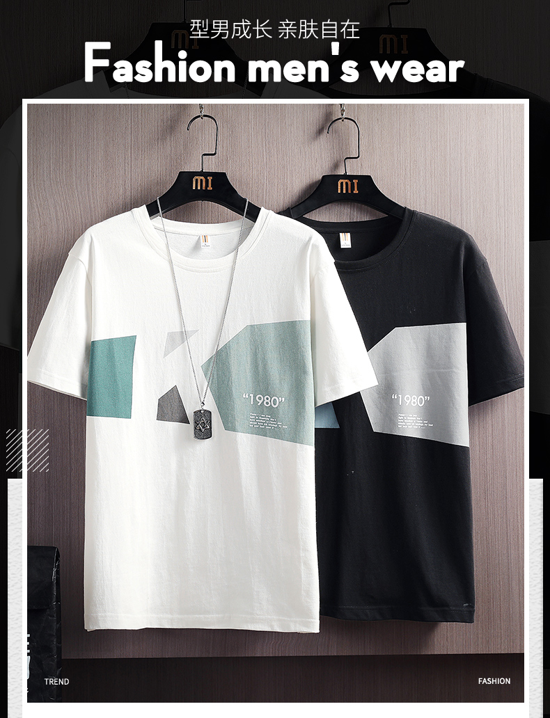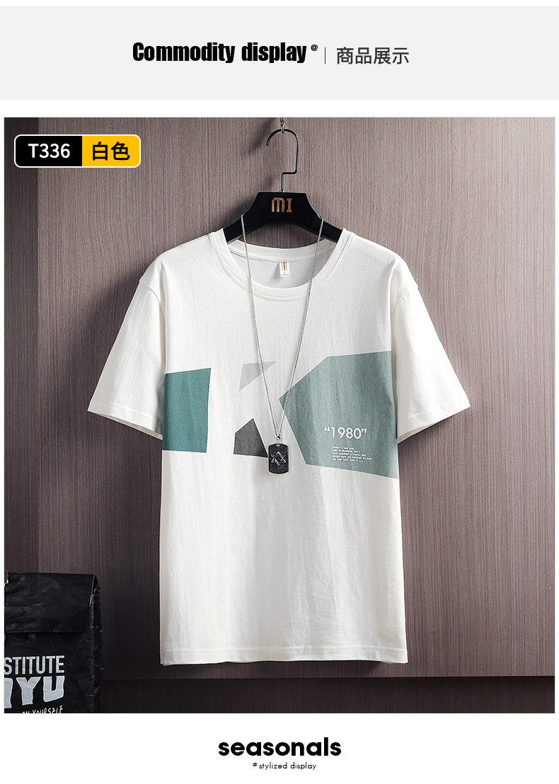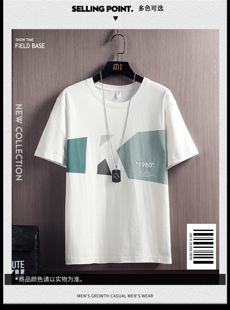 夏季2021新款短袖t恤男士潮牌韩版潮流宽松圆领棉布料好搭衣服