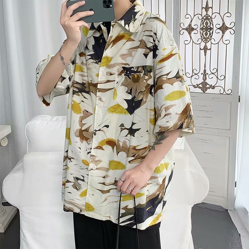 短裤男夏季潮流宽松休闲直筒运动裤韩版港风扎染迷彩男装五分裤子
