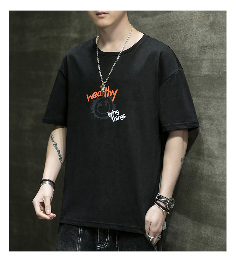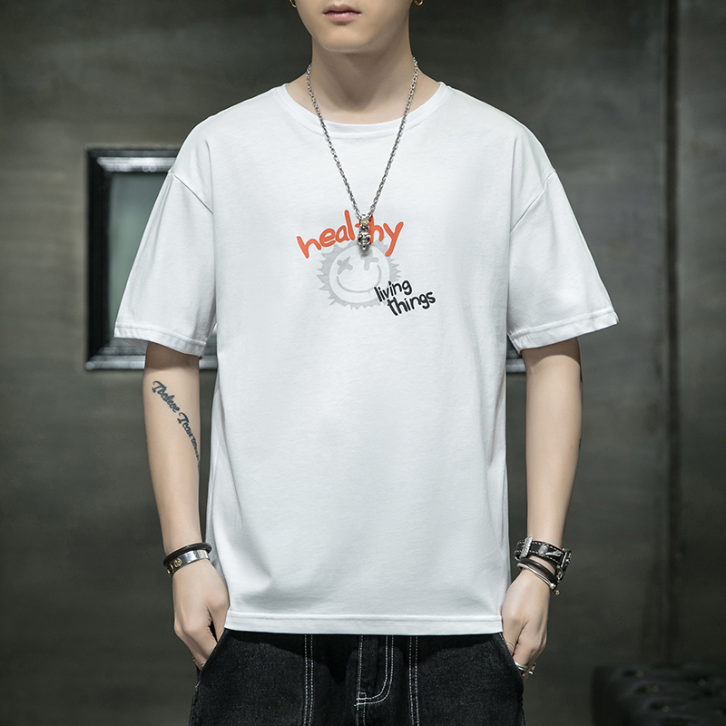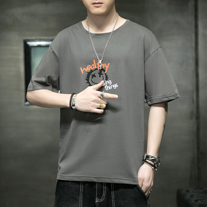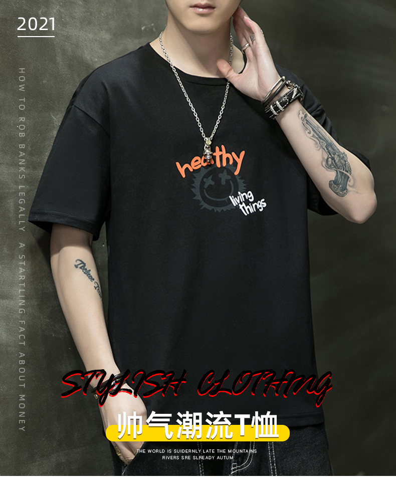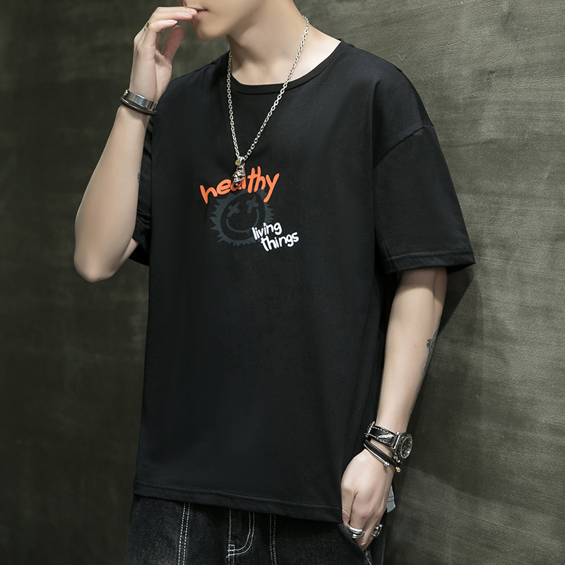 夏季2021新款短袖t恤男士潮牌韩版潮流宽松圆领棉布料好搭衣服