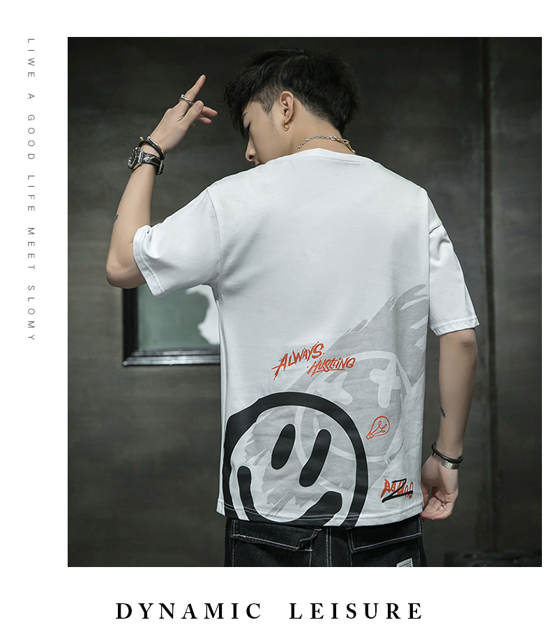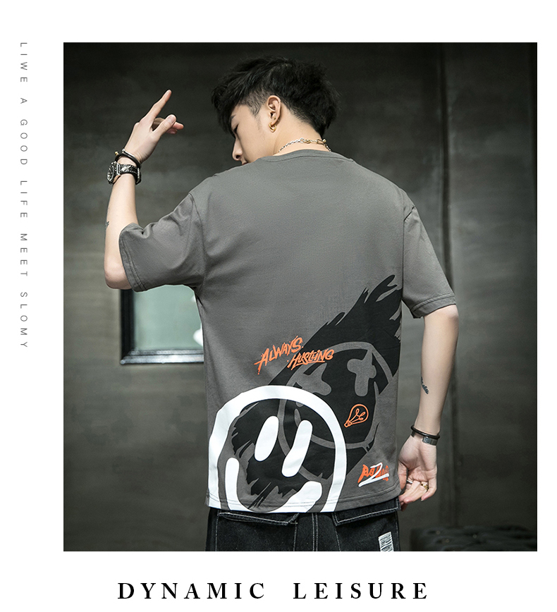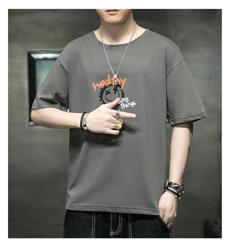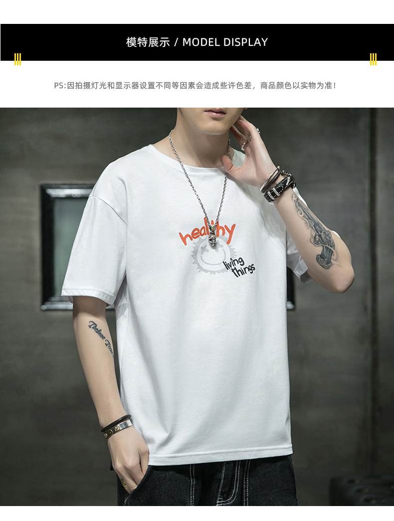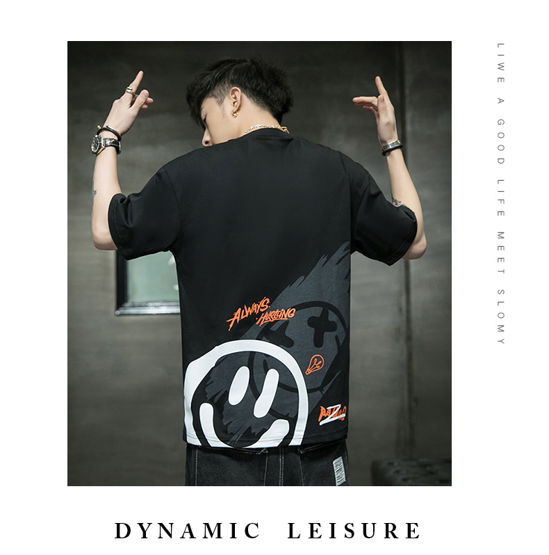 夏季2021新款短袖t恤男士潮牌韩版潮流宽松圆领棉布料好搭衣服