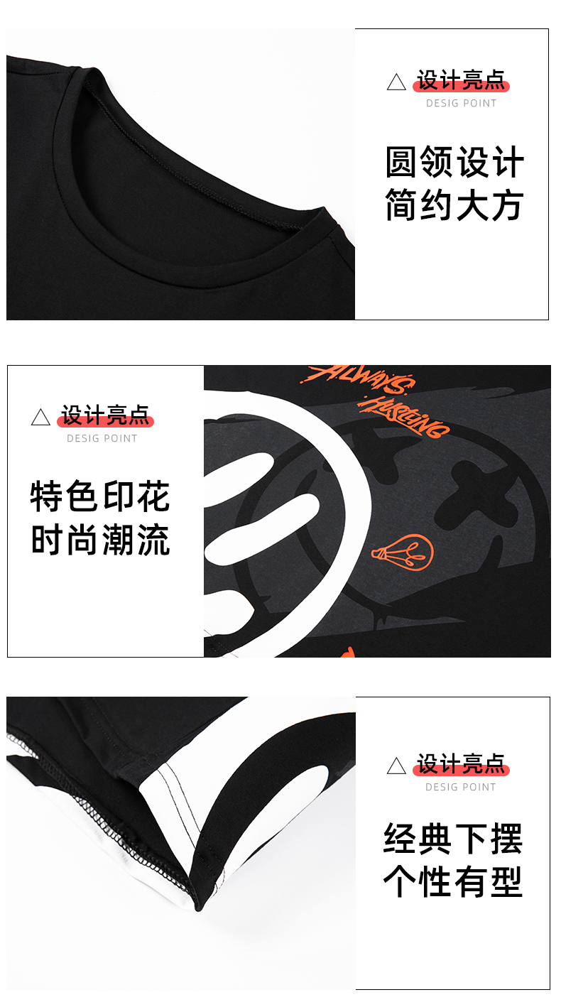2021夏季新款新型蚂蚁皱布料短袖短裤潮流印花运动时尚休闲套装男