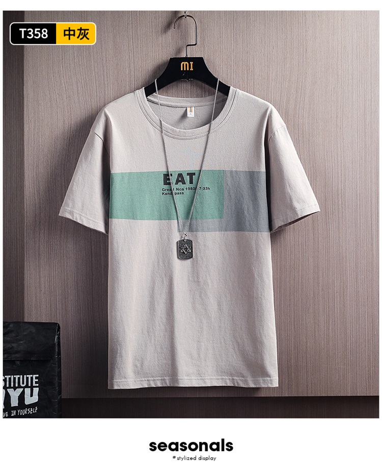 夏季2021新款短袖t恤男士潮牌韩版潮流宽松圆领棉布料好搭衣服