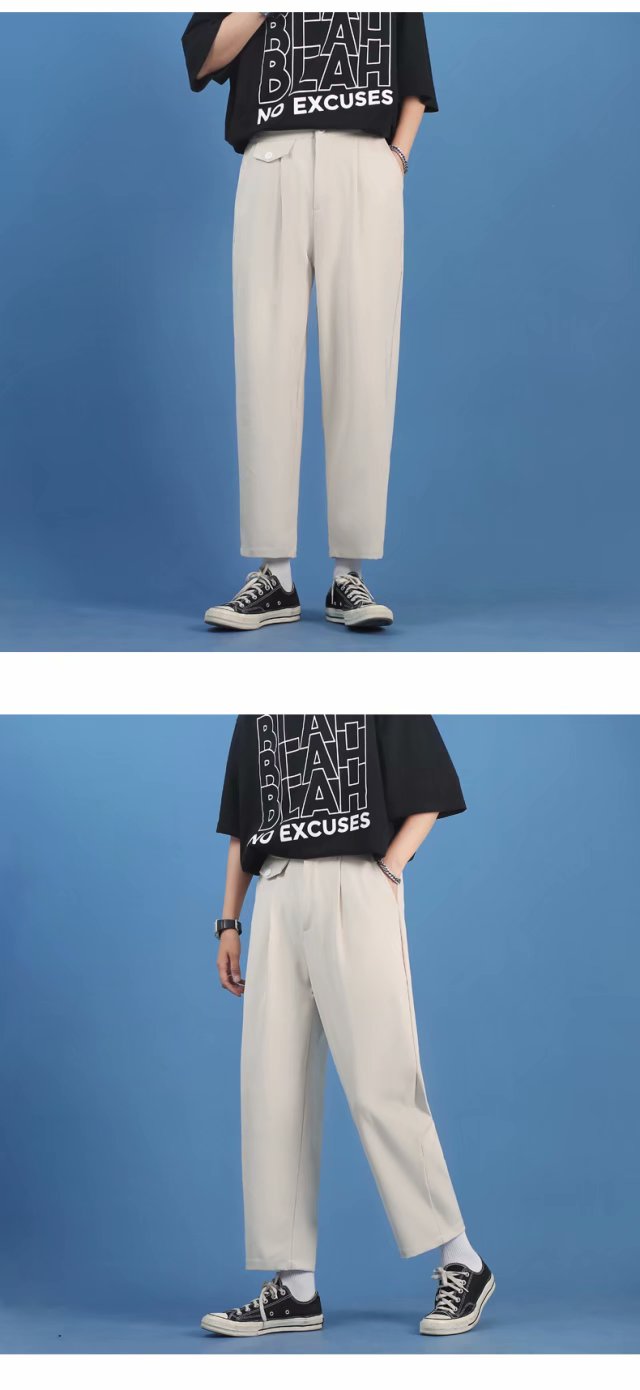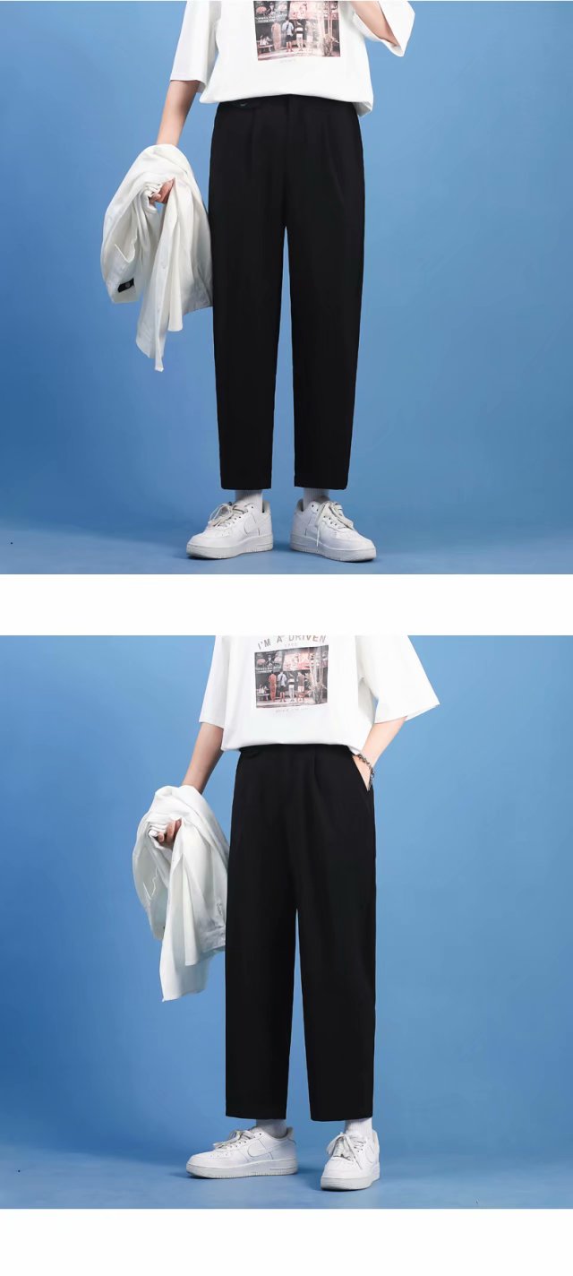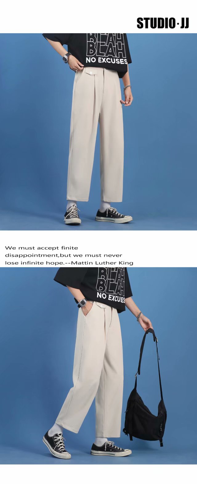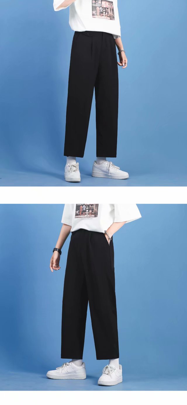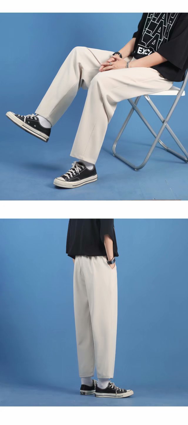 纳米布料男士商务休闲裤2020春夏季新款纯色中腰直筒修身长裤子男