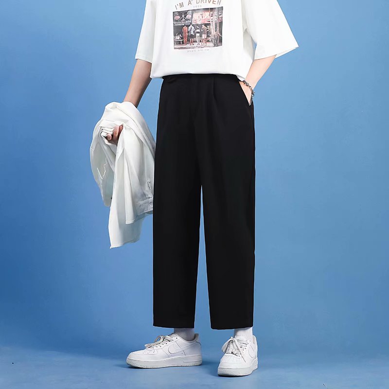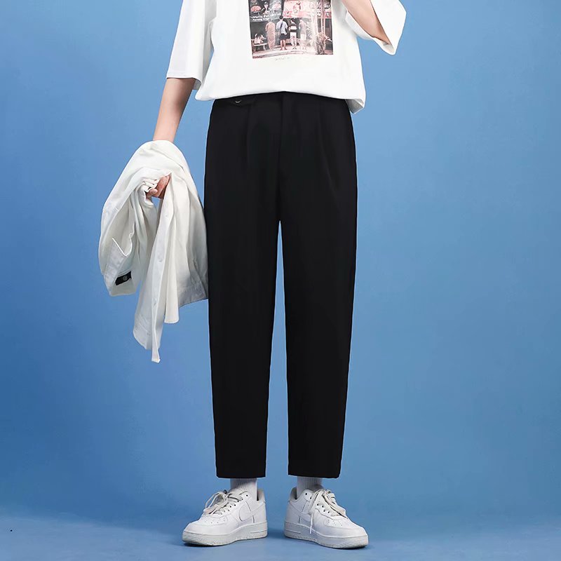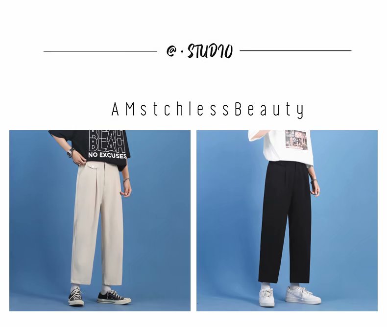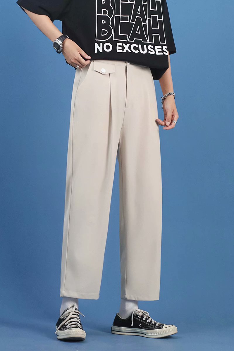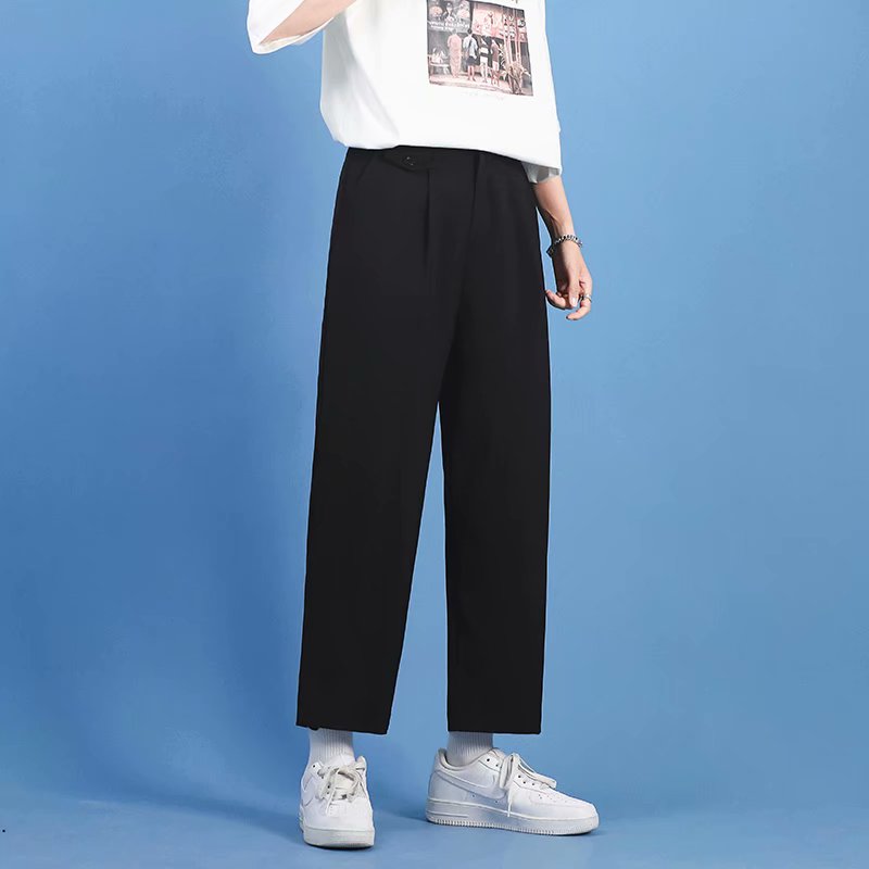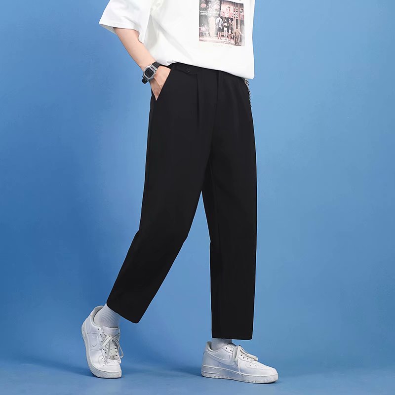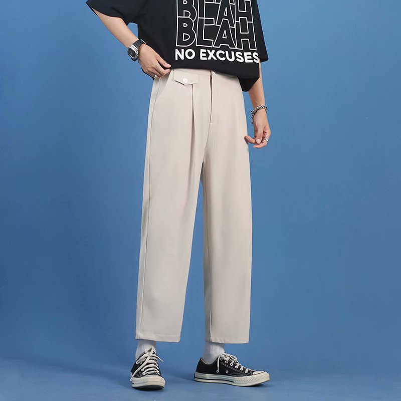 纳米布料男士商务休闲裤2020春夏季新款纯色中腰直筒修身长裤子男