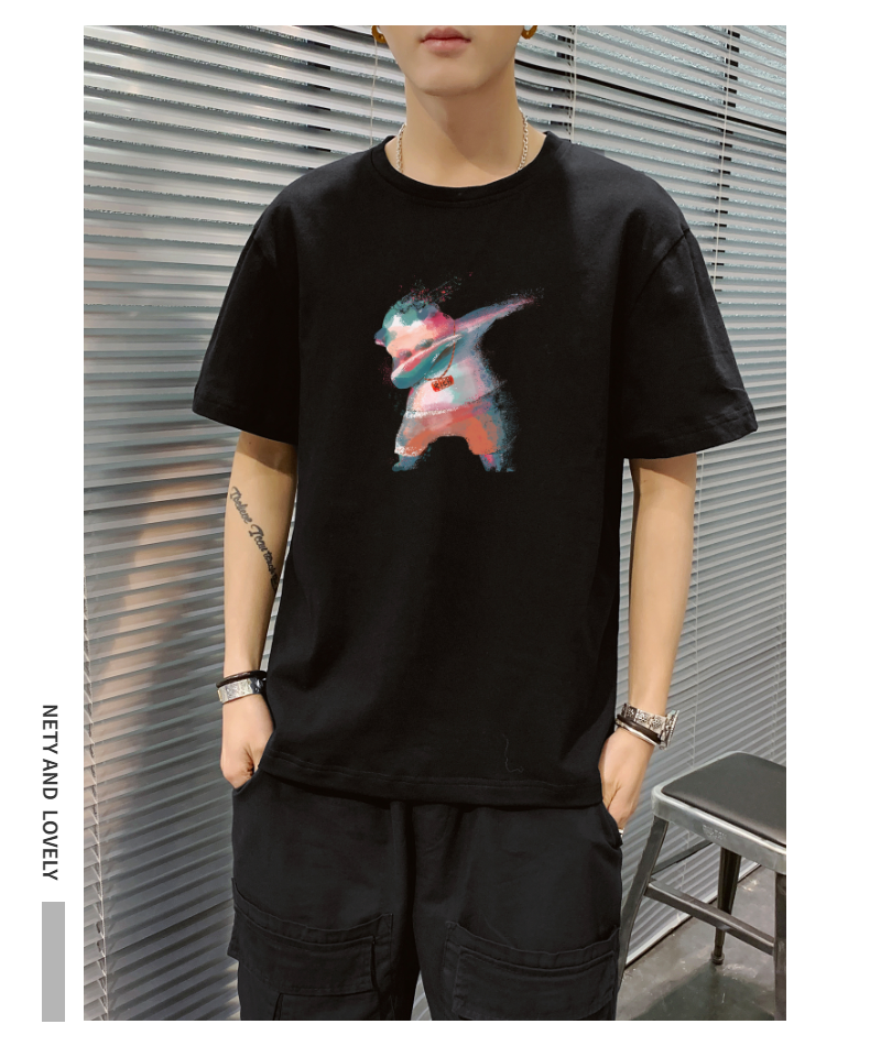 夏季2021新款短袖t恤男士潮牌韩版潮流宽松圆领棉布料好搭衣服