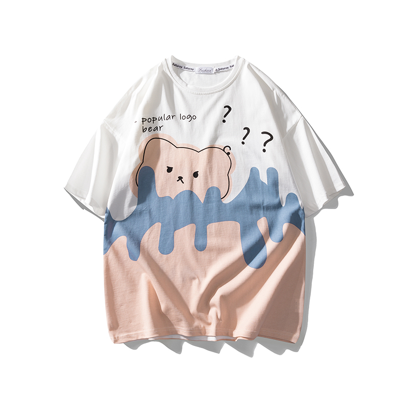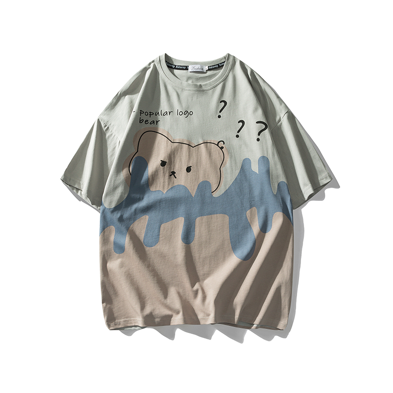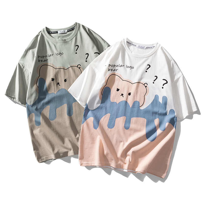 2021早春新款we11done夜光植绒烫画小熊圆领休闲情侣短袖T恤跨境