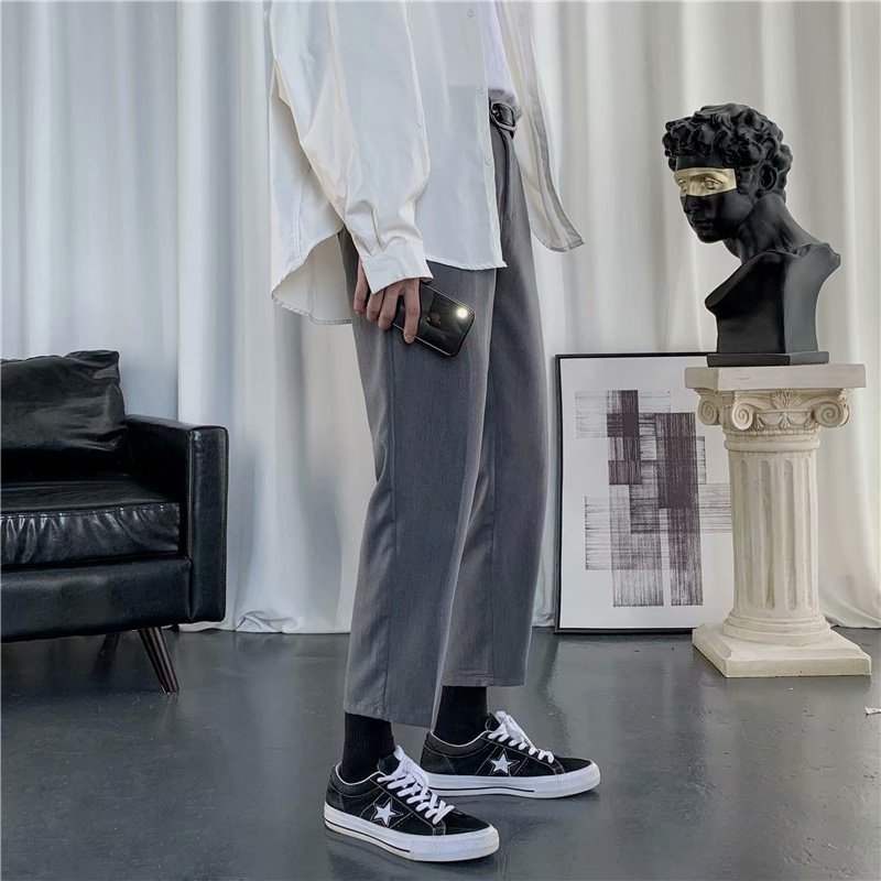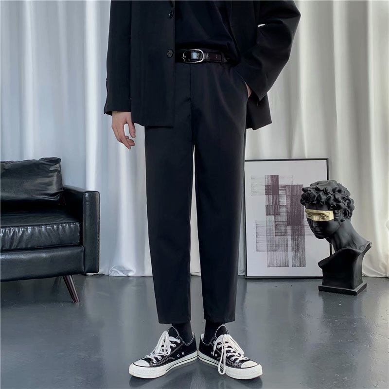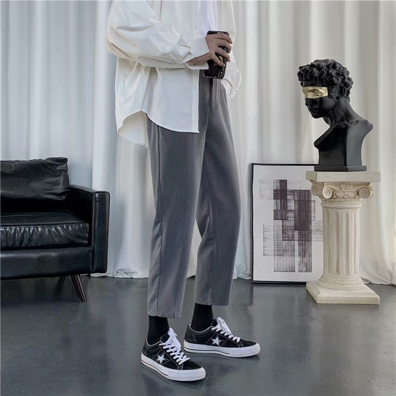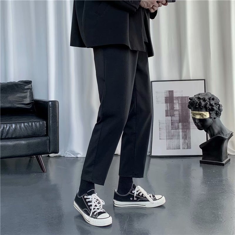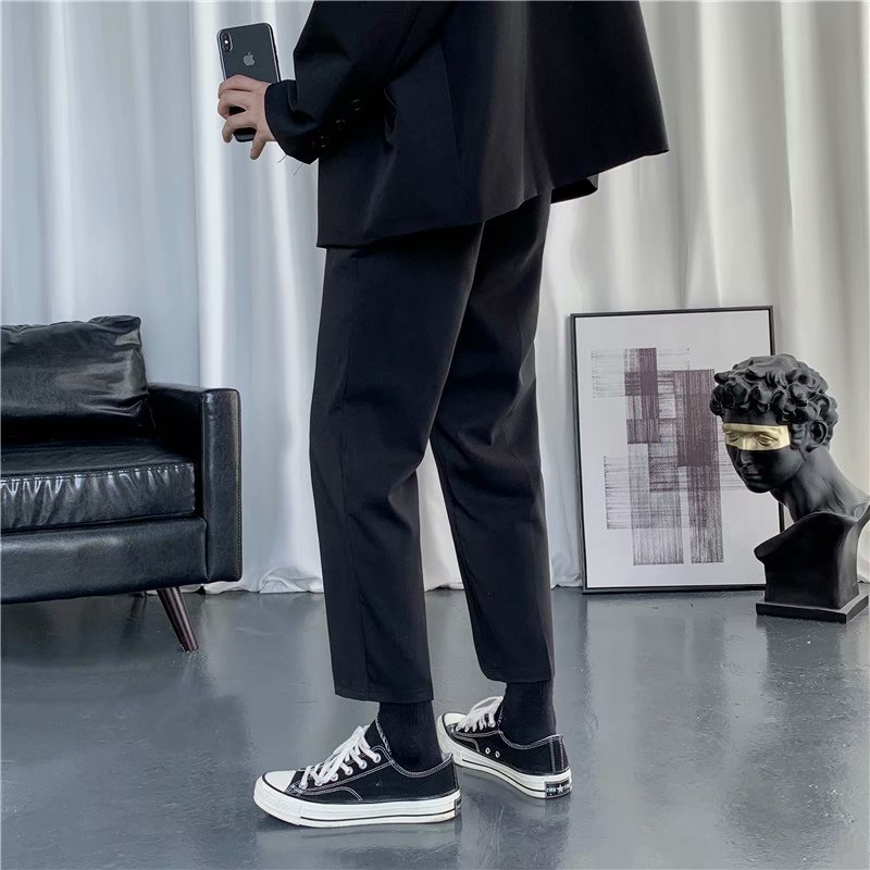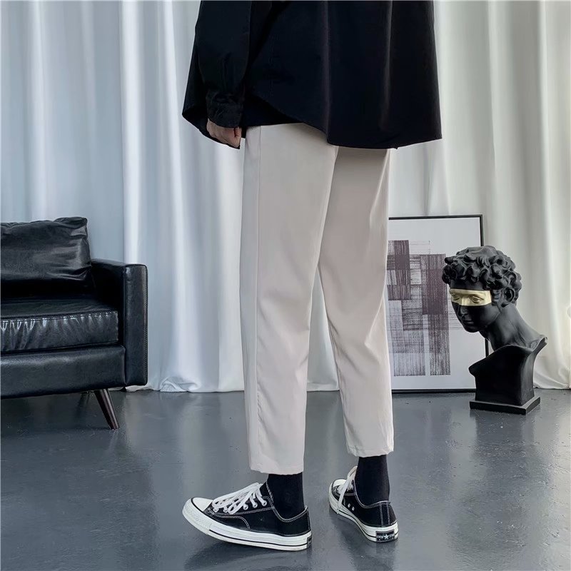 纳米布料男士商务休闲裤2020春夏季新款纯色中腰直筒修身长裤子男