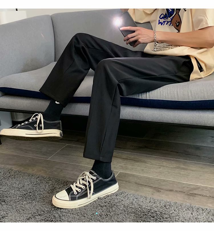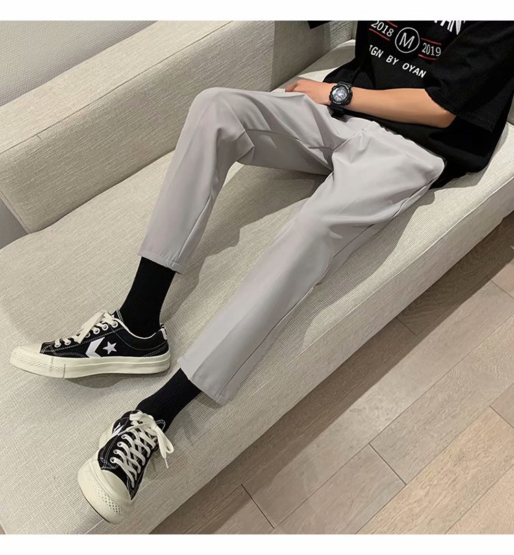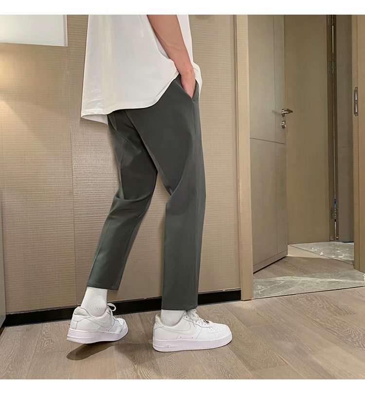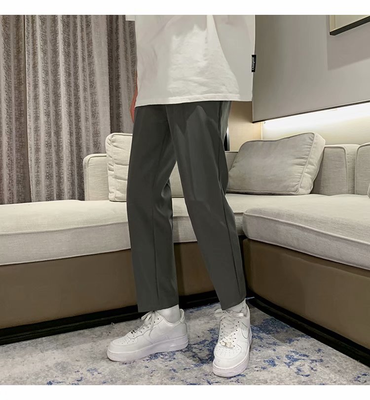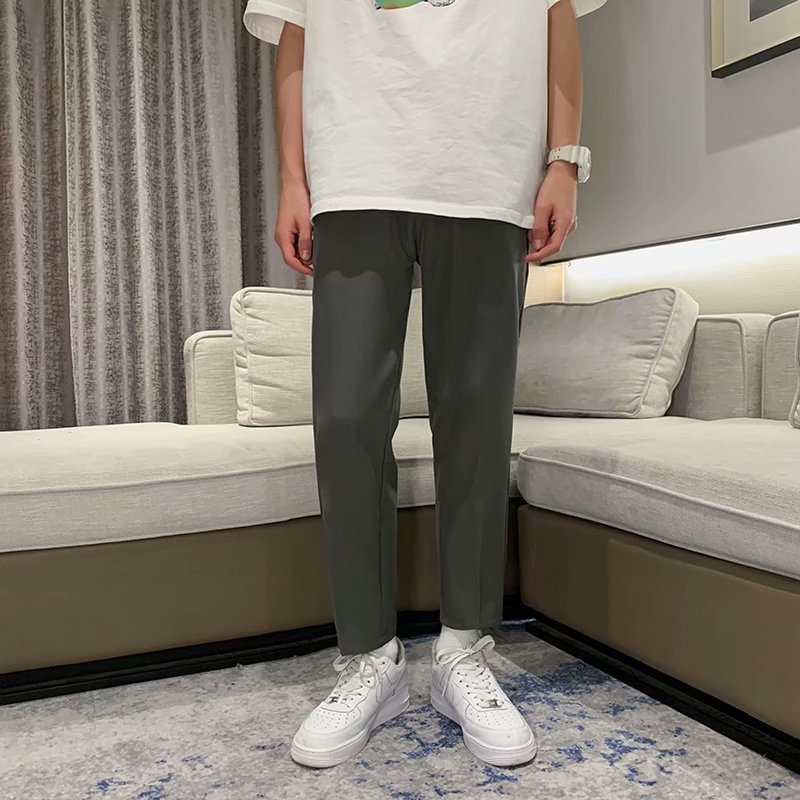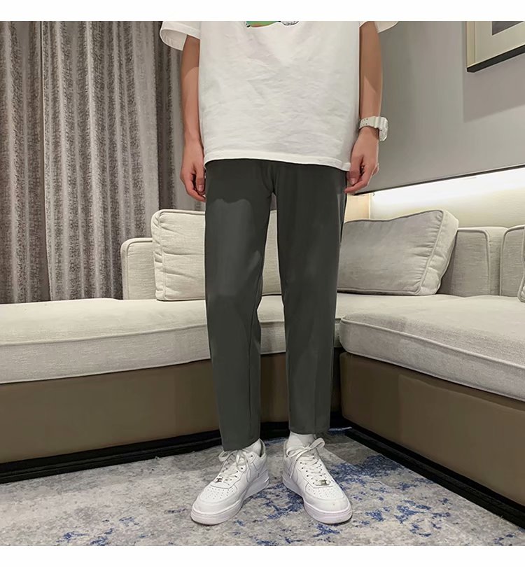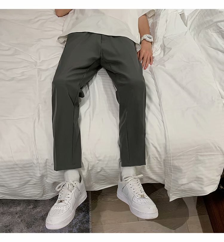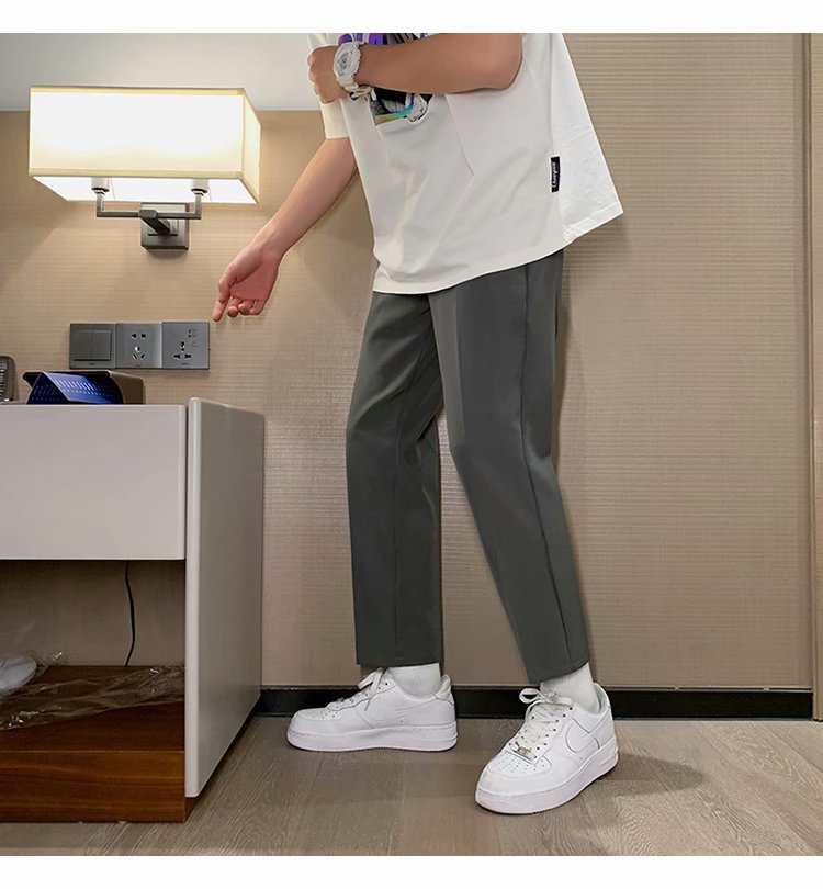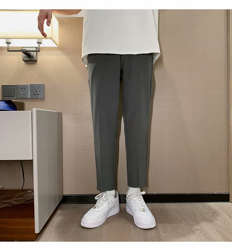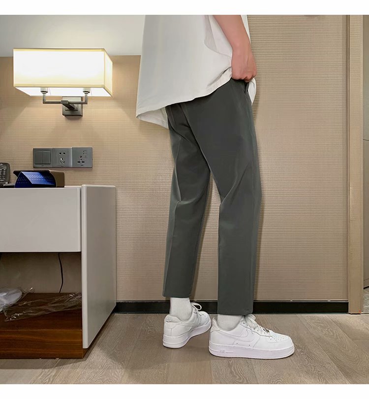 纳米布料男士商务休闲裤2020春夏季新款纯色中腰直筒修身长裤子男