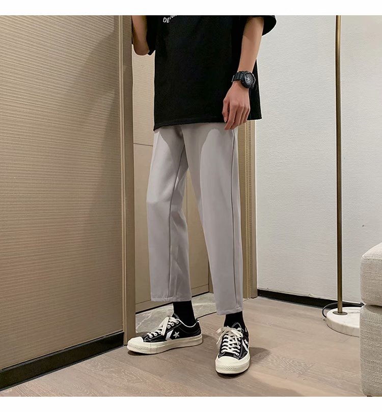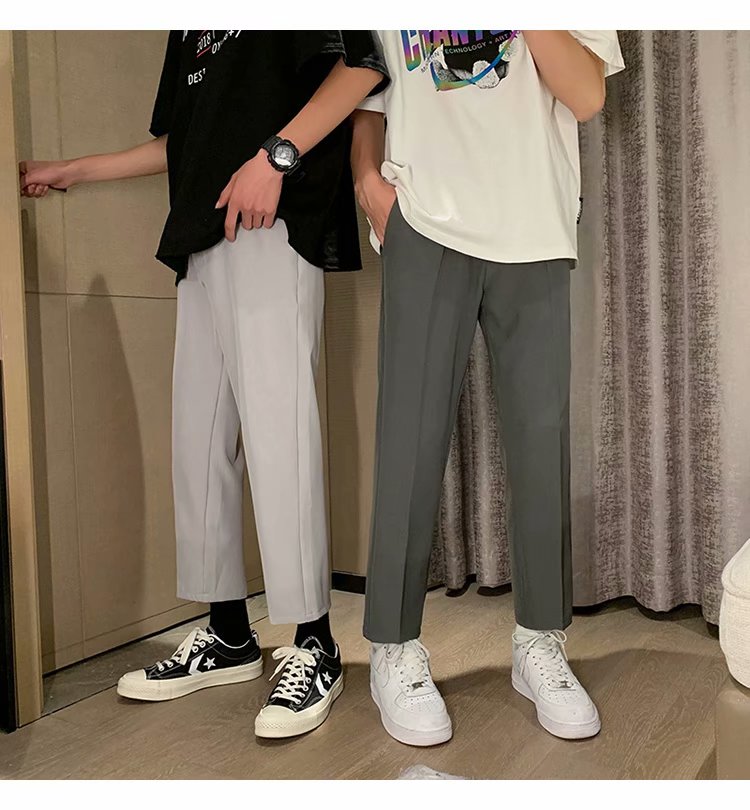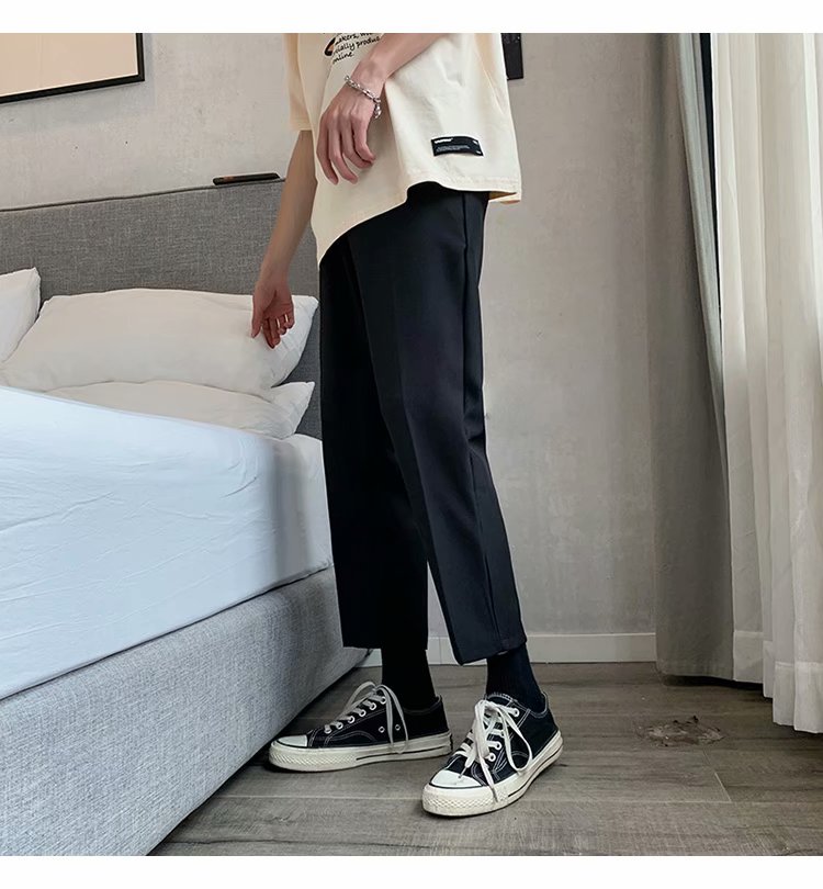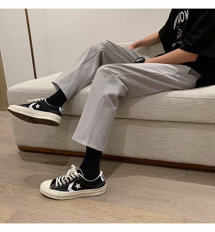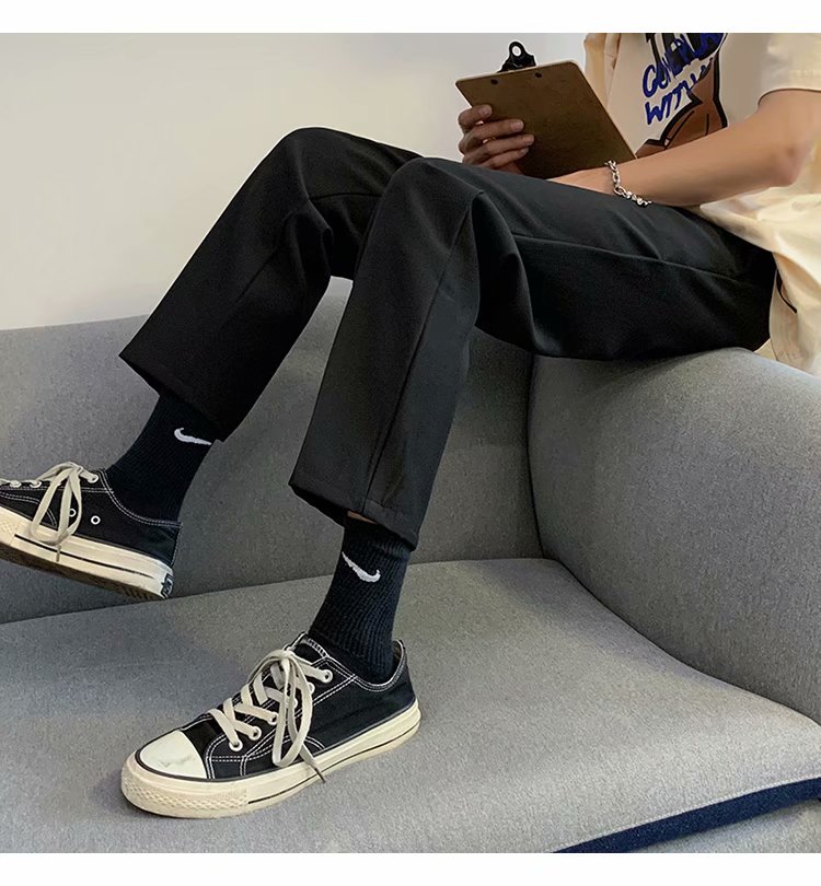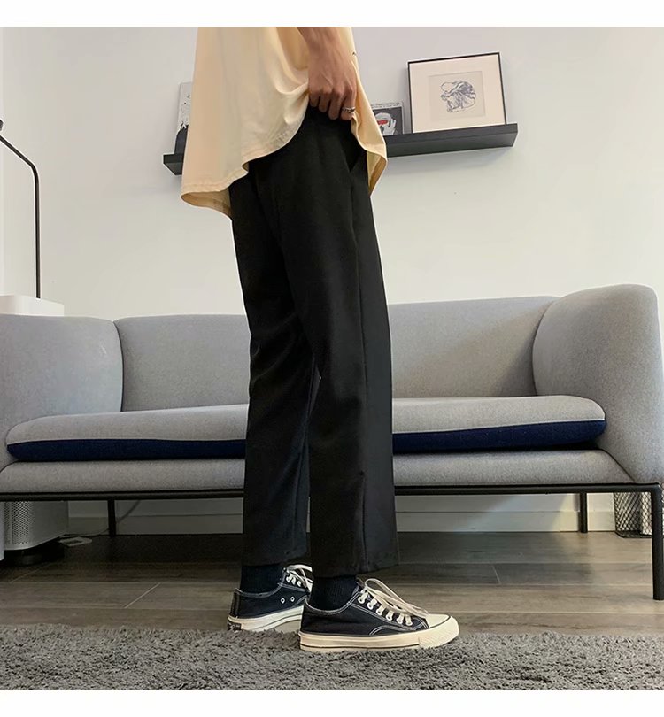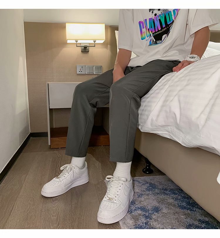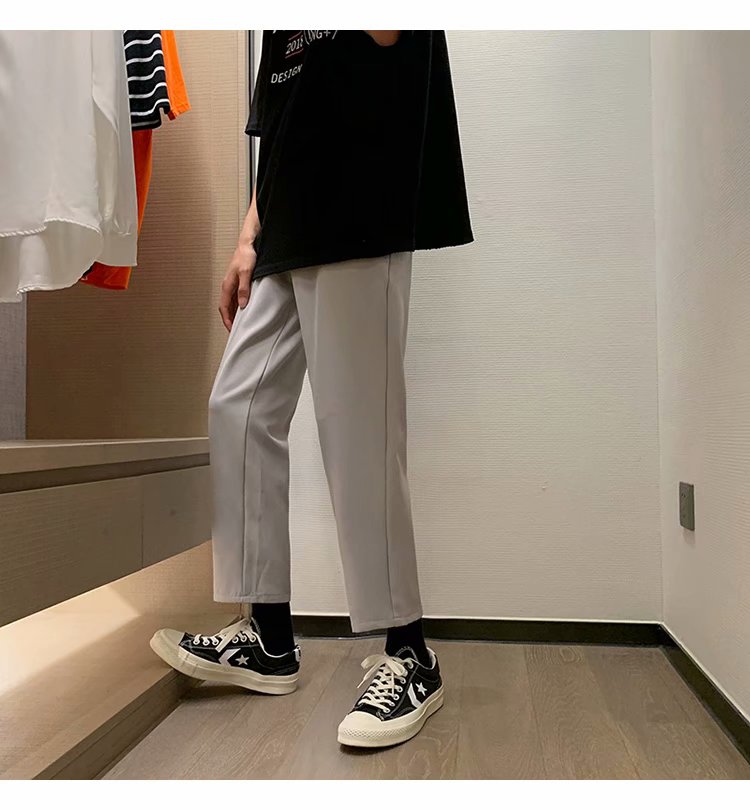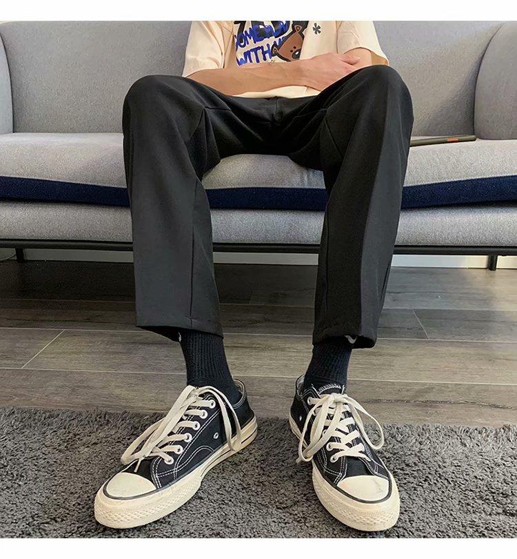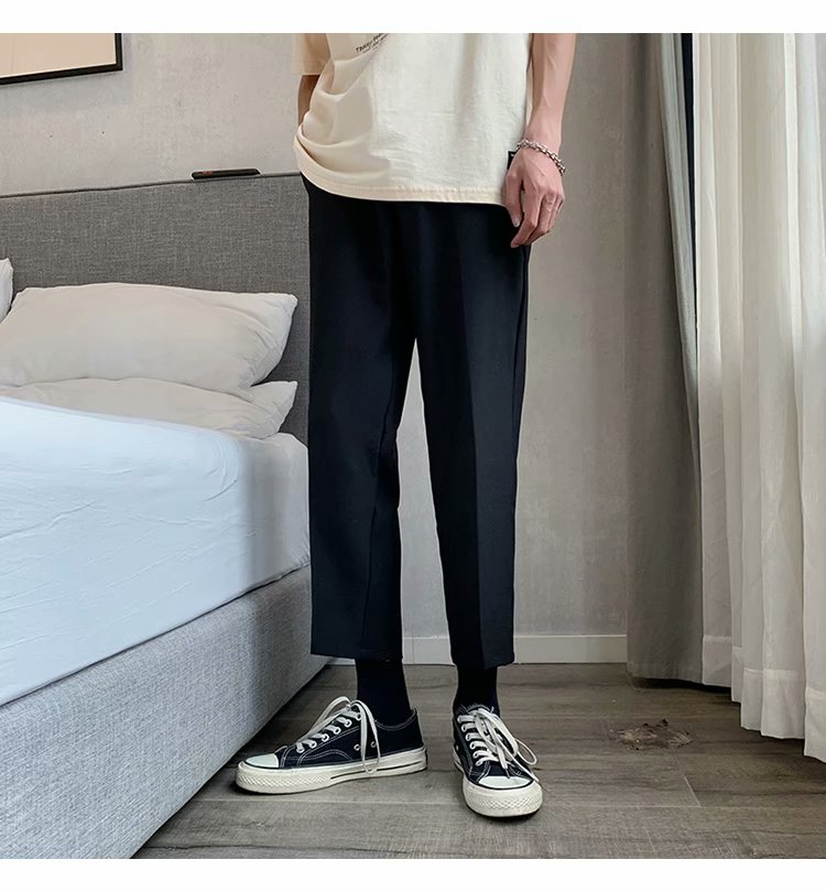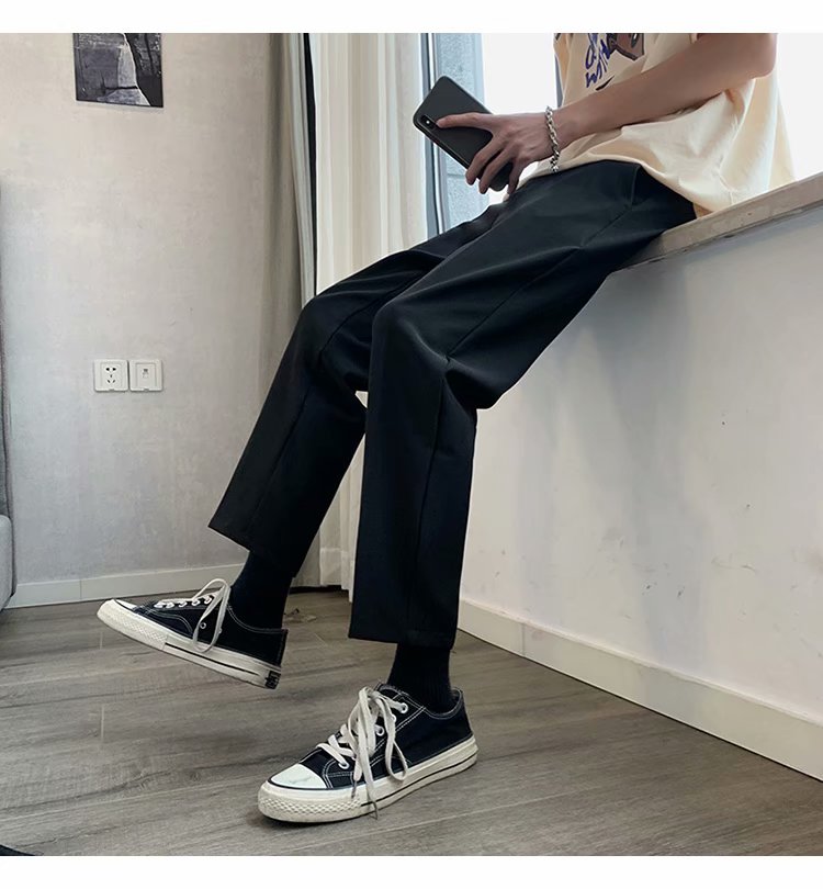 纳米布料男士商务休闲裤2020春夏季新款纯色中腰直筒修身长裤子男