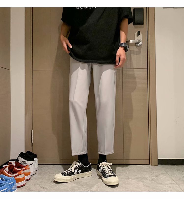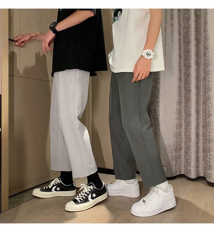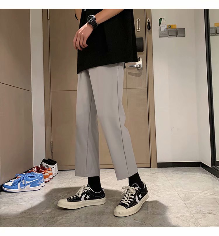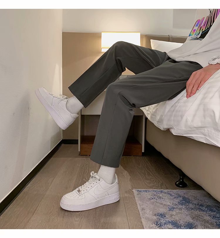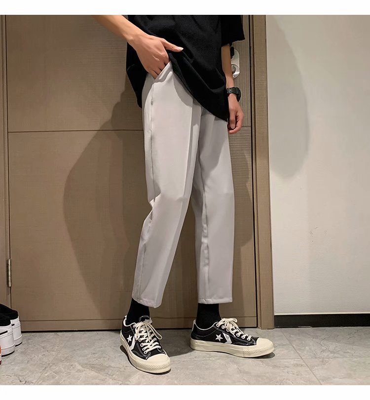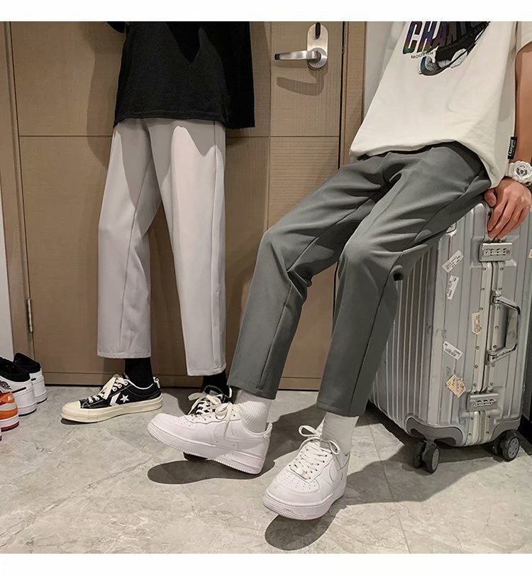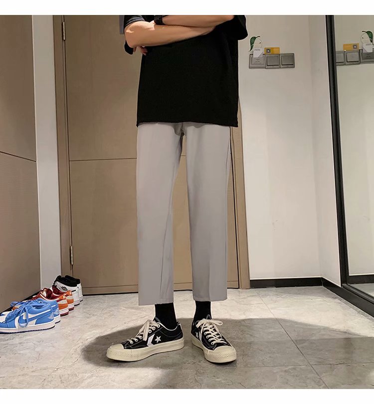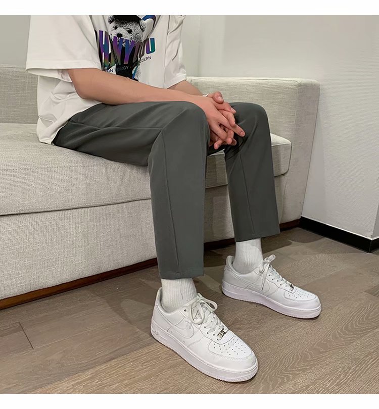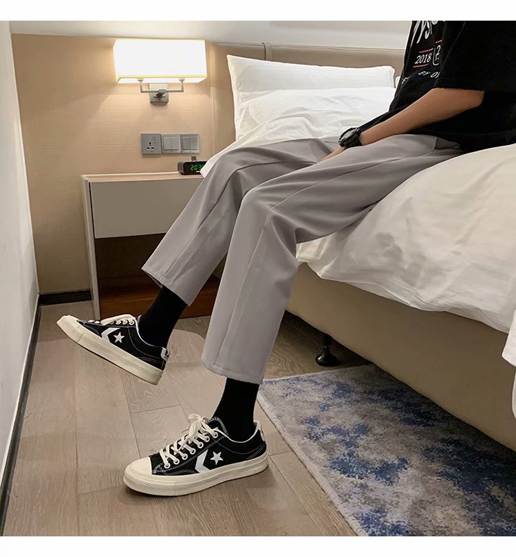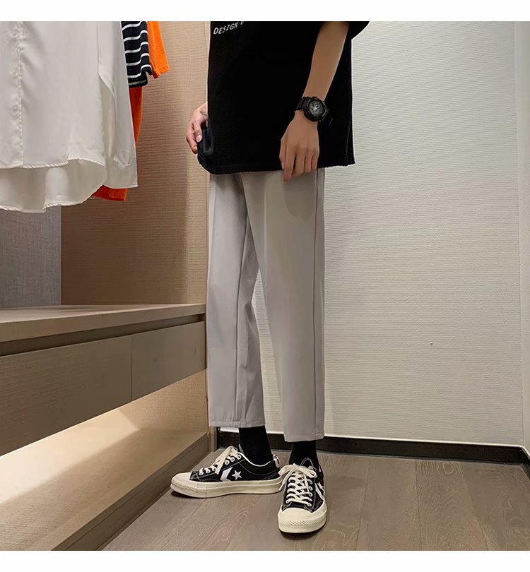 纳米布料男士商务休闲裤2020春夏季新款纯色中腰直筒修身长裤子男