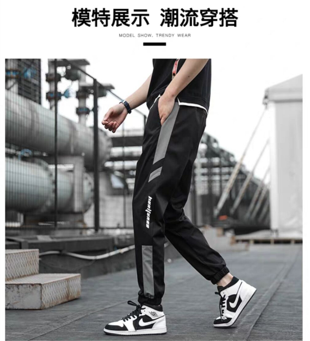 2021男式柔软布料中腰休闲现货青少年黑色字母弹力裤休闲裤五分裤