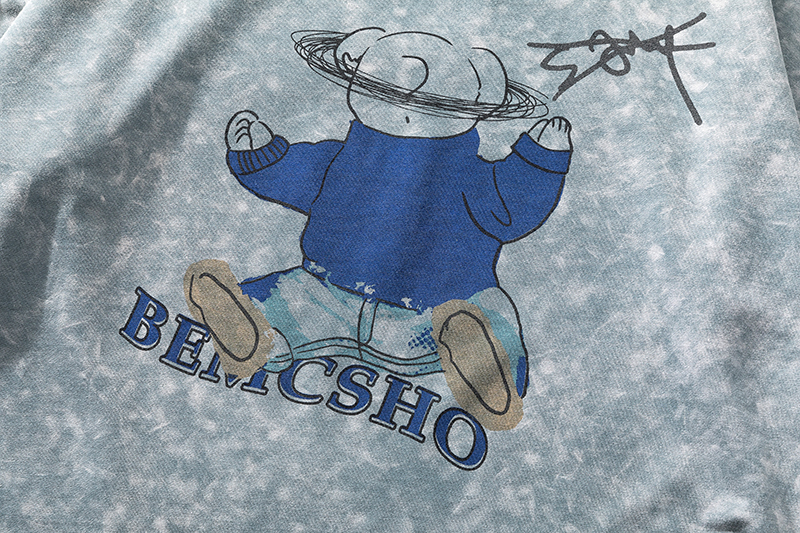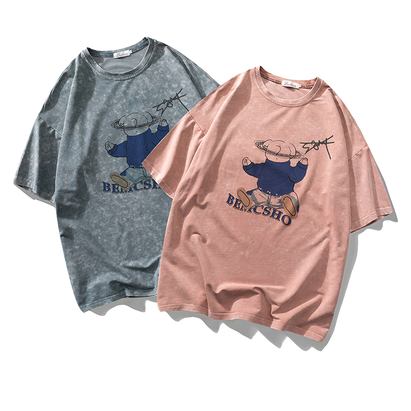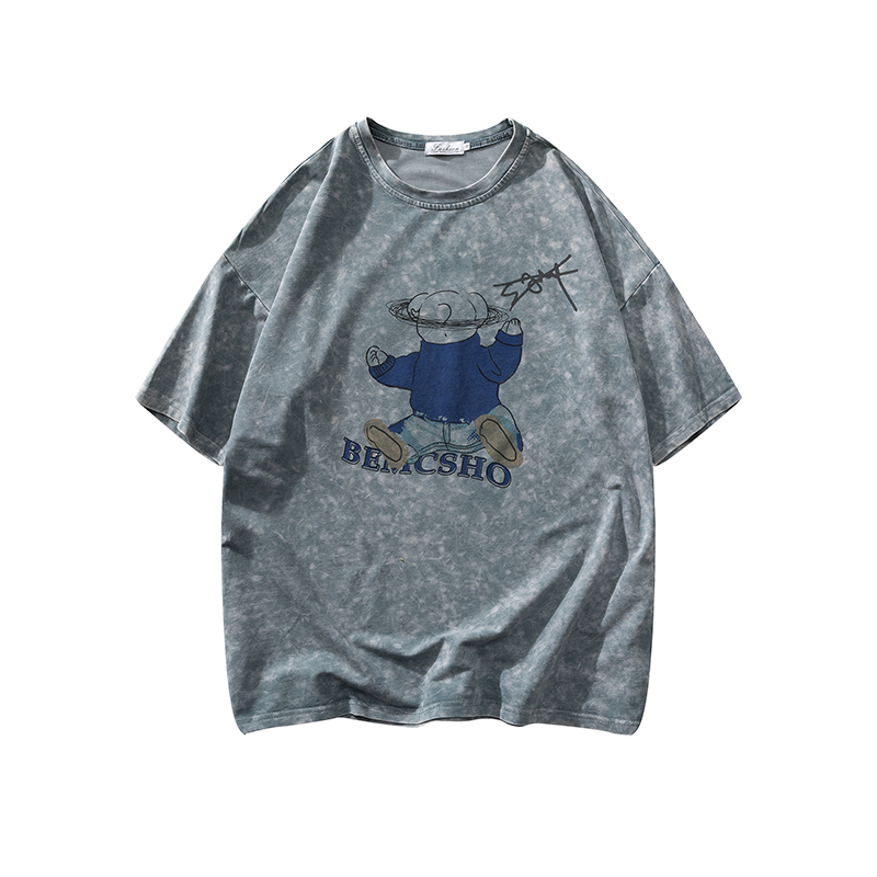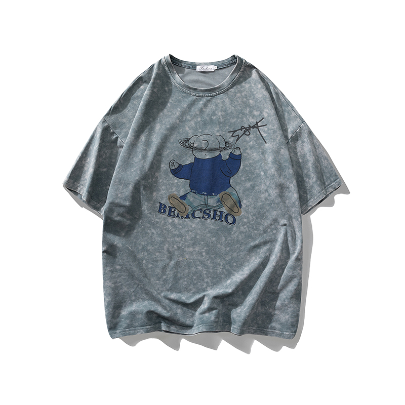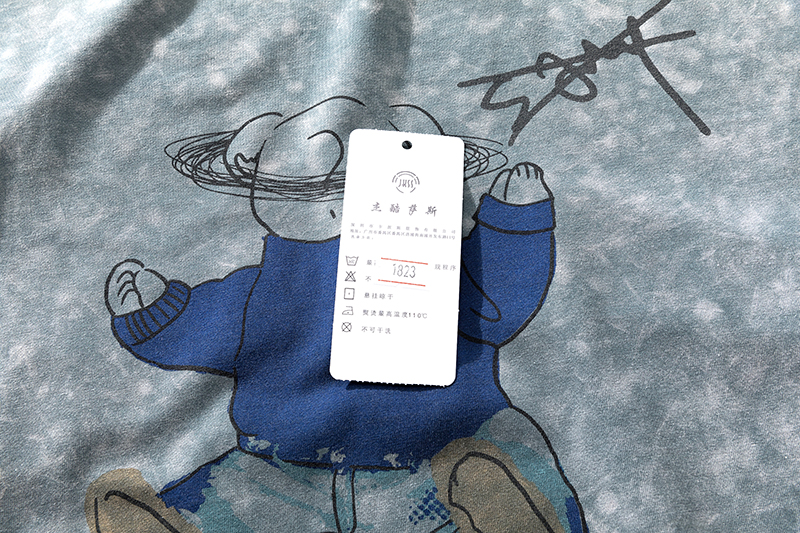 2021早春新款we11done夜光植绒烫画小熊圆领休闲情侣短袖T恤跨境