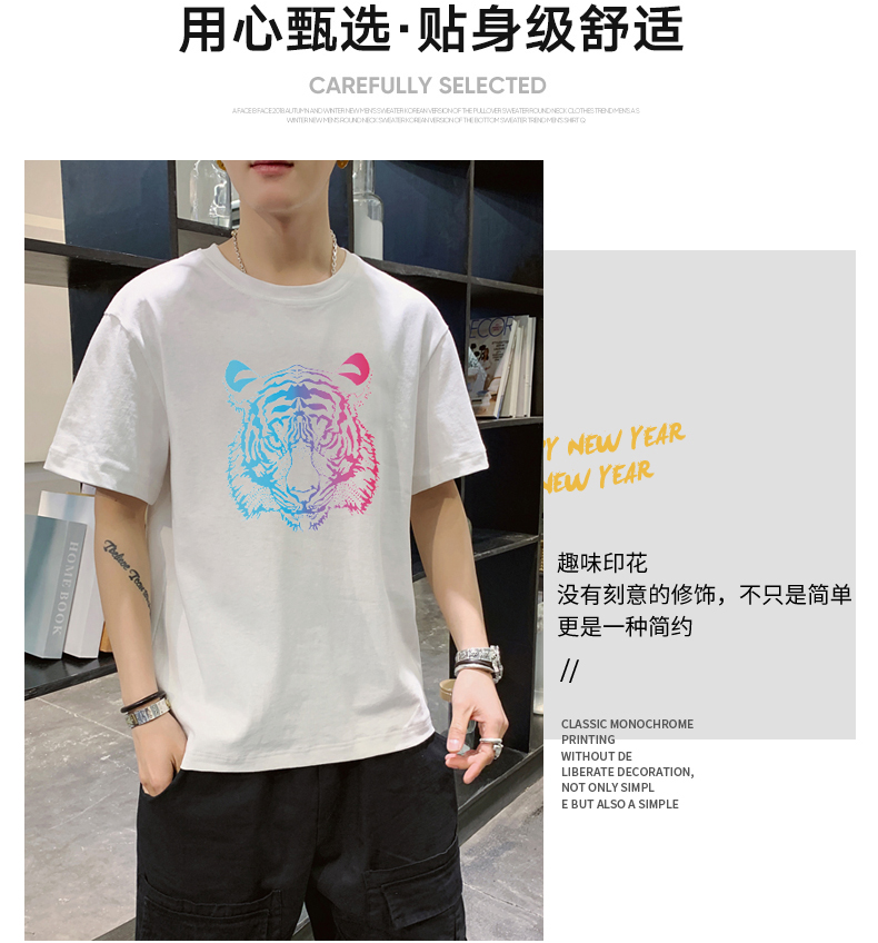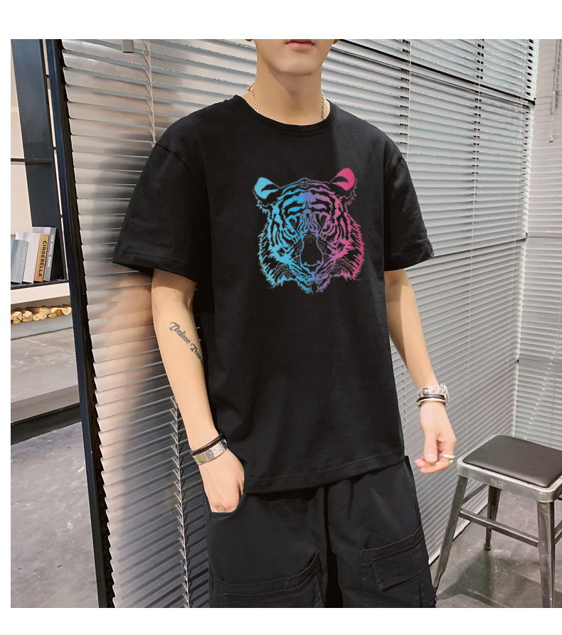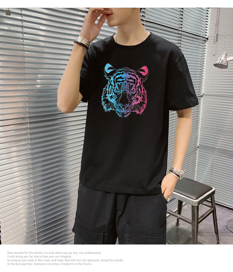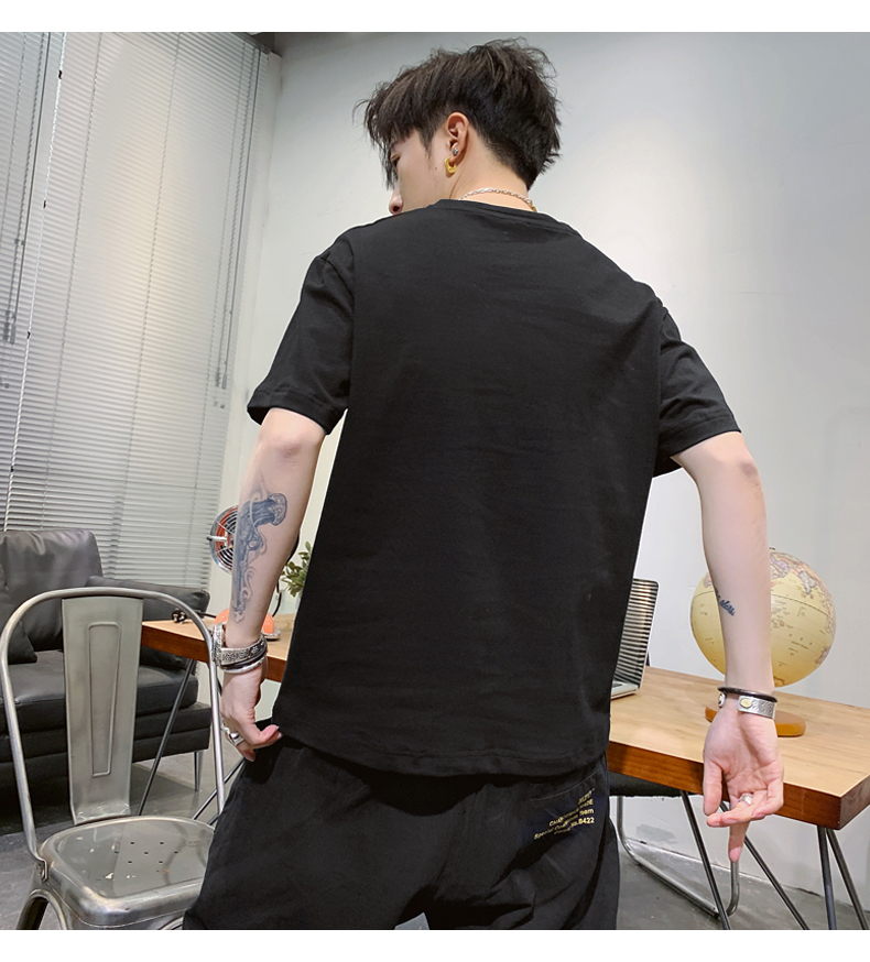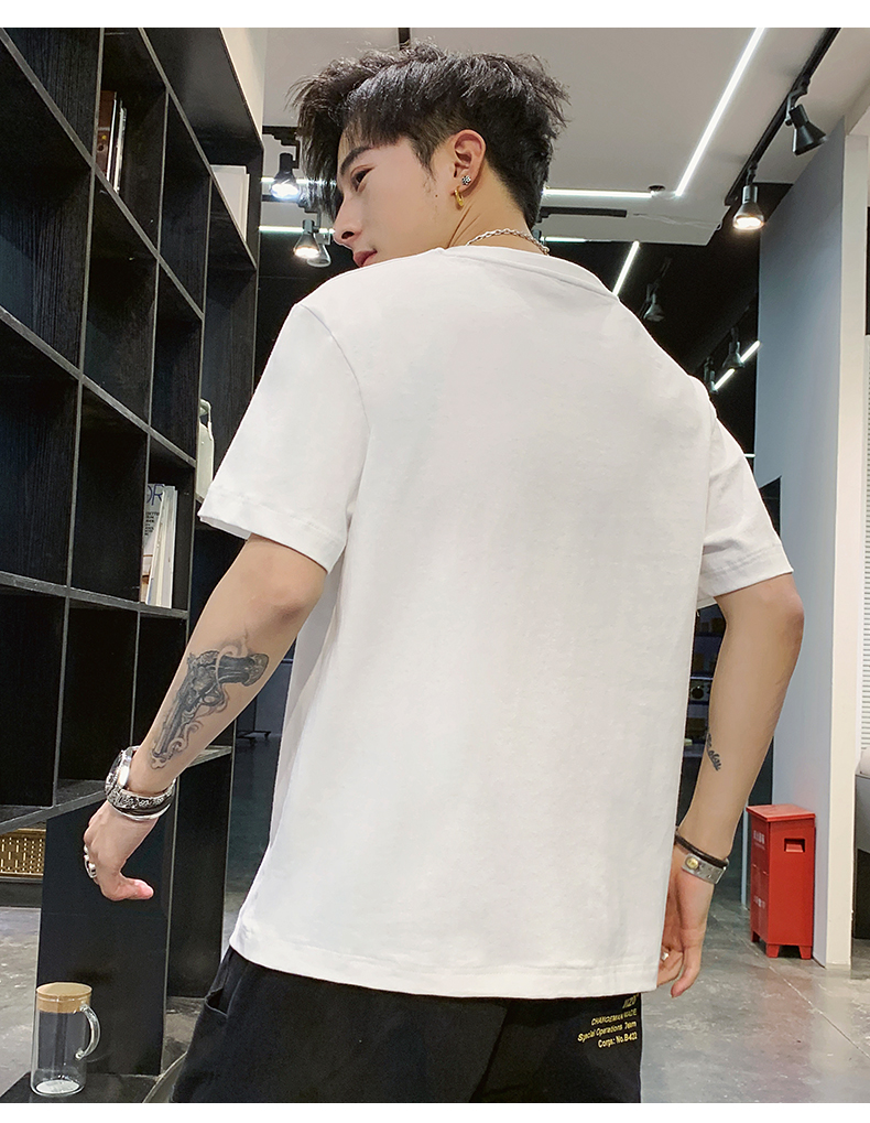 夏季2021新款短袖t恤男士潮牌韩版潮流宽松圆领棉布料好搭衣服