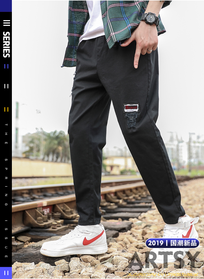 2021男式柔软布料中腰休闲现货青少年黑色字母弹力裤休闲裤五分裤