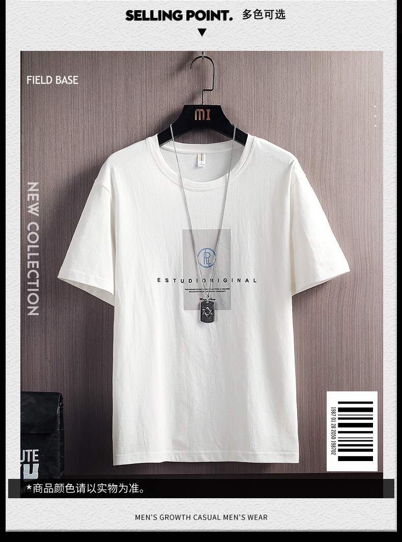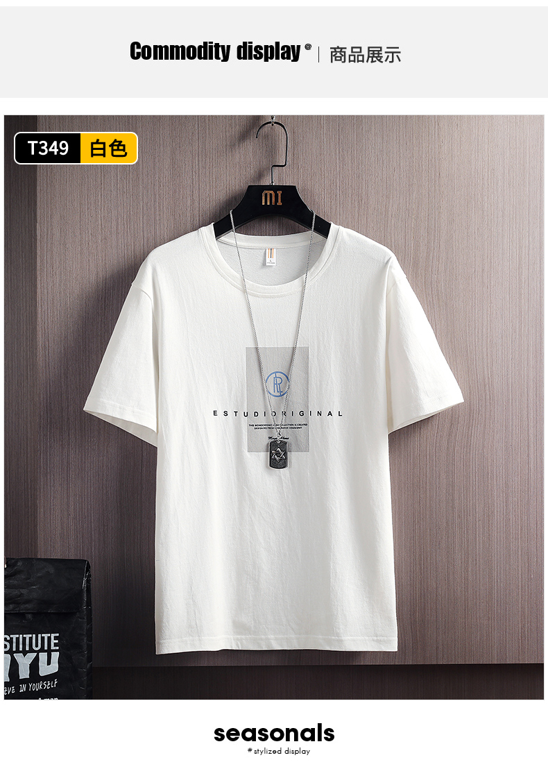 夏季2021新款短袖t恤男士潮牌韩版潮流宽松圆领棉布料好搭衣服