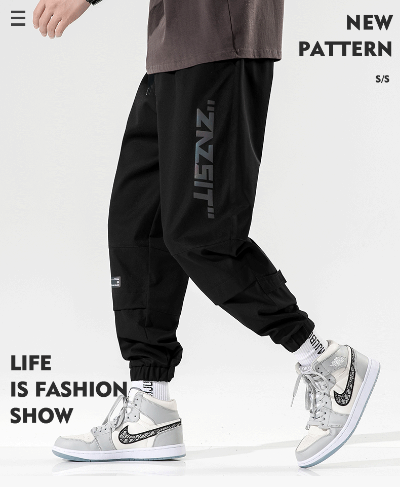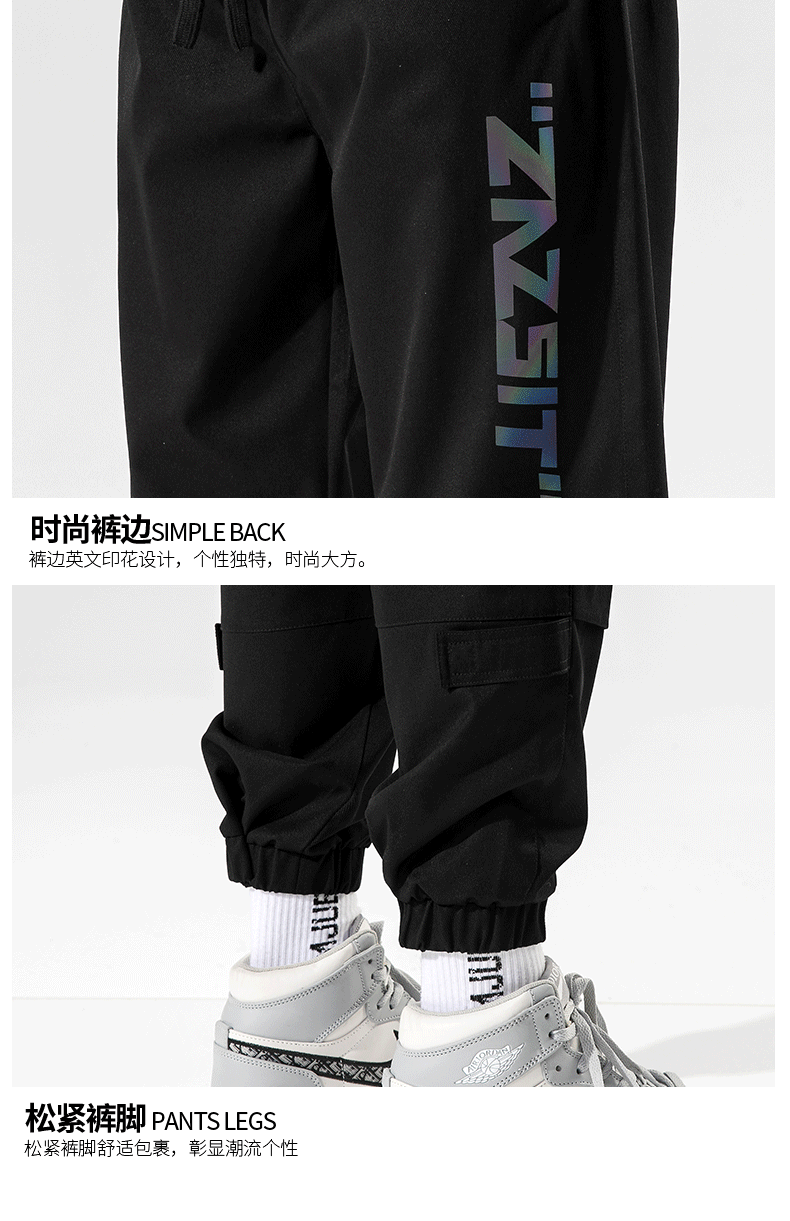 2021男式柔软布料中腰休闲现货青少年黑色字母弹力裤休闲裤五分裤