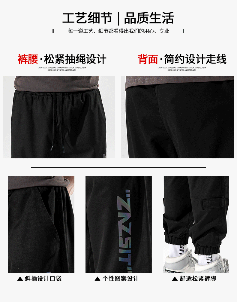 新款男士宽松休闲运动裤60s兰精莫代尔面料双侧口袋弹力收脚裤