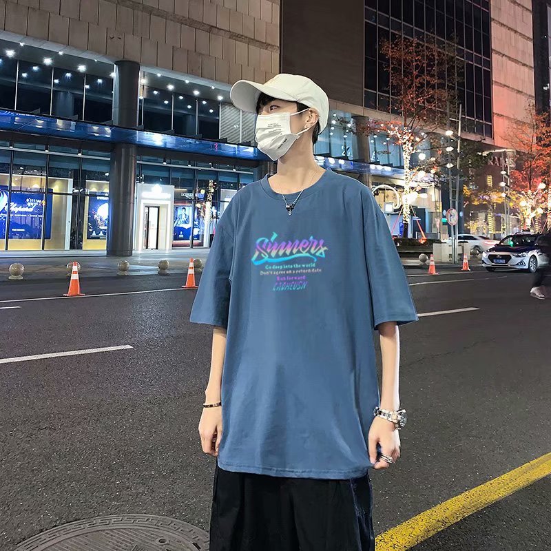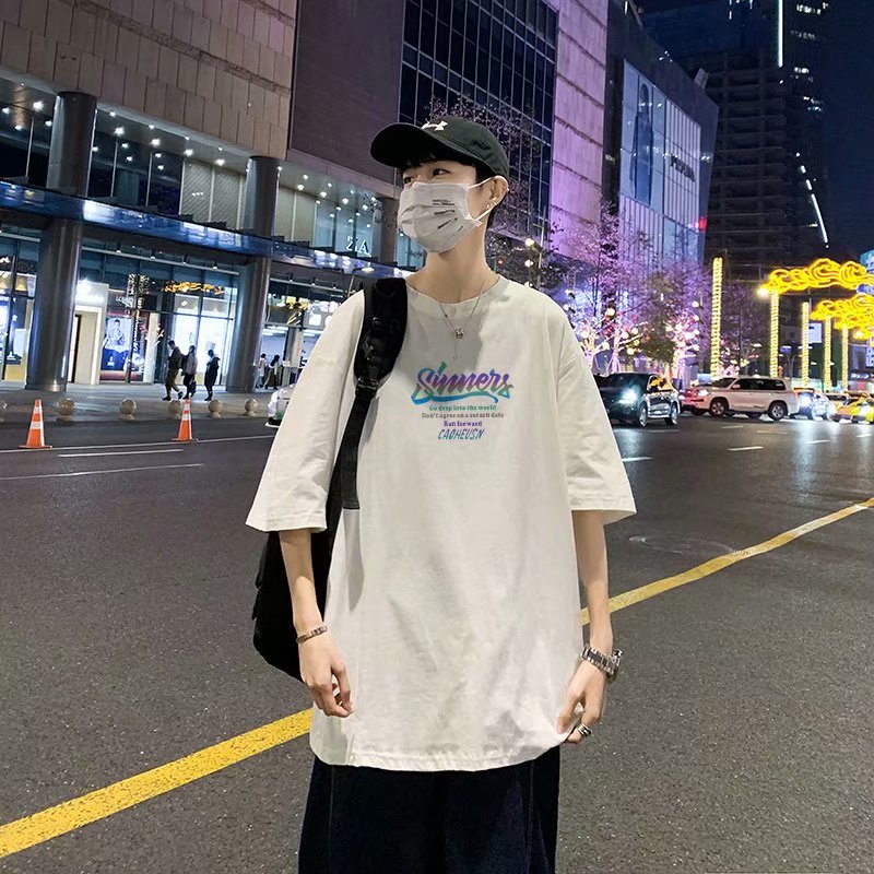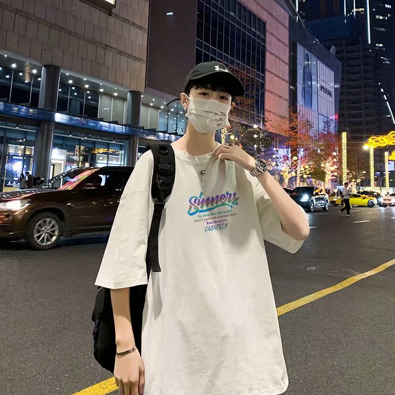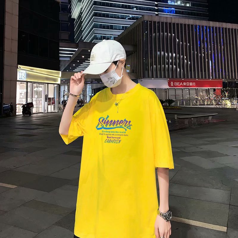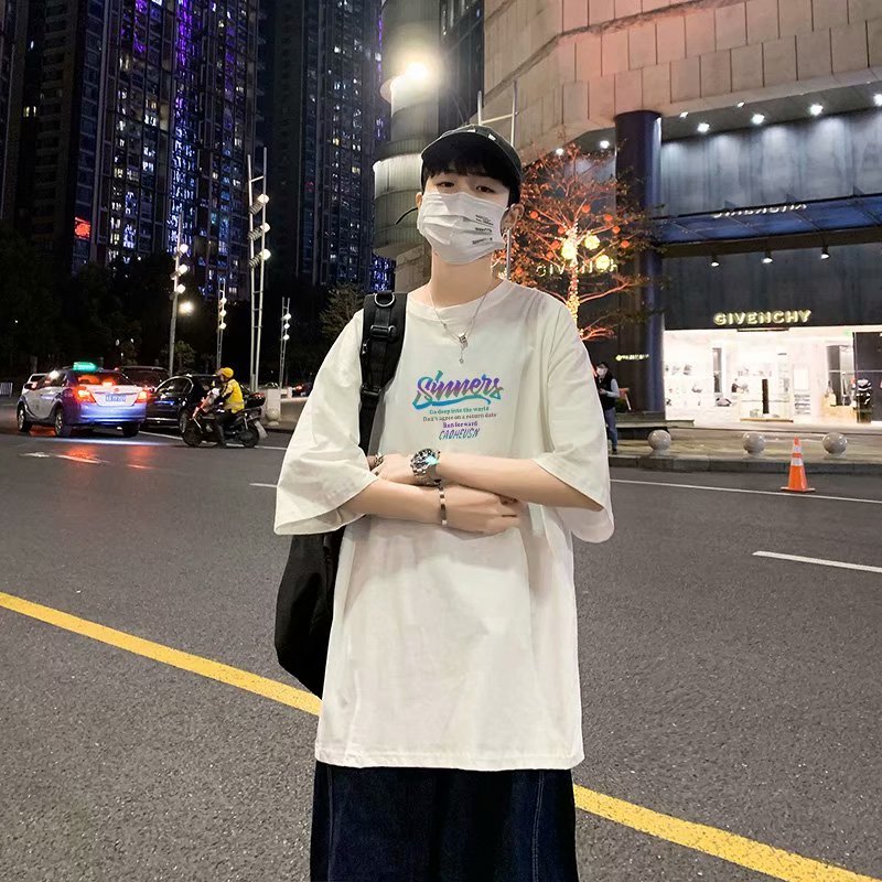 夏季2021新款短袖t恤男士潮牌韩版潮流宽松圆领棉布料好搭衣服