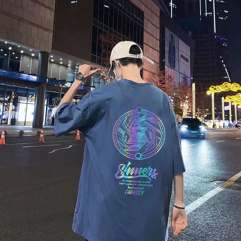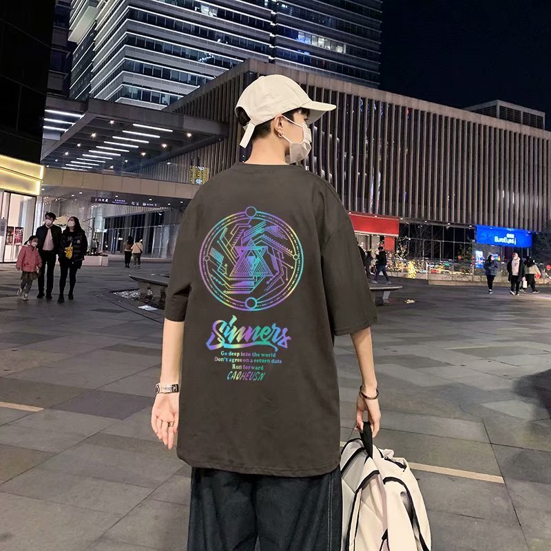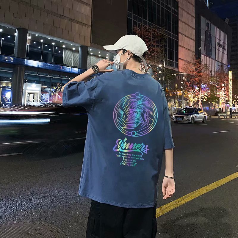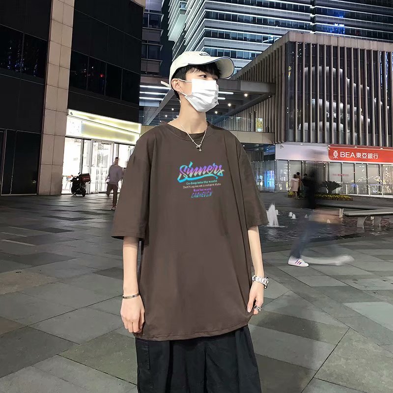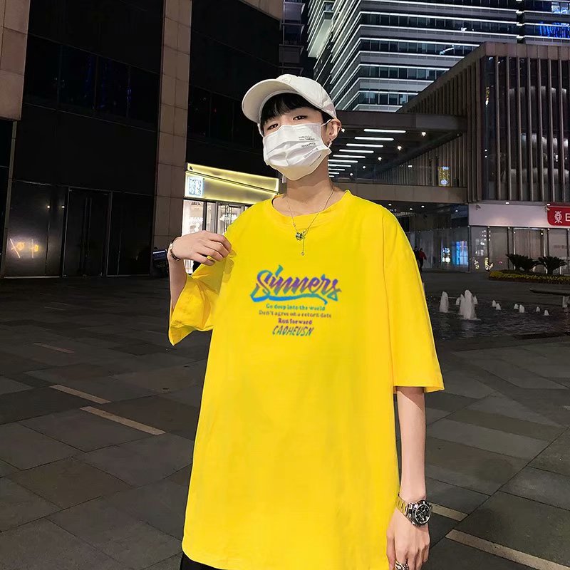 夏季2021新款短袖t恤男士潮牌韩版潮流宽松圆领棉布料好搭衣服
