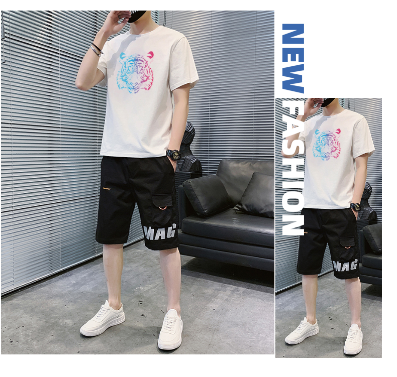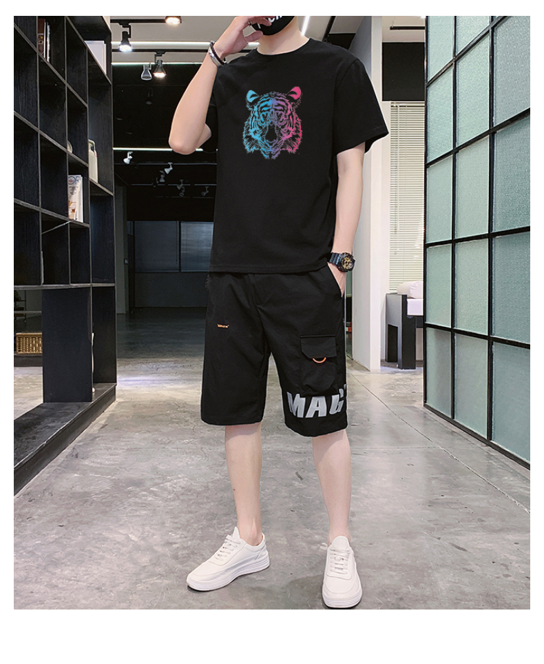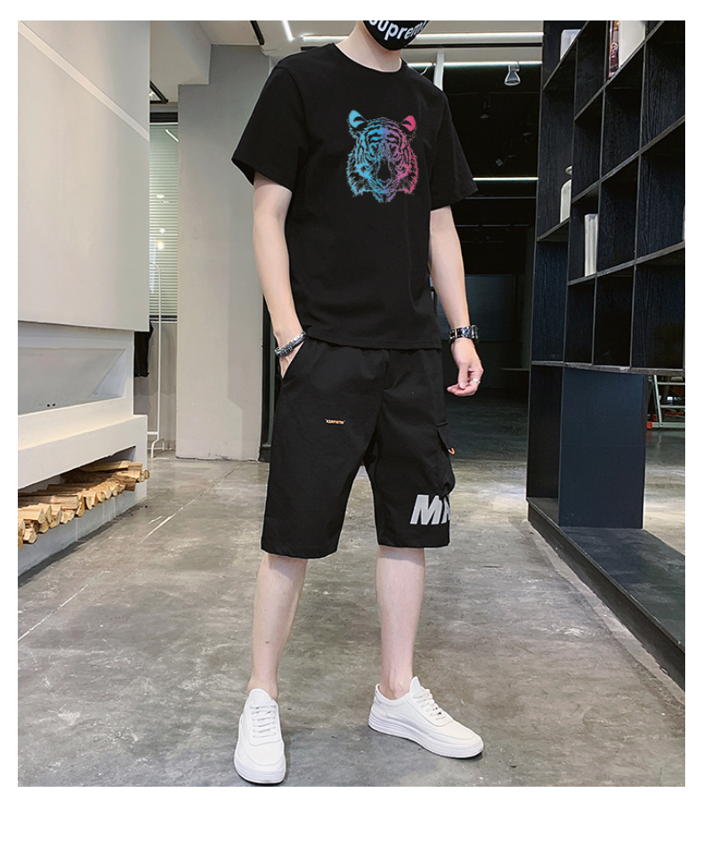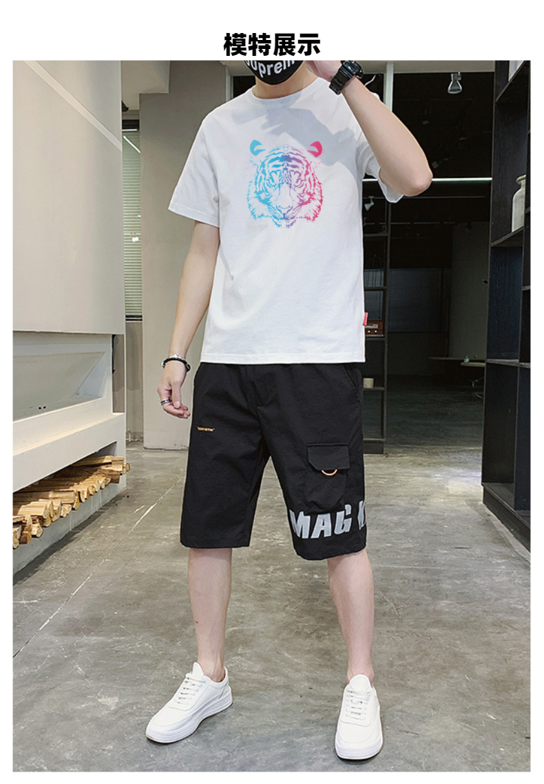 2021夏季新款新型蚂蚁皱布料短袖短裤潮流印花运动时尚休闲套装男