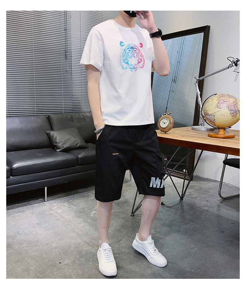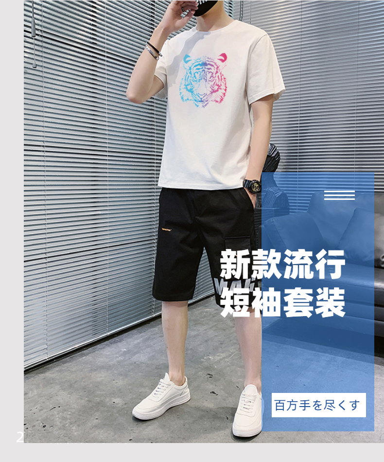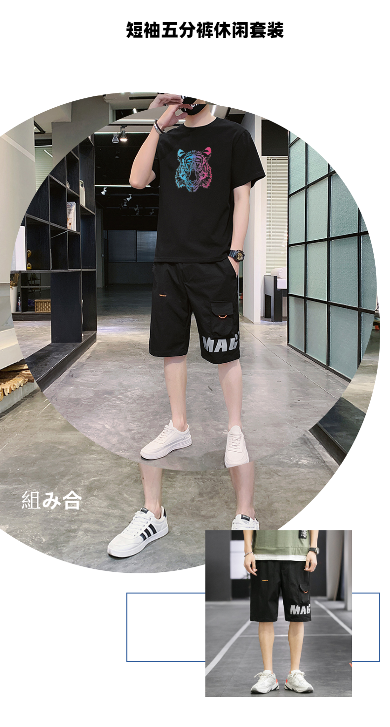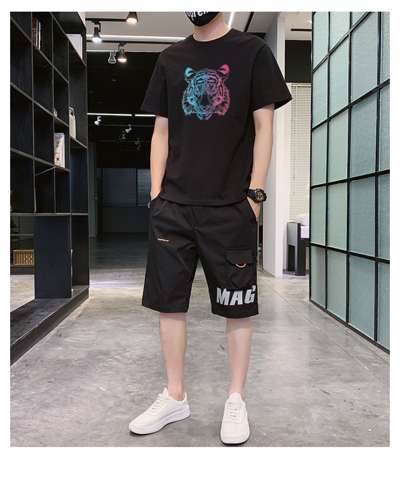2021夏季新款新型蚂蚁皱布料短袖短裤潮流印花运动时尚休闲套装男