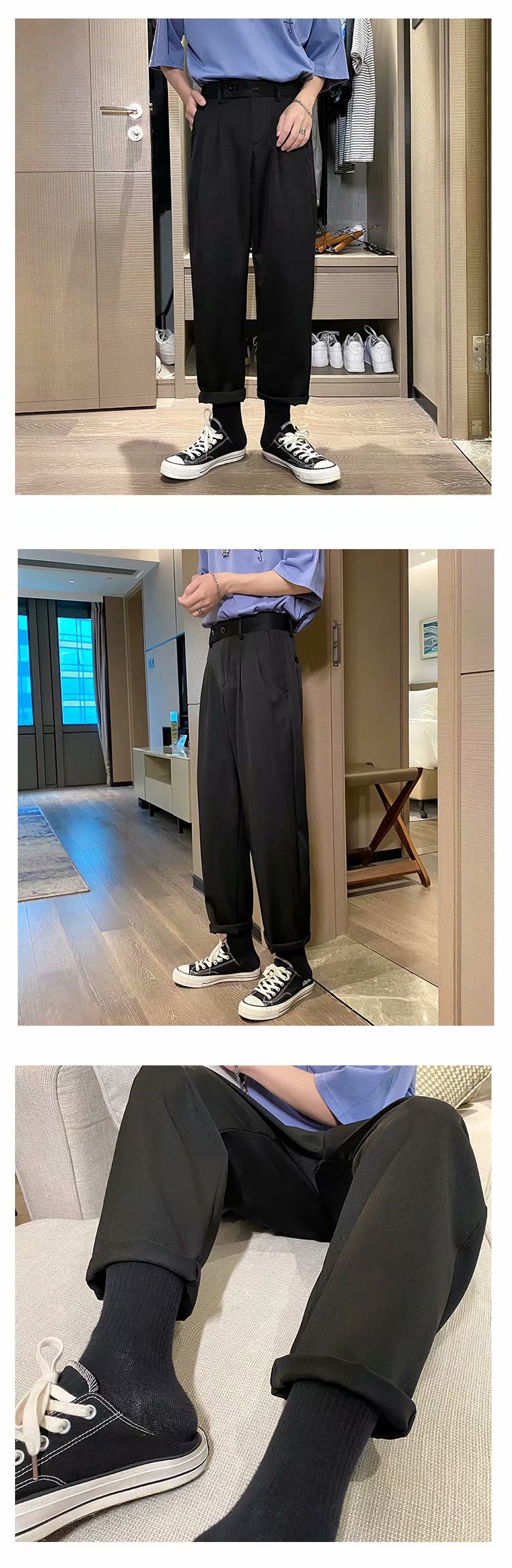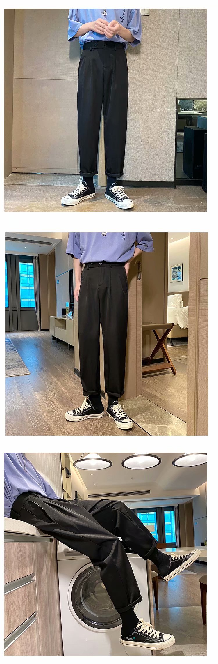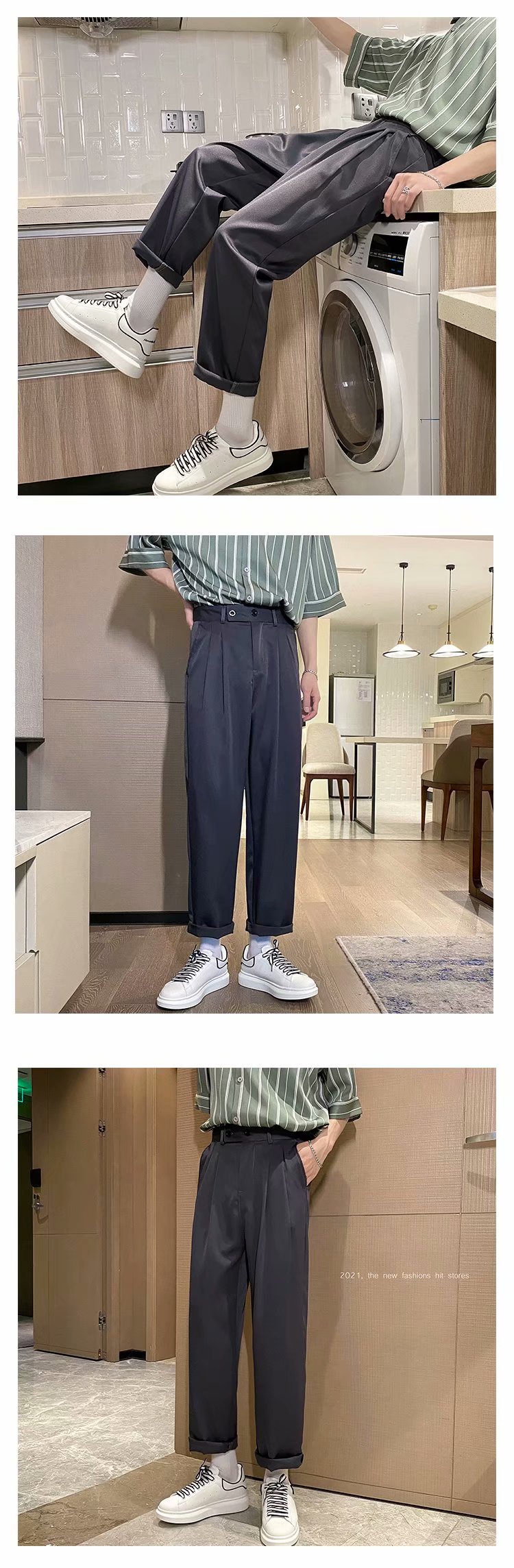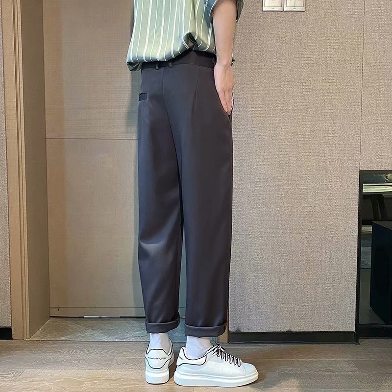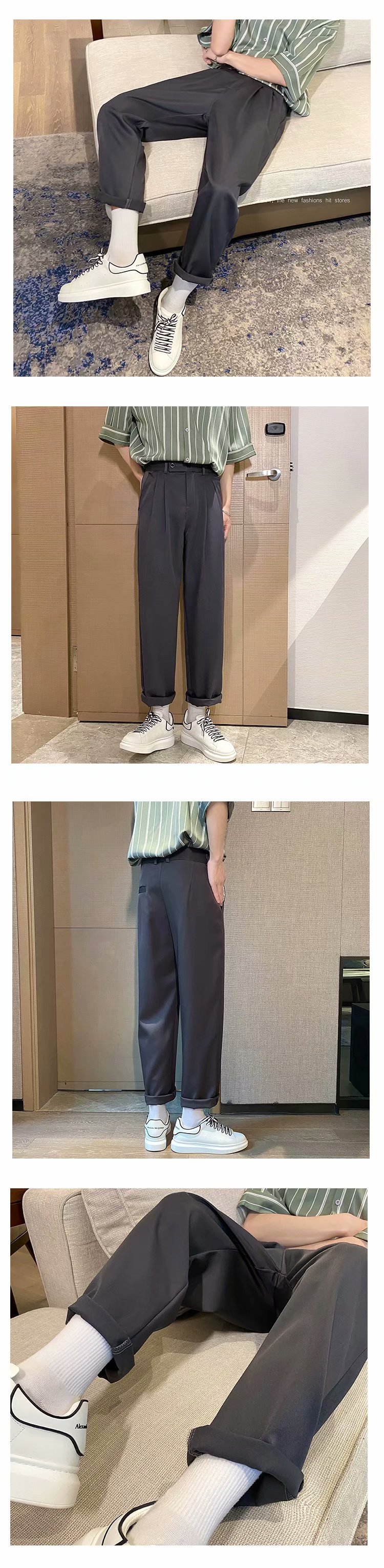 纳米布料男士商务休闲裤2020春夏季新款纯色中腰直筒修身长裤子男