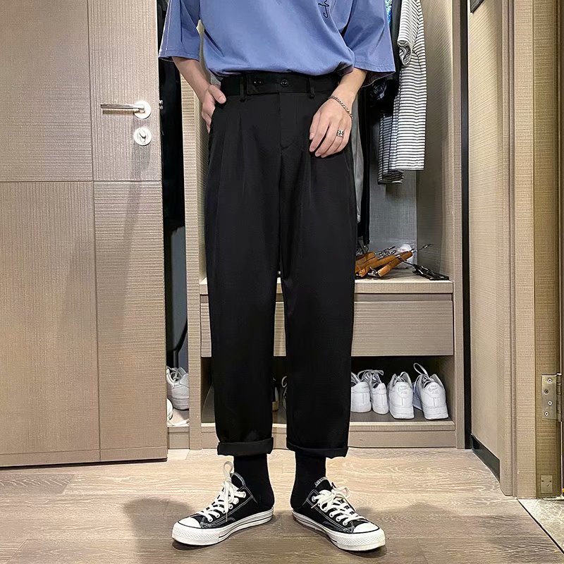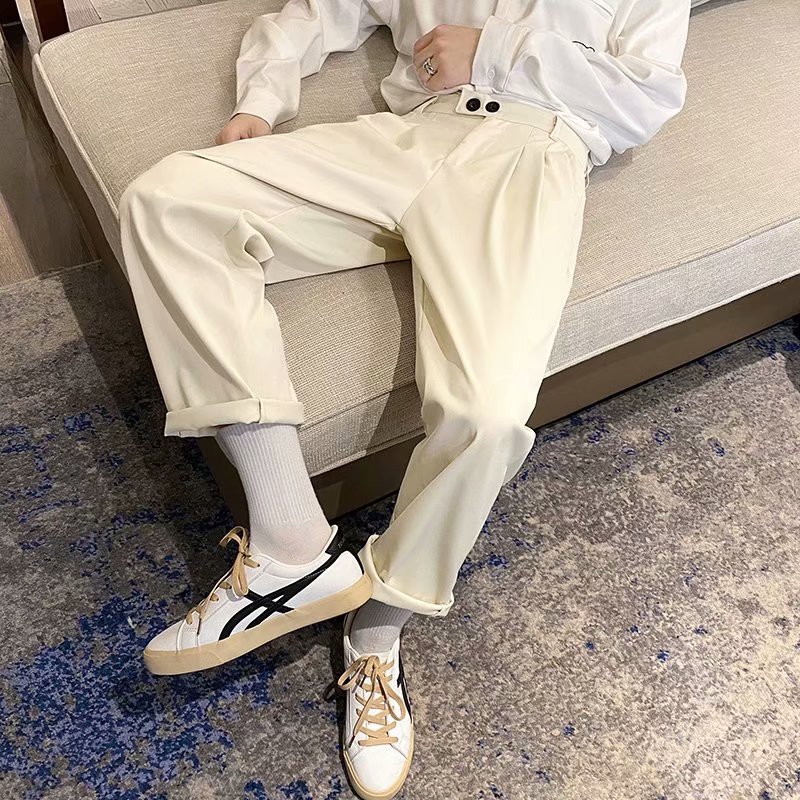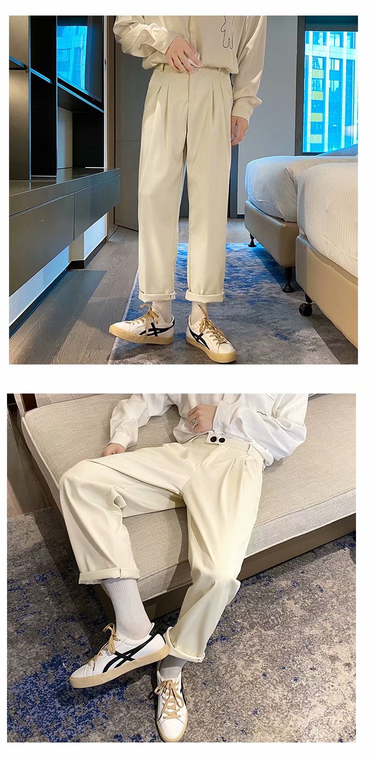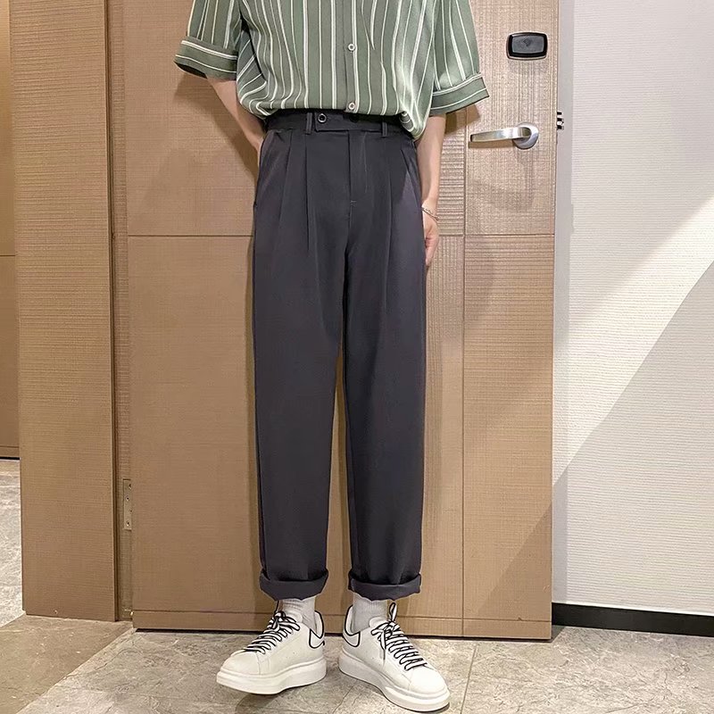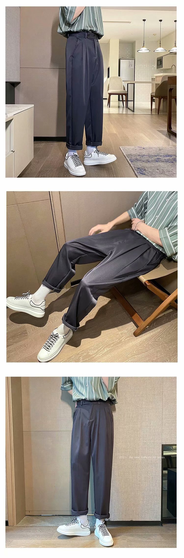 纳米布料男士商务休闲裤2020春夏季新款纯色中腰直筒修身长裤子男