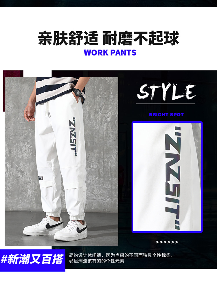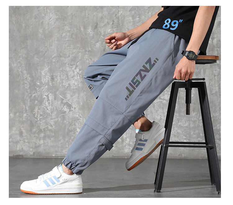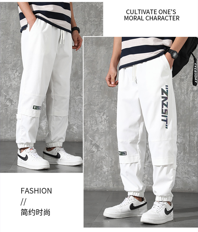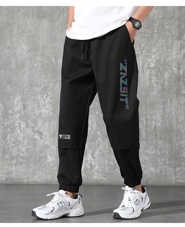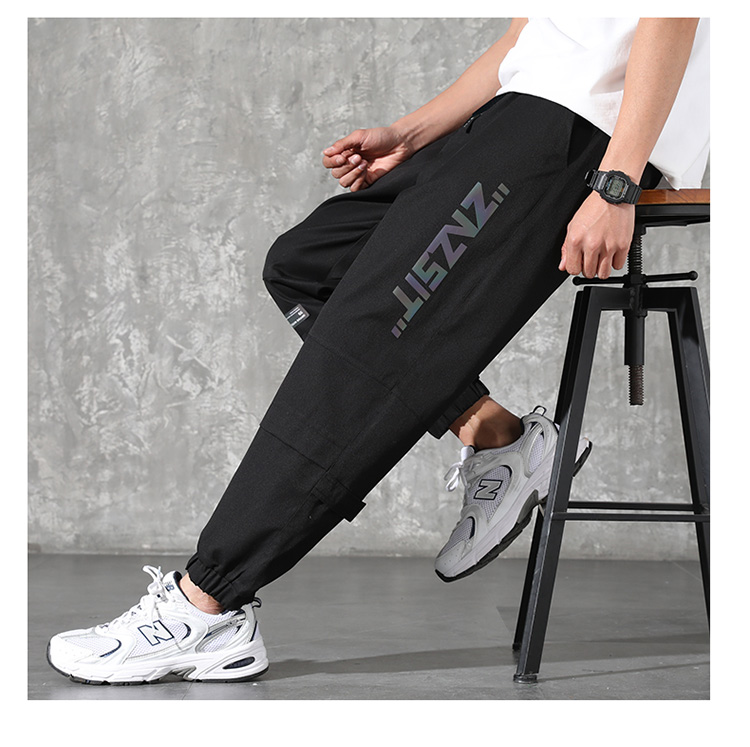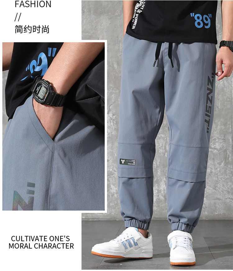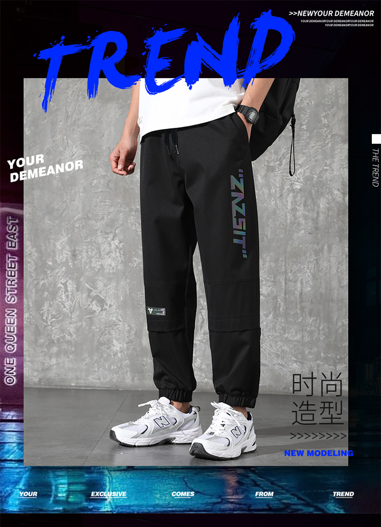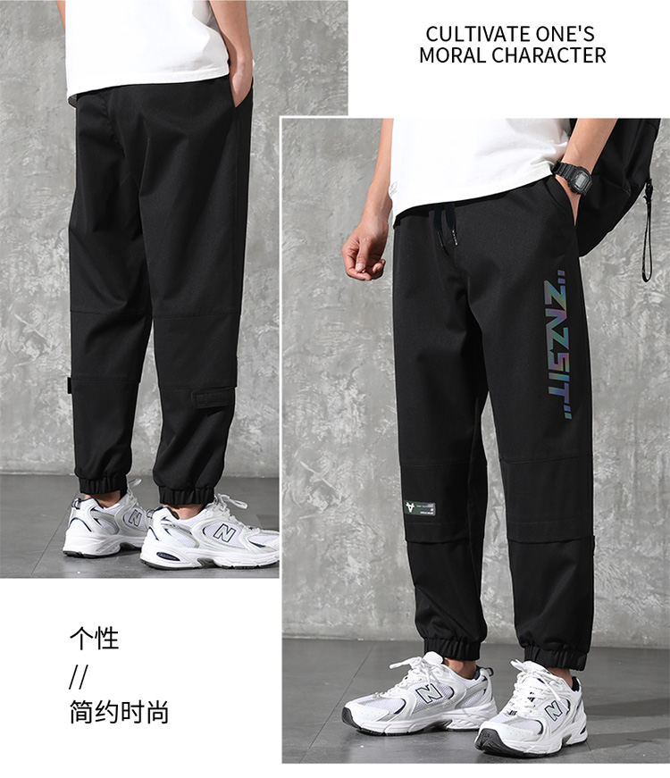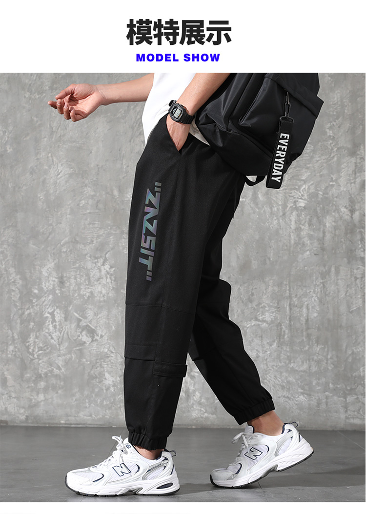2021男式柔软布料中腰休闲现货青少年黑色字母弹力裤休闲裤五分裤