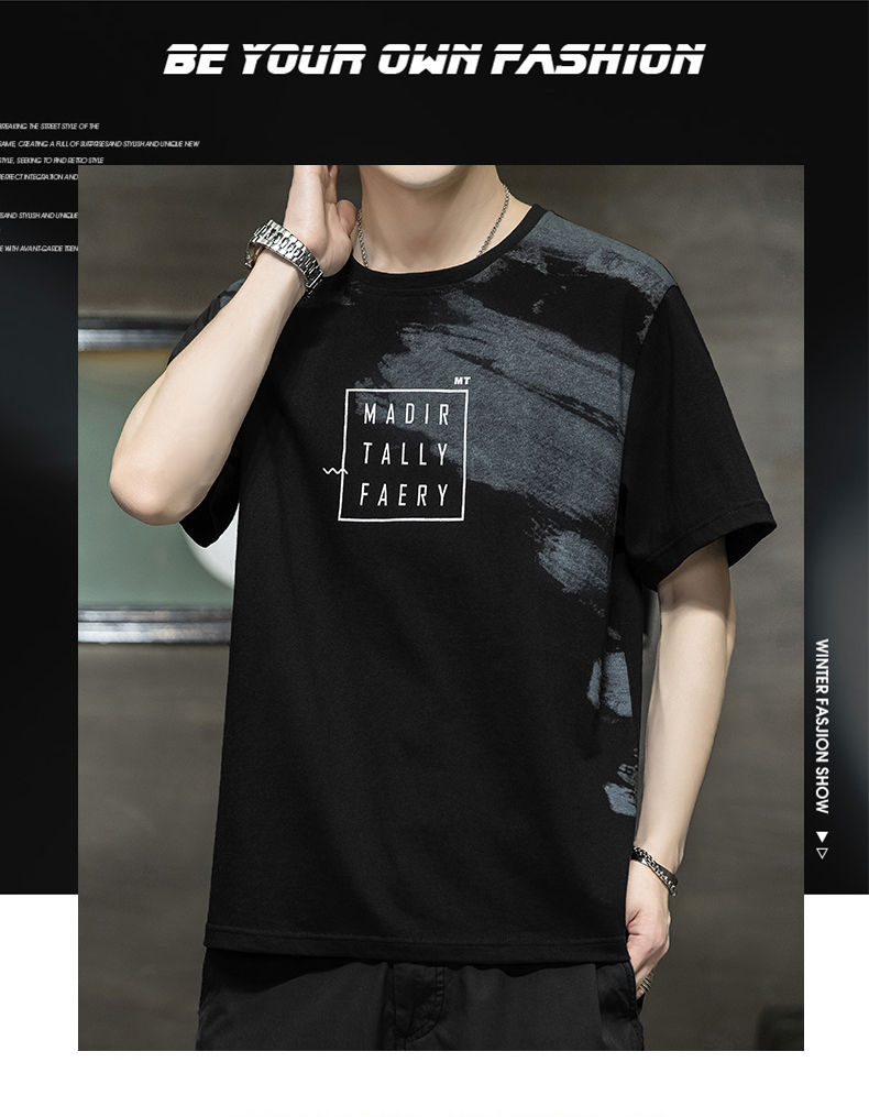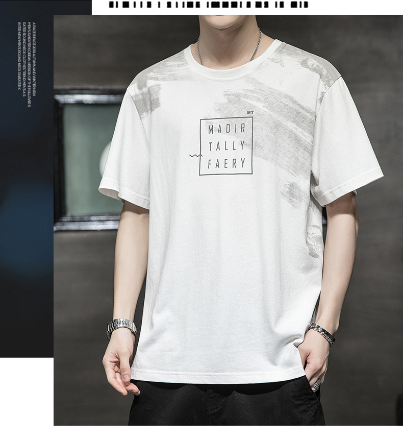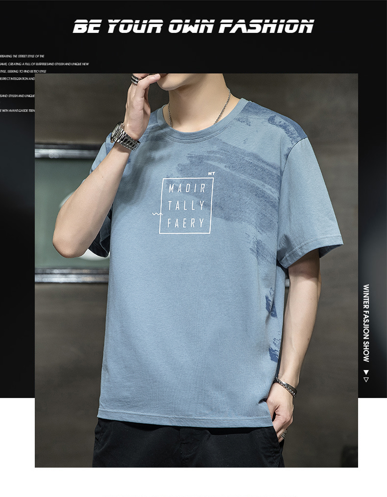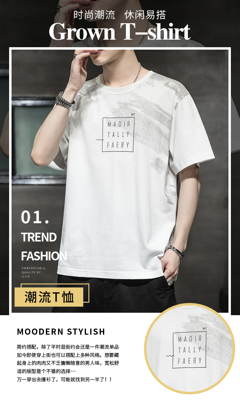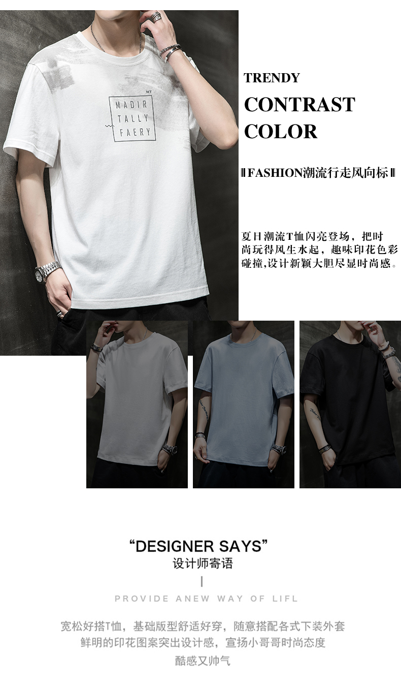 夏季2021新款短袖t恤男士潮牌韩版潮流宽松圆领棉布料好搭衣服