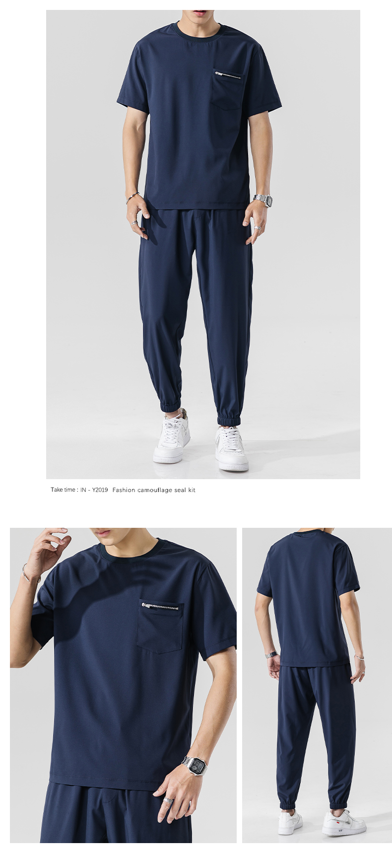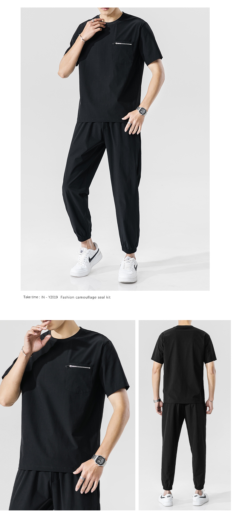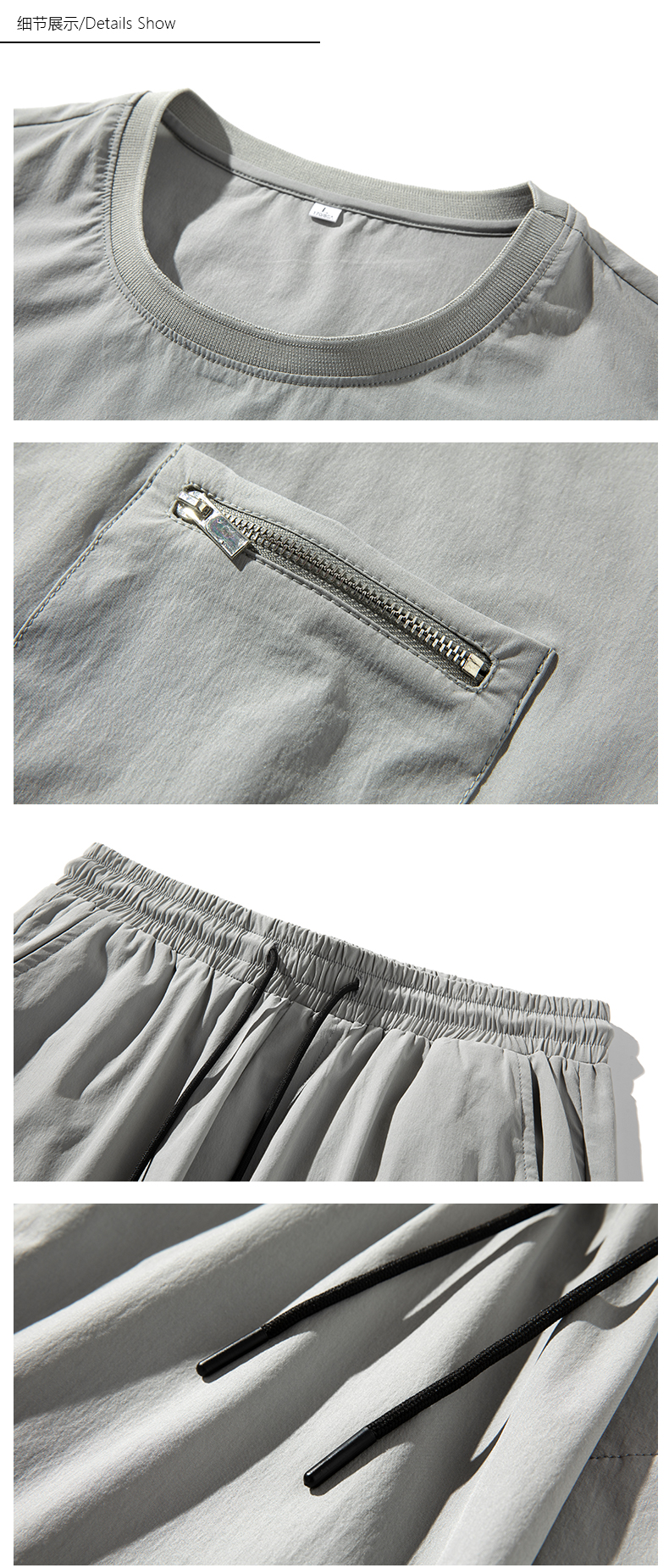 2021夏季新款新型蚂蚁皱布料短袖短裤潮流印花运动时尚休闲套装男