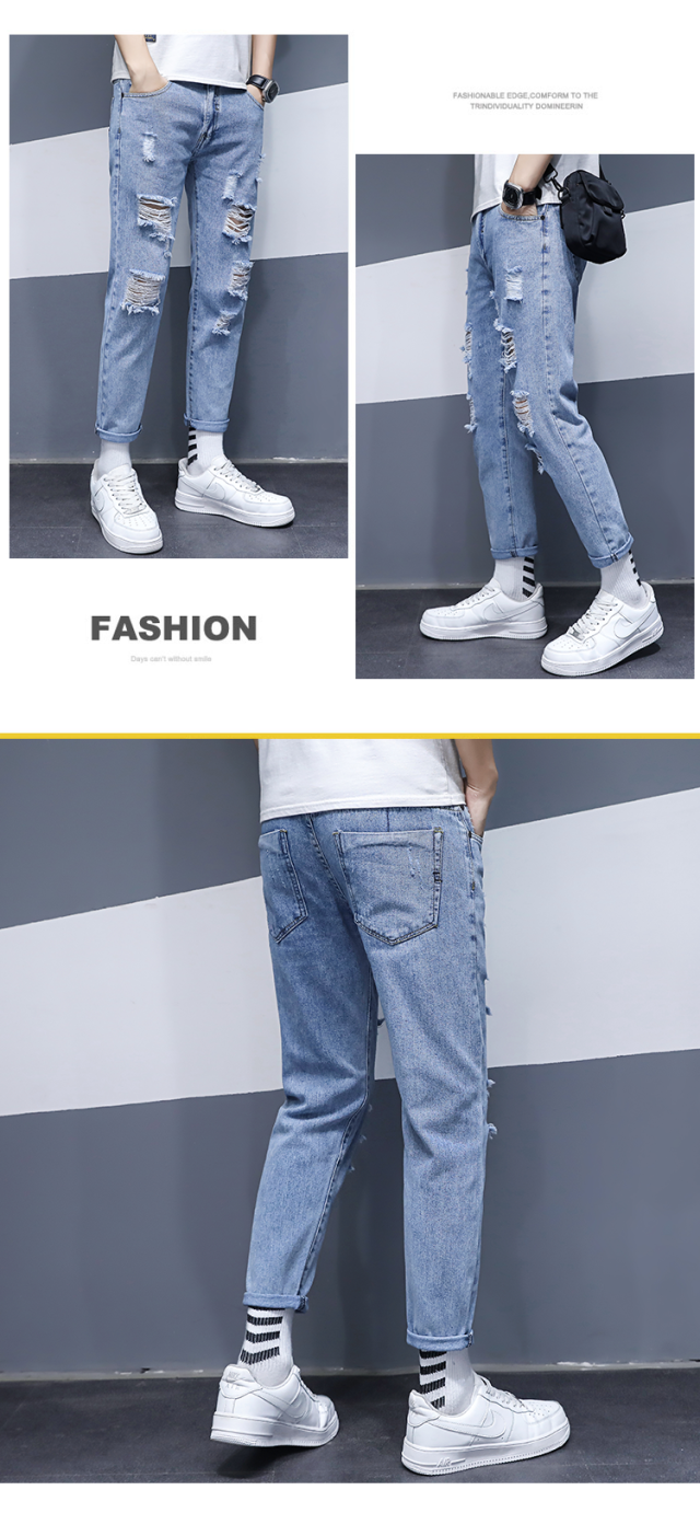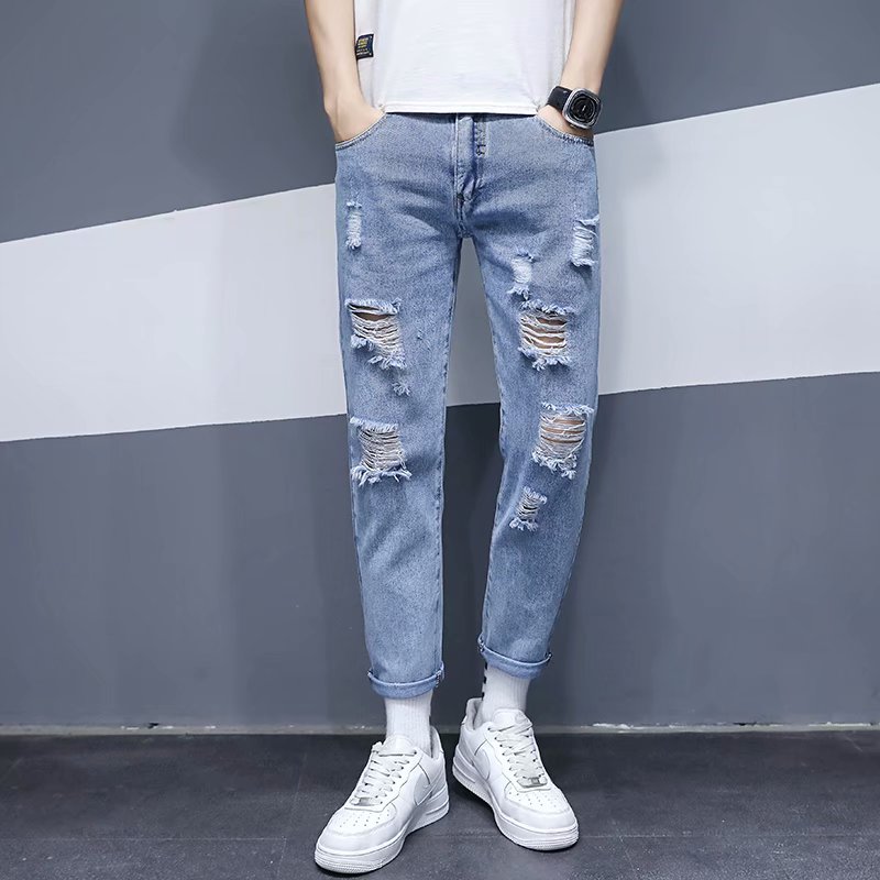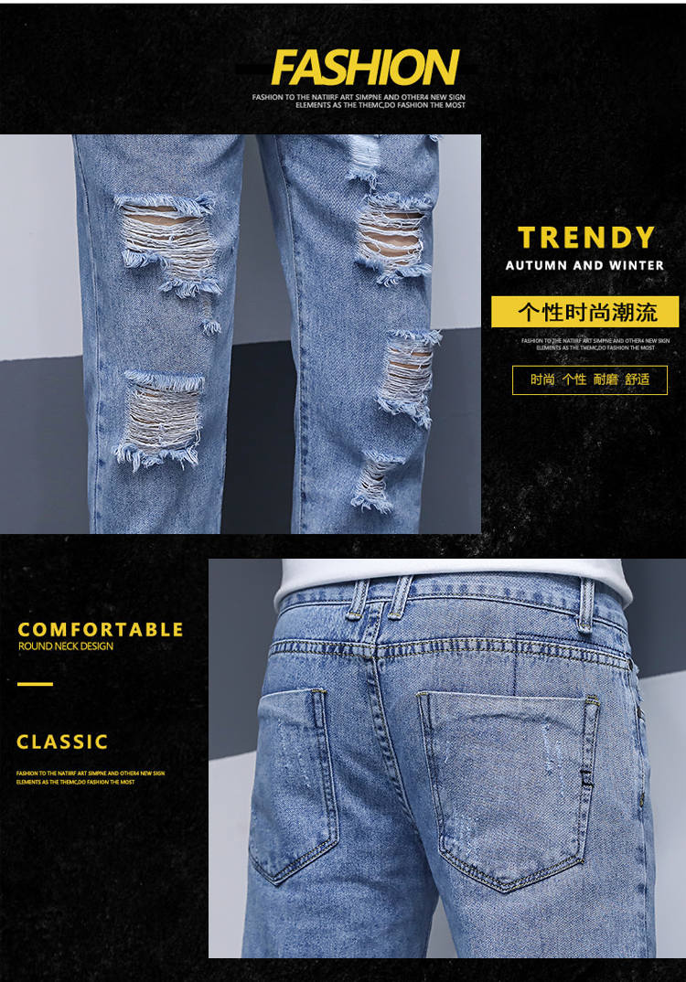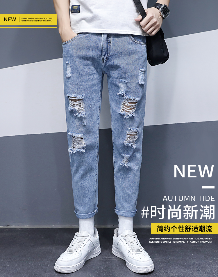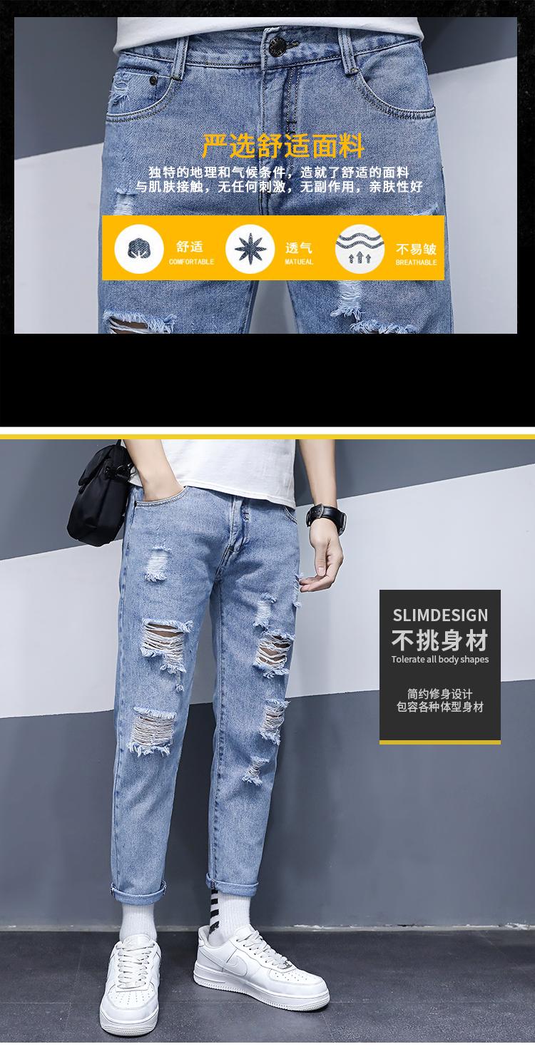 四季新款潮牌男士牛仔裤舒适布料2021新款小直筒男士韩版潮牛仔裤