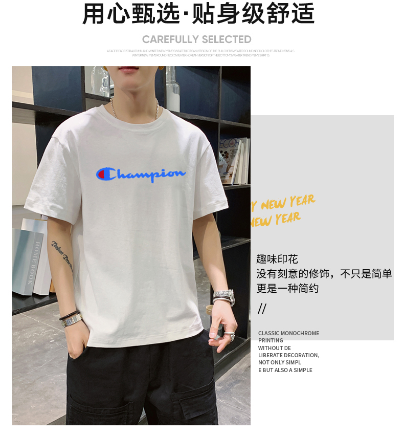 夏季2021新款短袖t恤男士潮牌韩版潮流宽松圆领棉布料好搭衣服