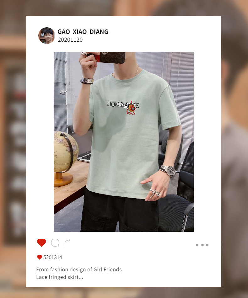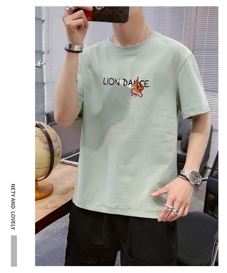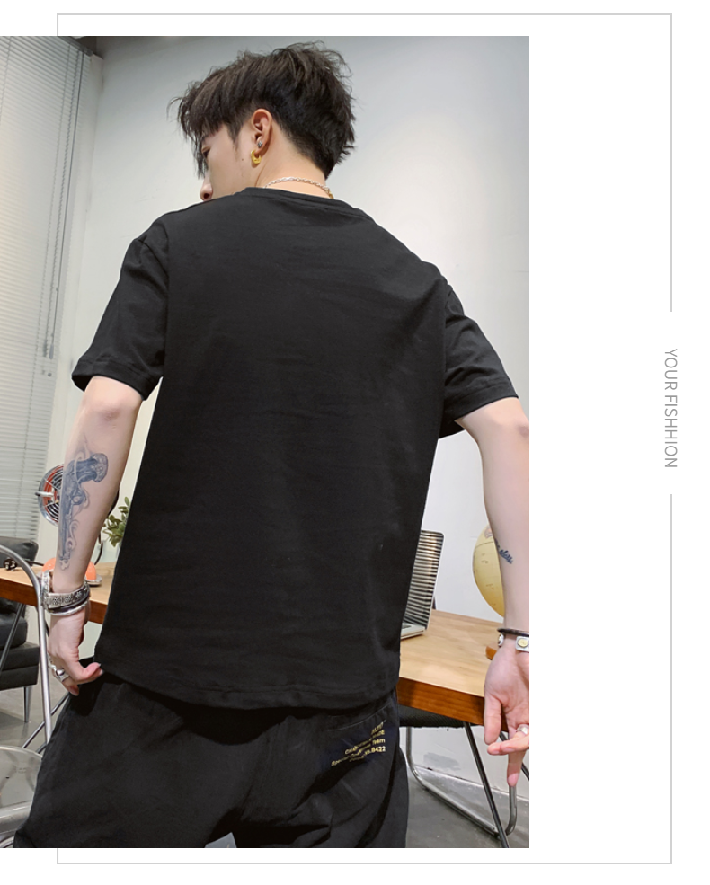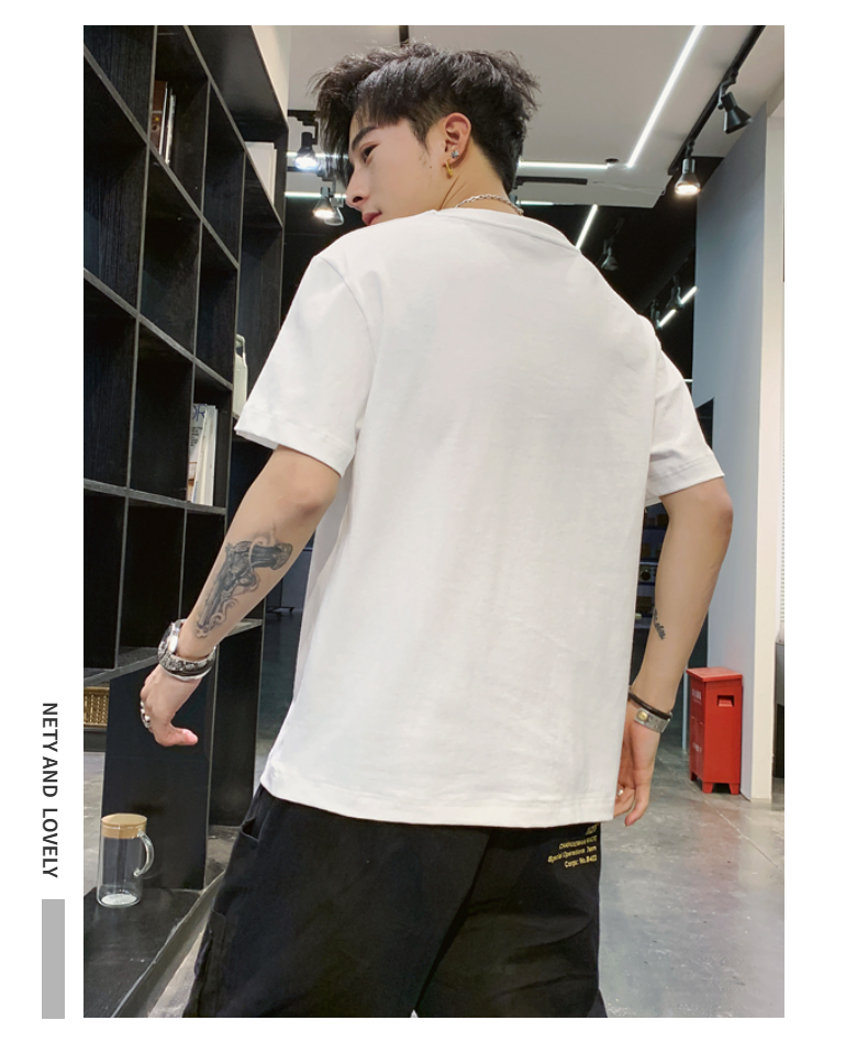 夏季2021新款短袖t恤男士潮牌韩版潮流宽松圆领棉布料好搭衣服