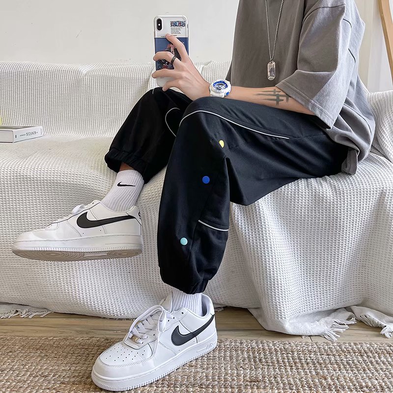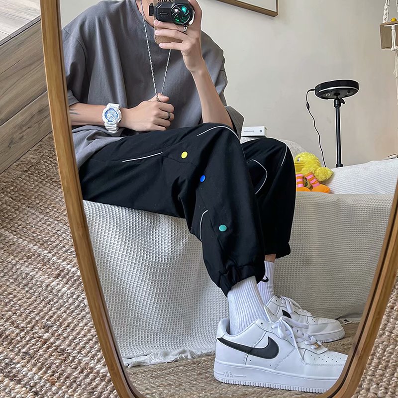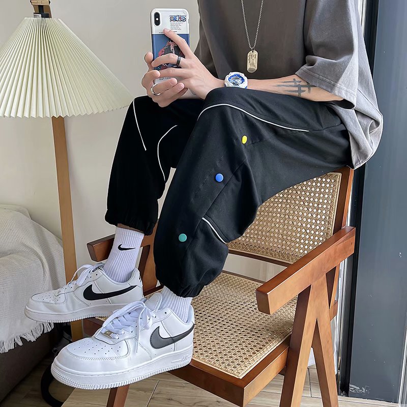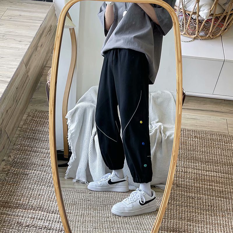 2021男式柔软布料中腰休闲现货青少年黑色字母弹力裤休闲裤五分裤