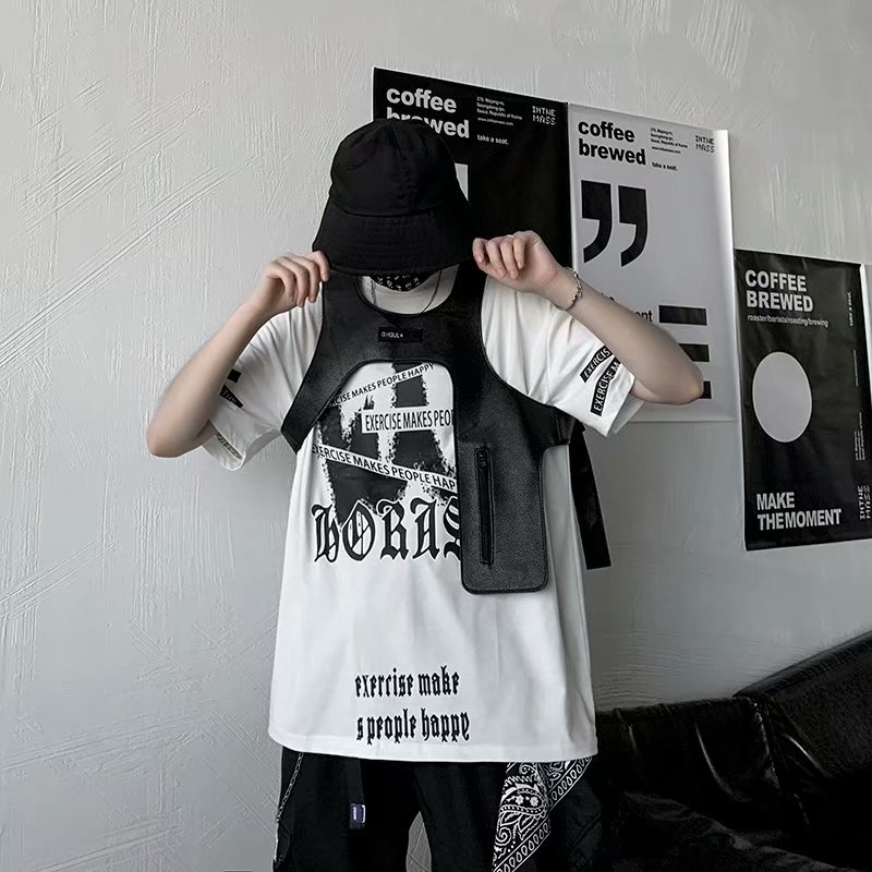 2021夏季新款新型蚂蚁皱布料短袖短裤潮流印花运动时尚休闲套装男