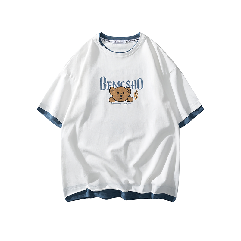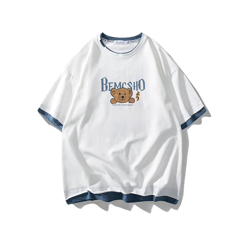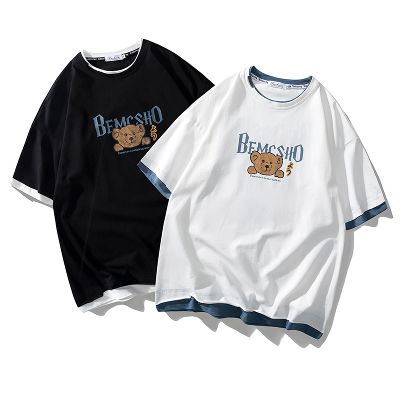 夏季2021新款短袖t恤男士潮牌韩版潮流宽松圆领棉布料好搭衣服