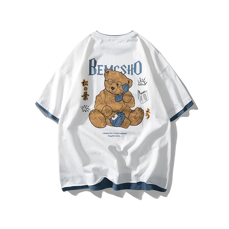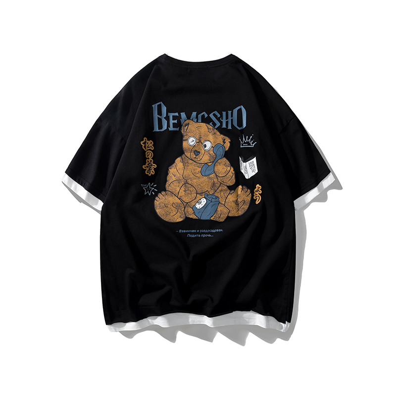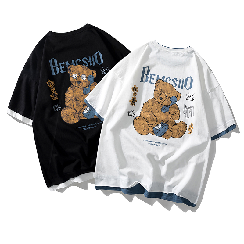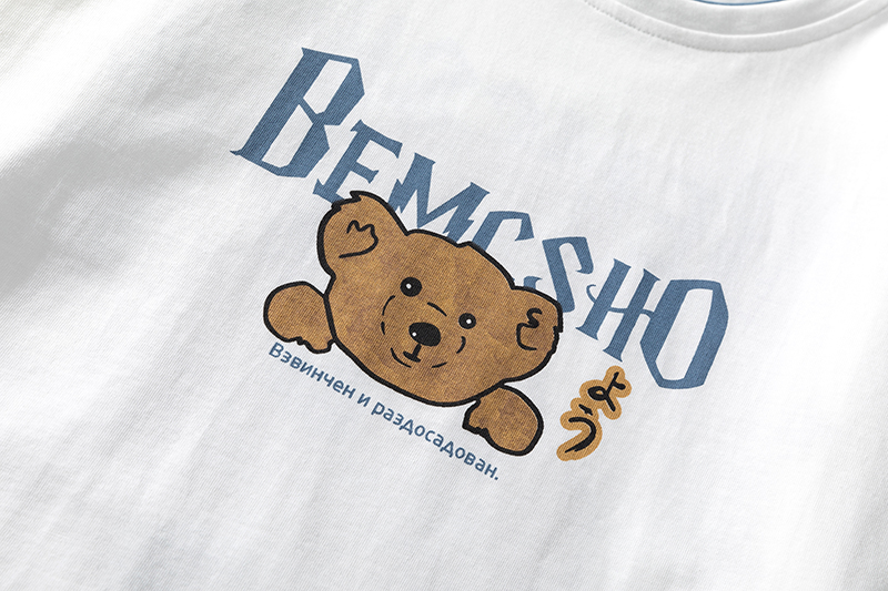 2021早春新款we11done夜光植绒烫画小熊圆领休闲情侣短袖T恤跨境