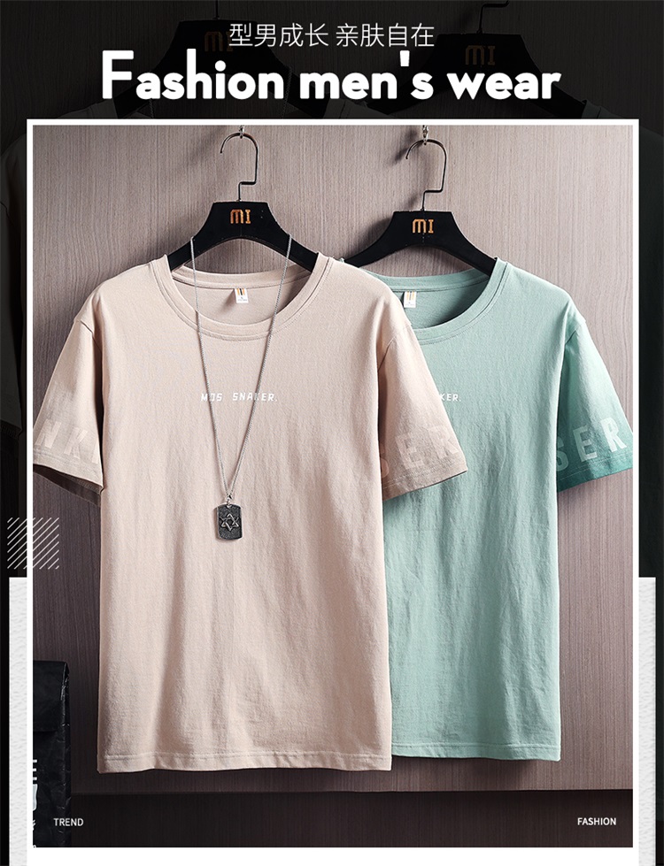 夏季2021新款短袖t恤男士潮牌韩版潮流宽松圆领棉布料好搭衣服