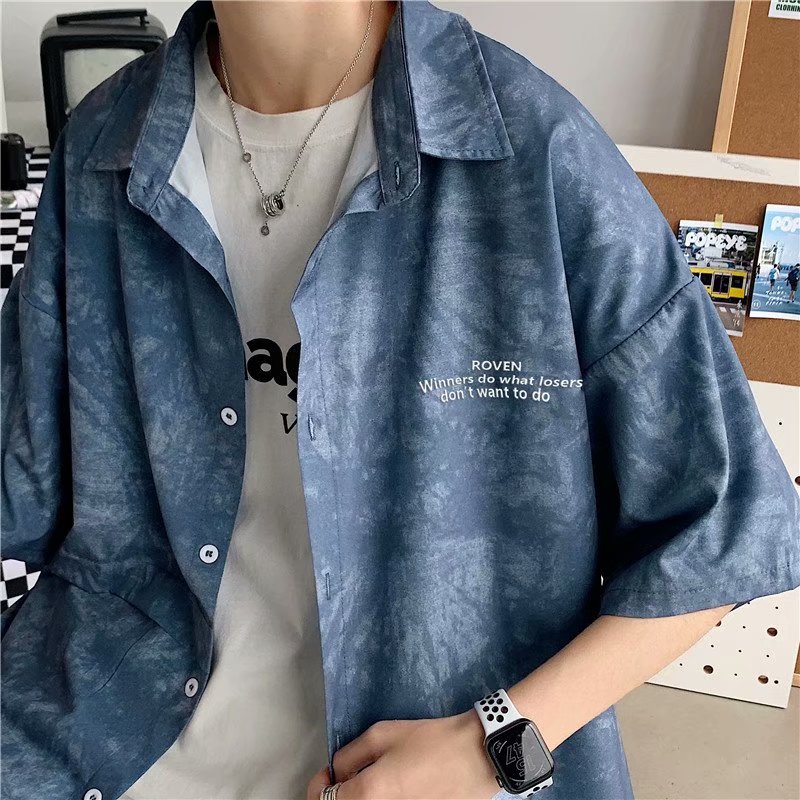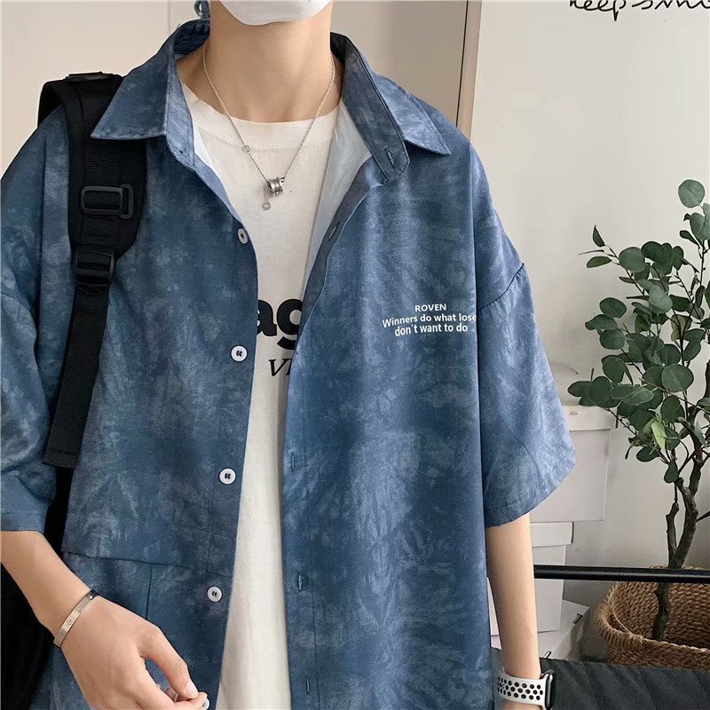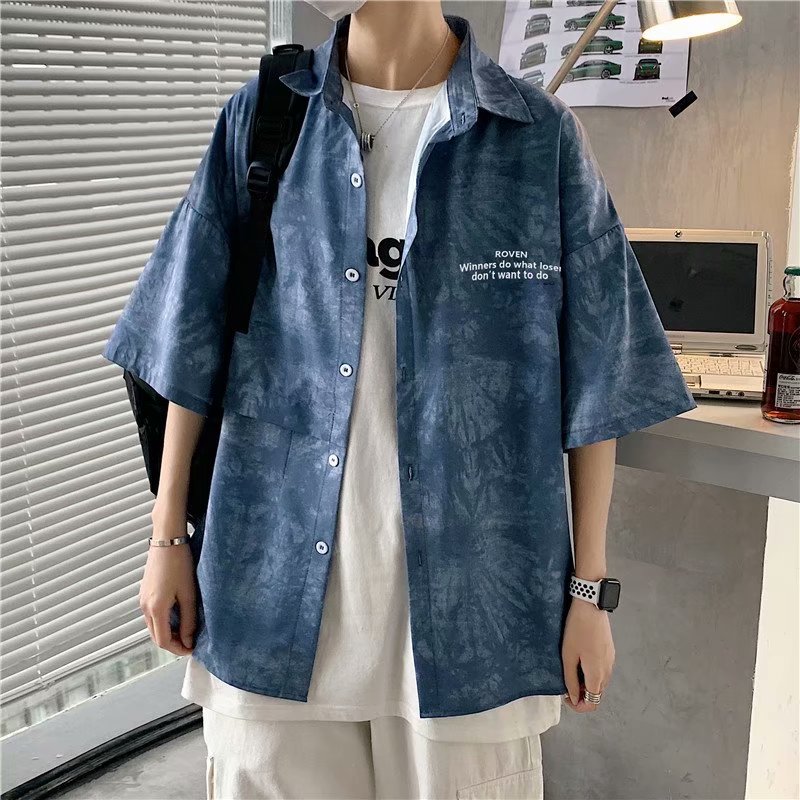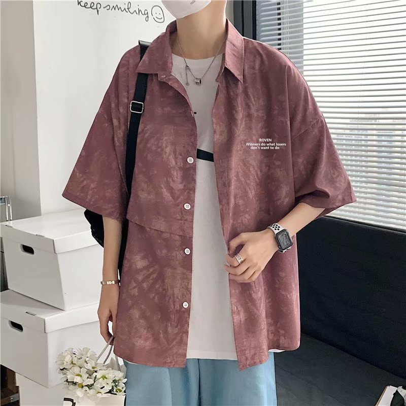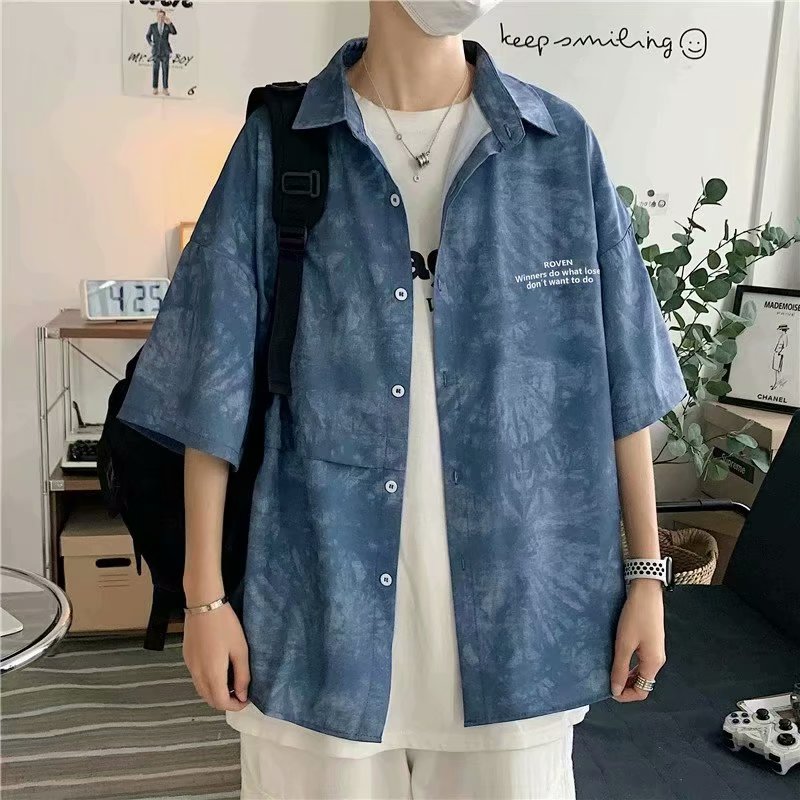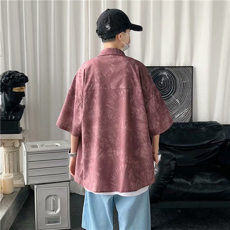 短裤男夏季潮流宽松休闲直筒运动裤韩版港风扎染迷彩男装五分裤子