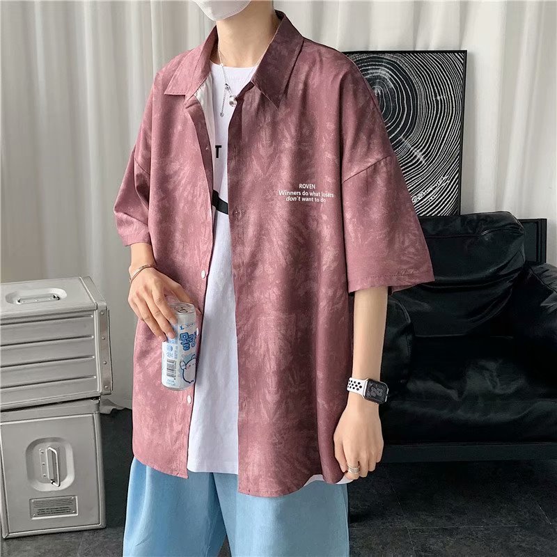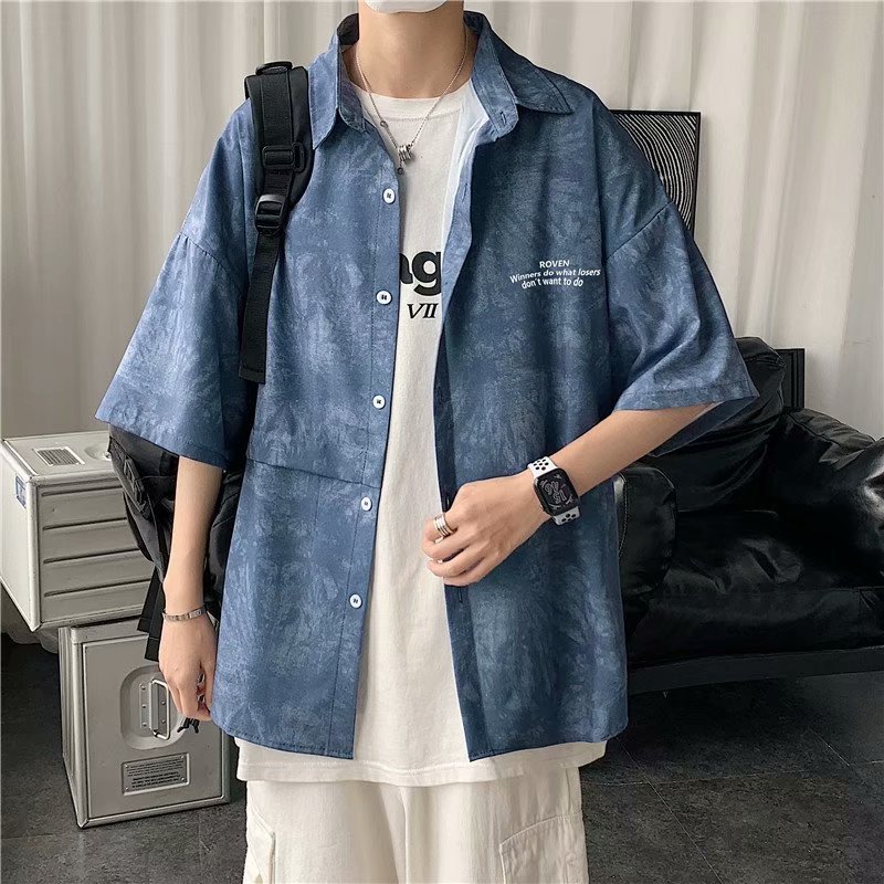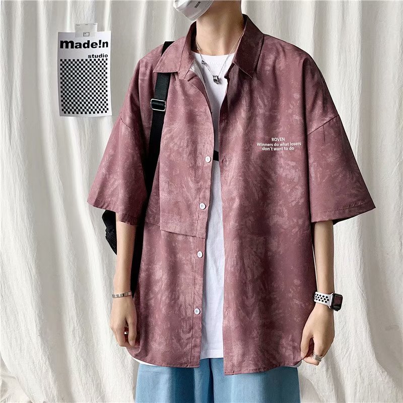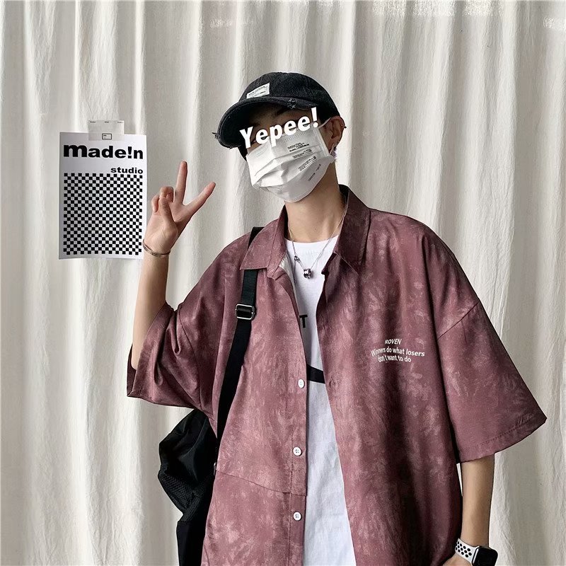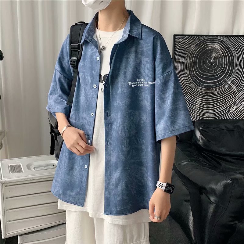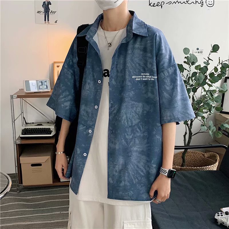 短裤男夏季潮流宽松休闲直筒运动裤韩版港风扎染迷彩男装五分裤子