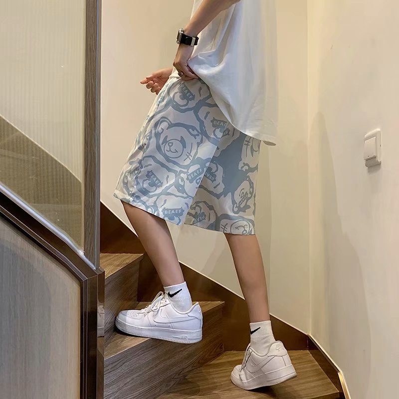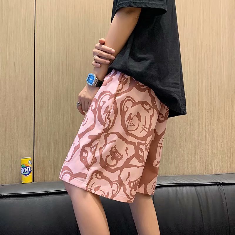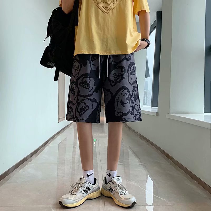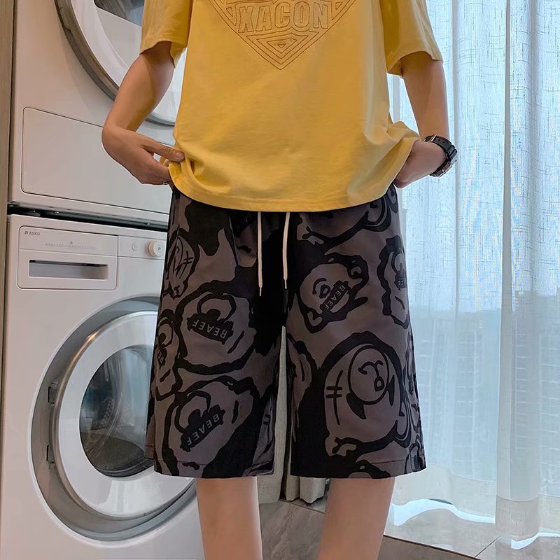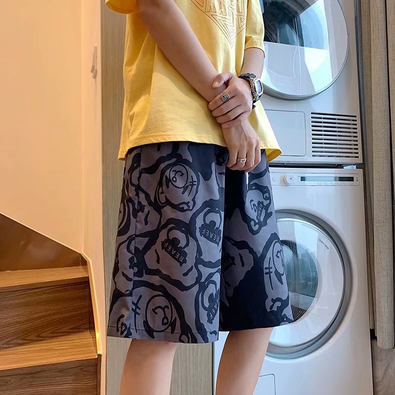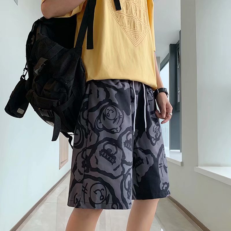 短裤男夏季潮流宽松休闲直筒运动裤韩版港风扎染迷彩男装五分裤子